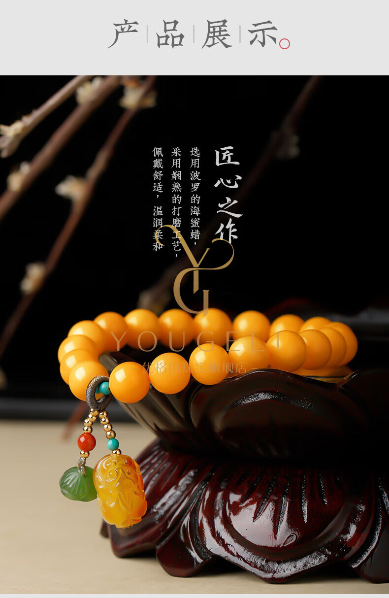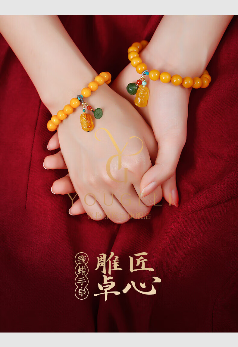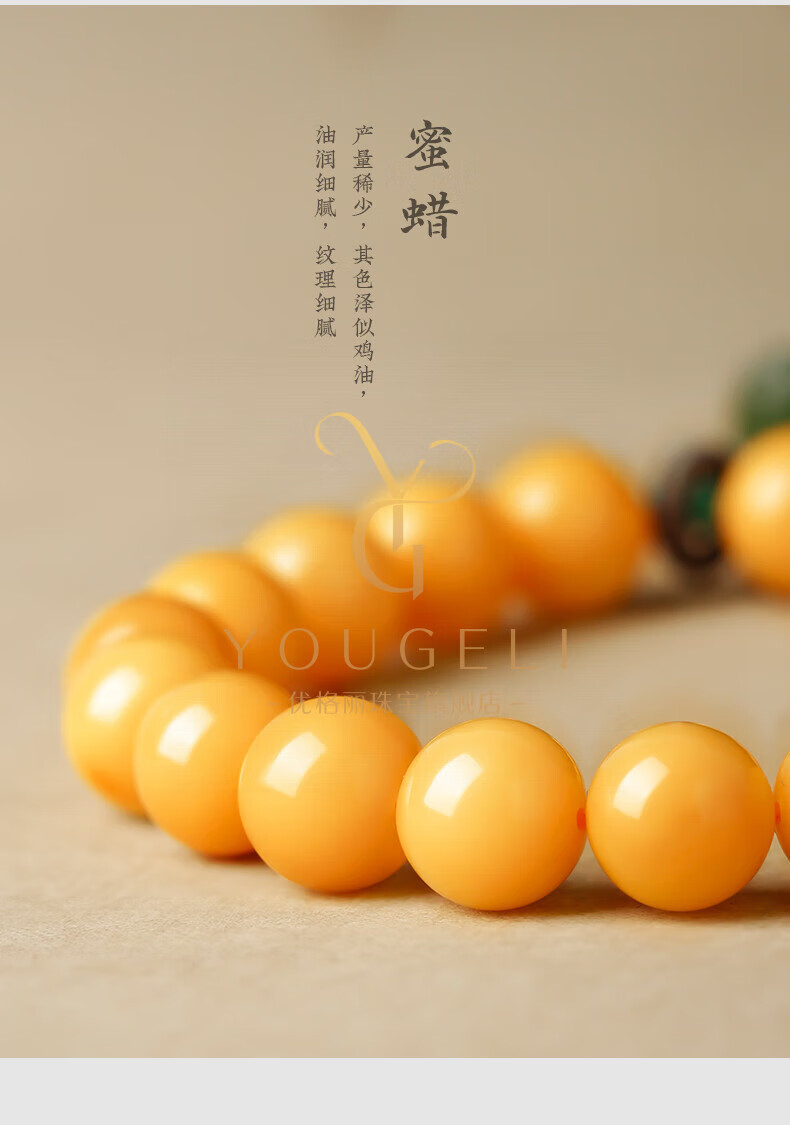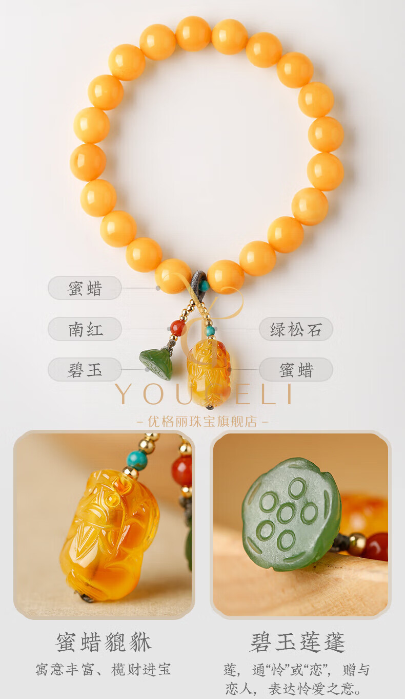 Yogurt natural beeswax bracelets for women, yellow round beads, amber beeswax single circle Pixiu accessories bracelet, beads 8mm