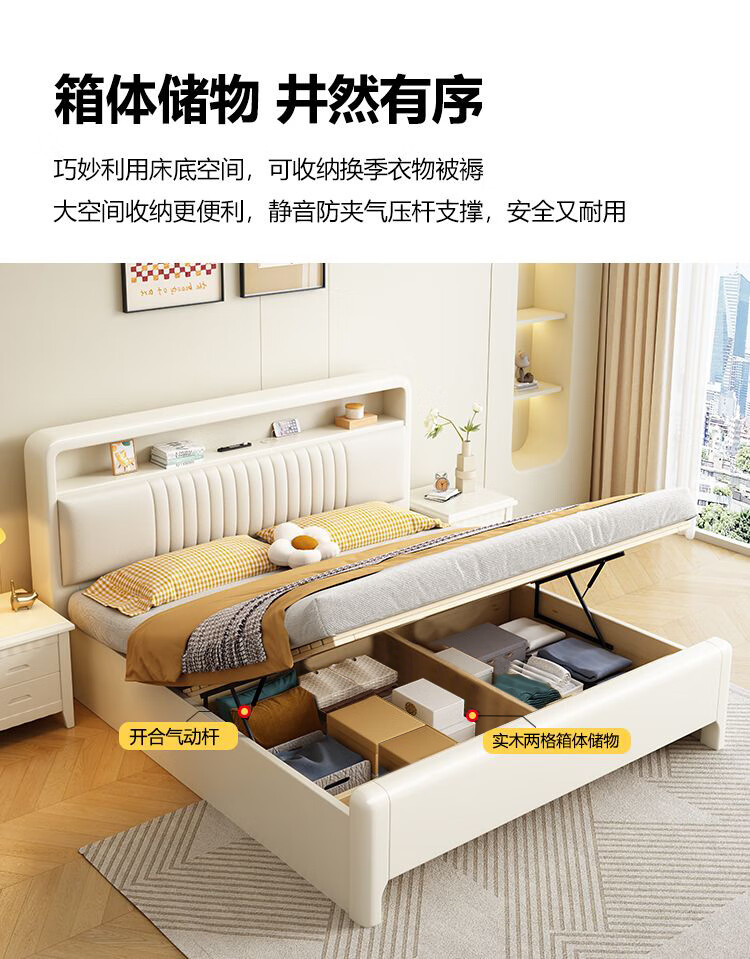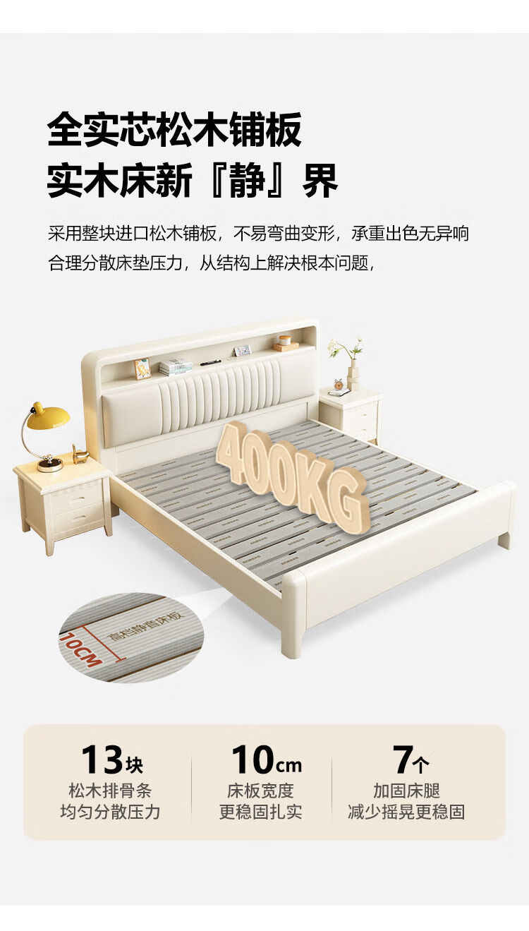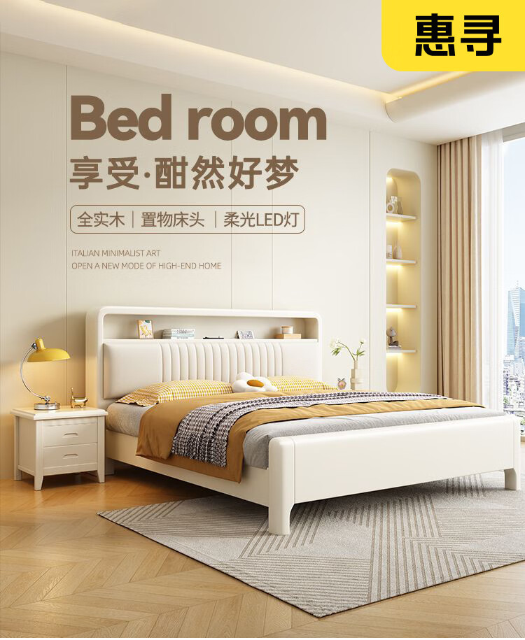 Huixun Jingdong's own brand bed Chinese style master bedroom king bed solid wood 1.8mx2m double bed small apartment bed single bed door-to-door delivery 1.5mx2m (frame structure)