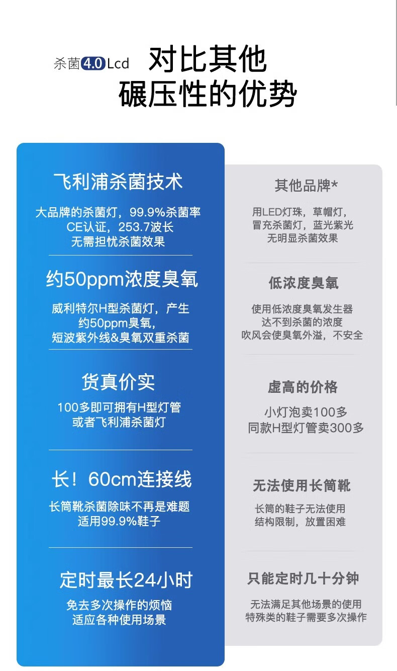 Ailing sterilization lamp, shoes and socks deodorization, ultraviolet ozone, suitable for killing athlete's foot, onychomycosis and nail fungus, Willitell H-type germicidal lamp