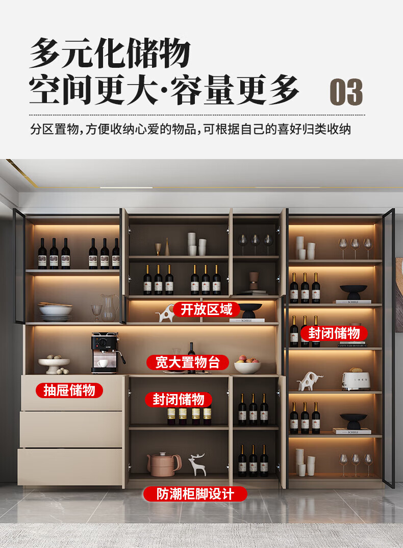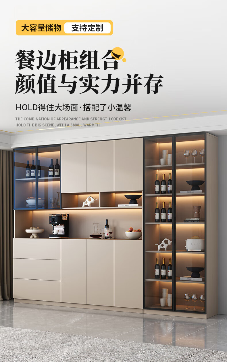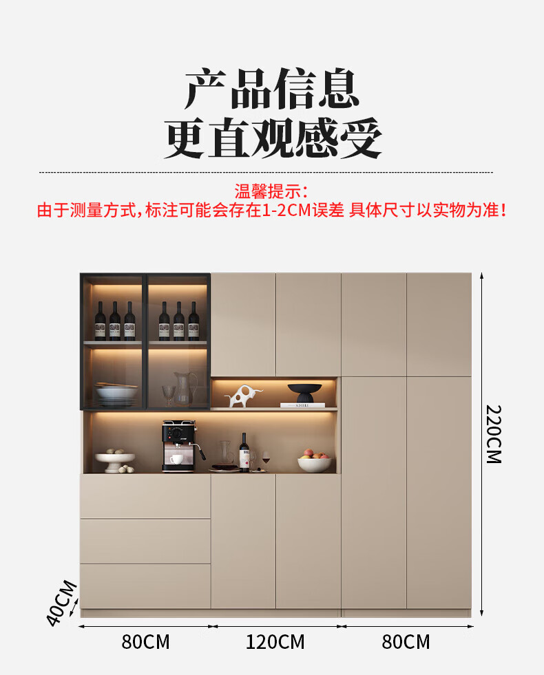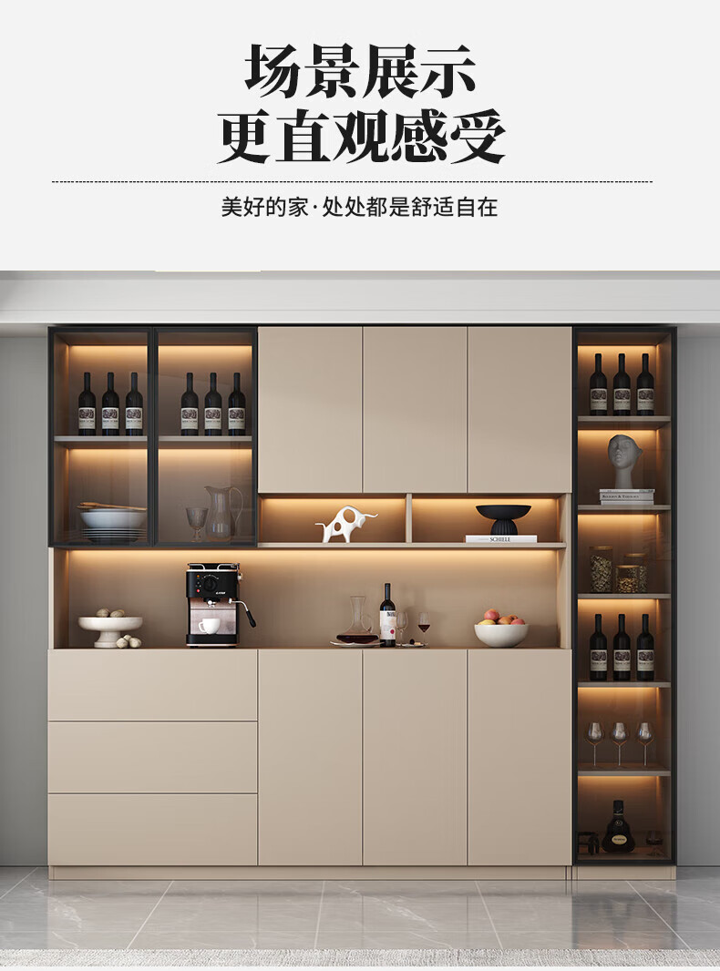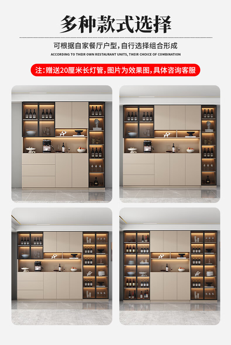 Menghuantes Free Installation Solid Wood Sideboard Living Room Integrated Storage Wall Wine Cabinet Multi-Function Light Luxury Kitchen Cupboard Style 8 200*220