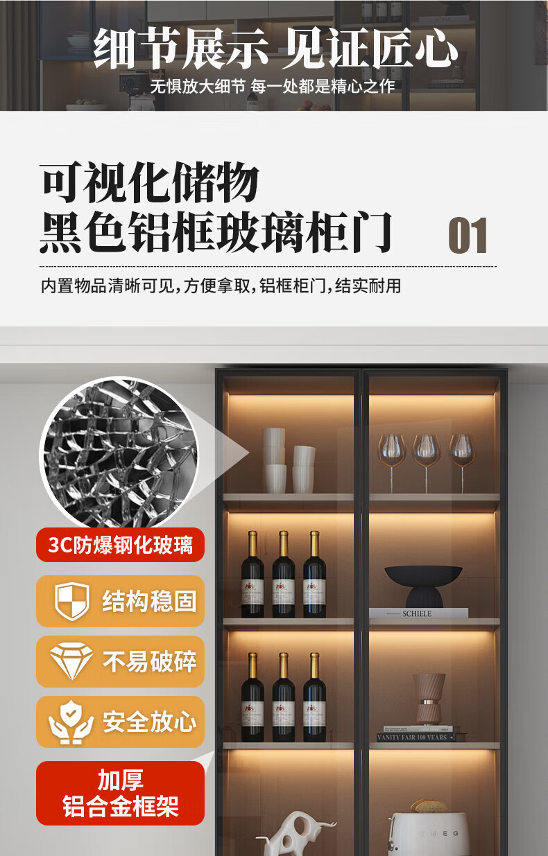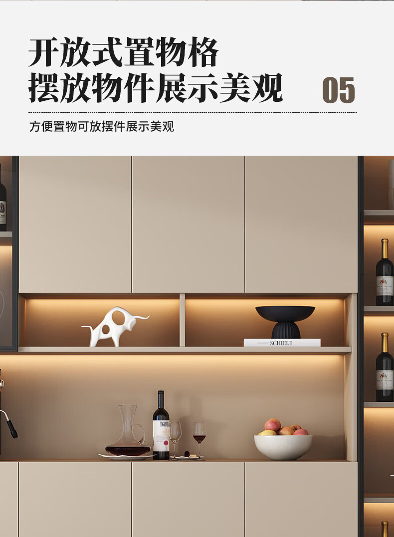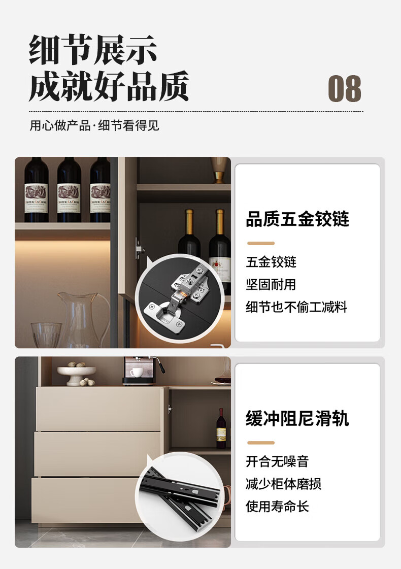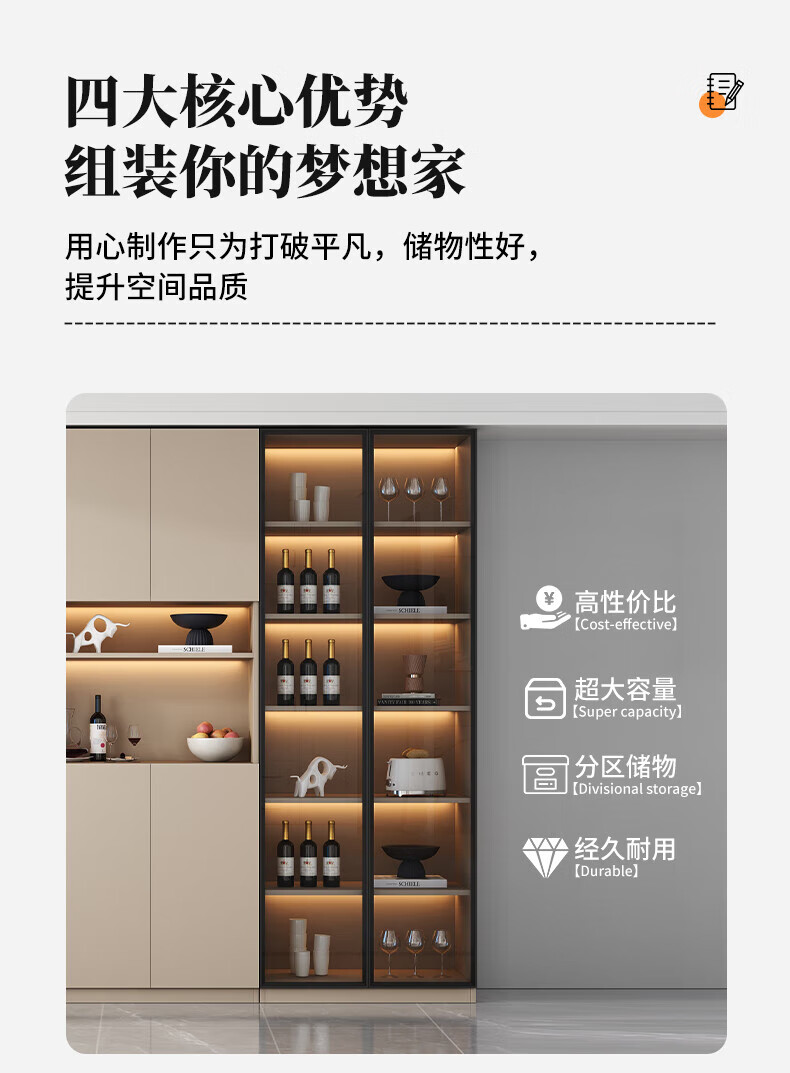 Menghuantes Free Installation Solid Wood Sideboard Living Room Integrated Storage Wall Wine Cabinet Multi-Function Light Luxury Kitchen Cupboard Style 8 200*220