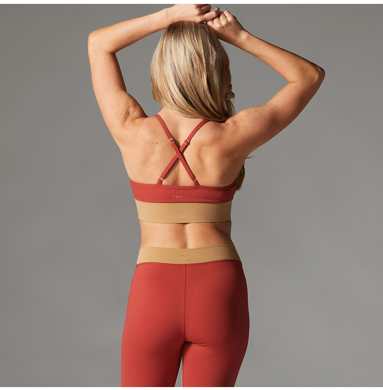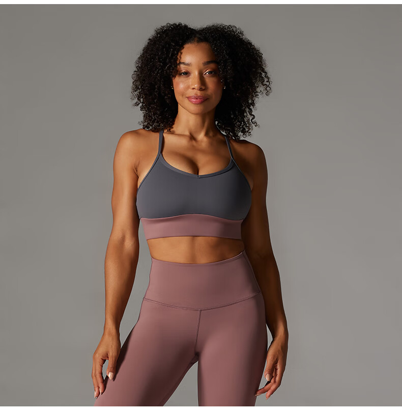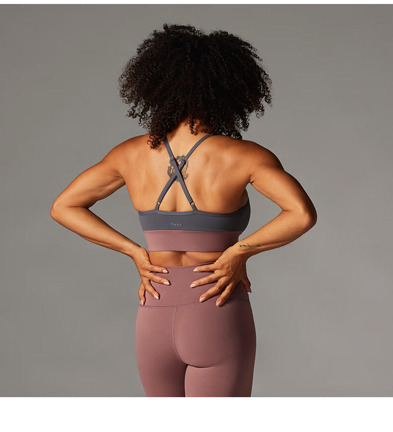 Toesox Tavi co-branded sports bra women's shockproof fitness bra beautiful back Pilates training yoga wear gray rose M