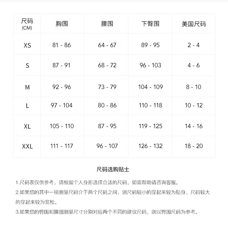 China (cm) 160-165/84-86 165-170 / 88-90 167-172 / 92-96 168-173 / 98-102 170-176 / 106-110