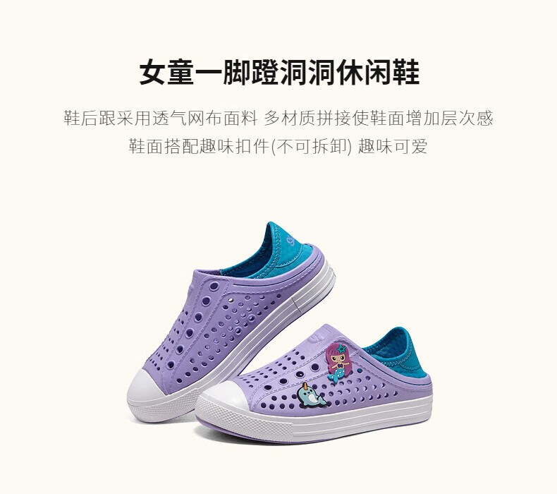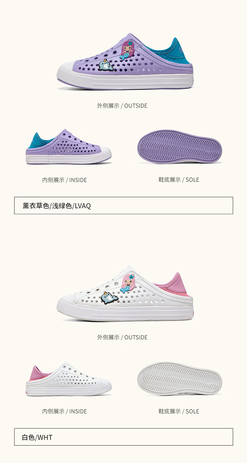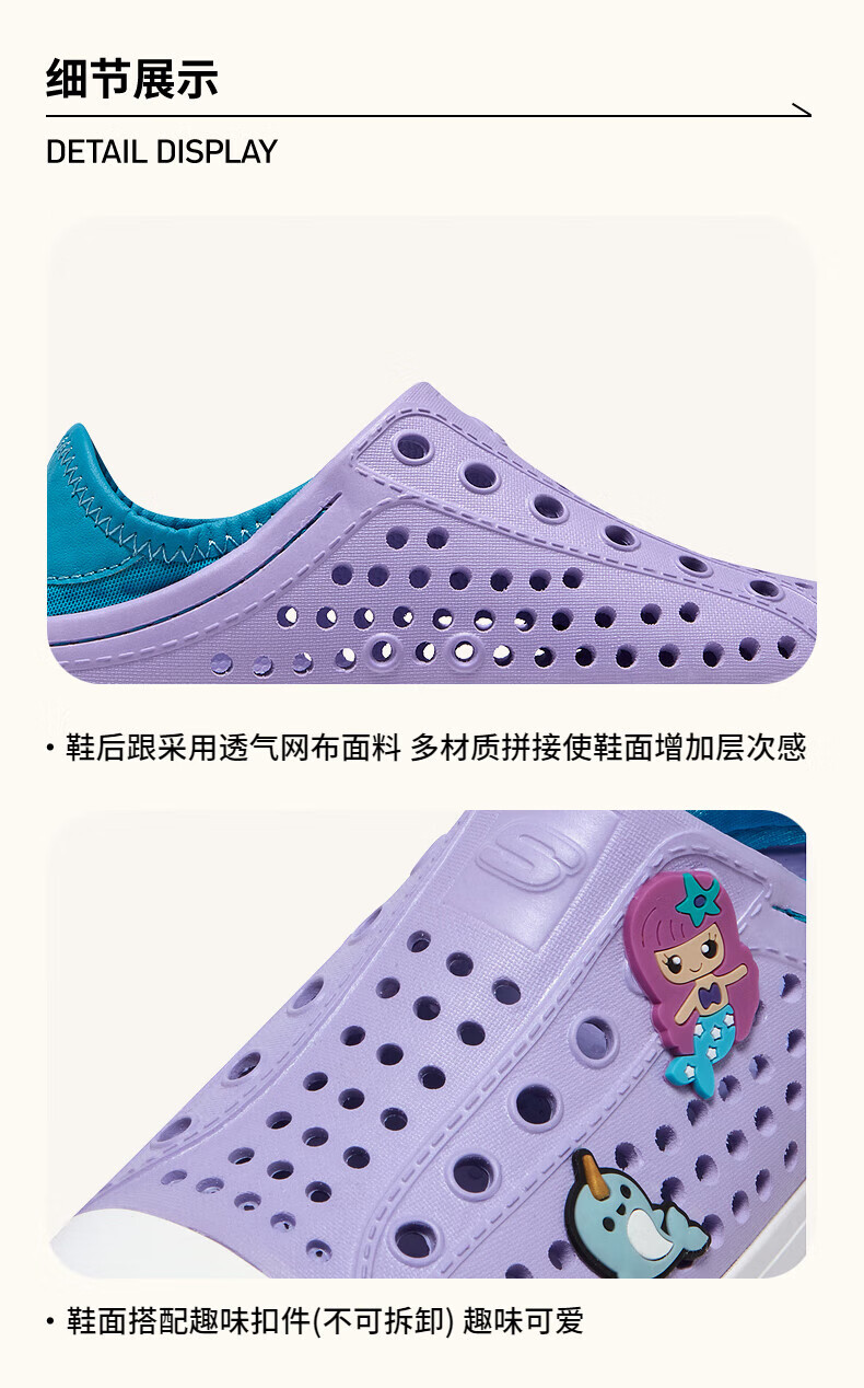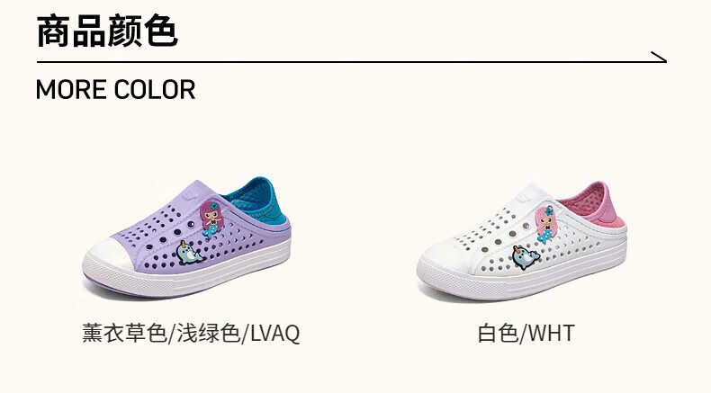 Skechers children's shoes, bubble shoes, summer girls' slip-on sandals, clogs, casual, comfortable, breathable, versatile sandals, lavender/light green/LVAQ size 30