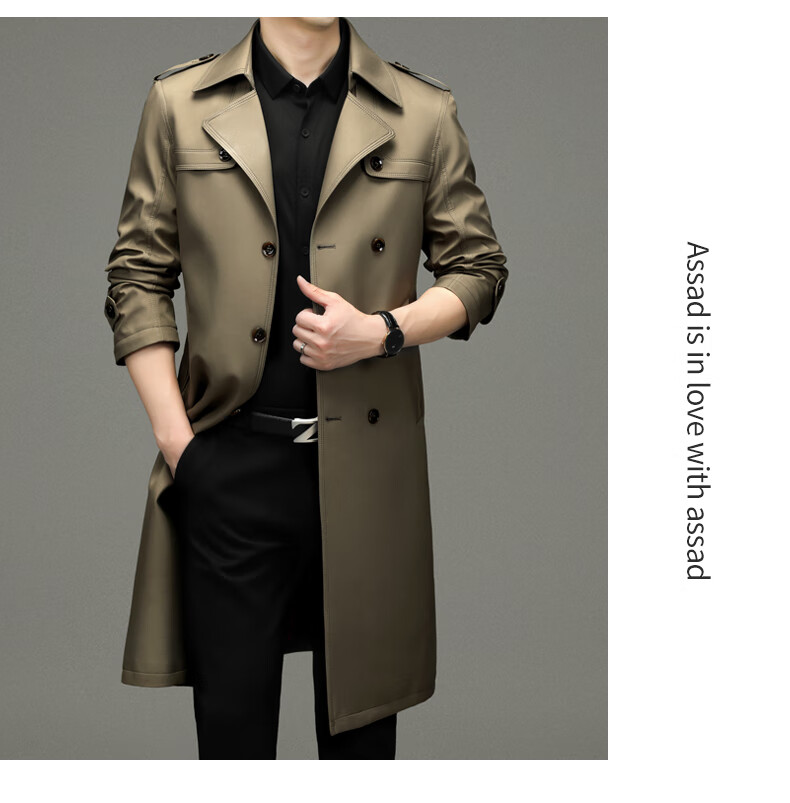 ROMON men's mid-length windbreaker men's coat autumn new business young and middle-aged casual spring and autumn long lapel coat trend 2256 navy blue XL recommended 140-160Jin Jin equals 0.5 kg