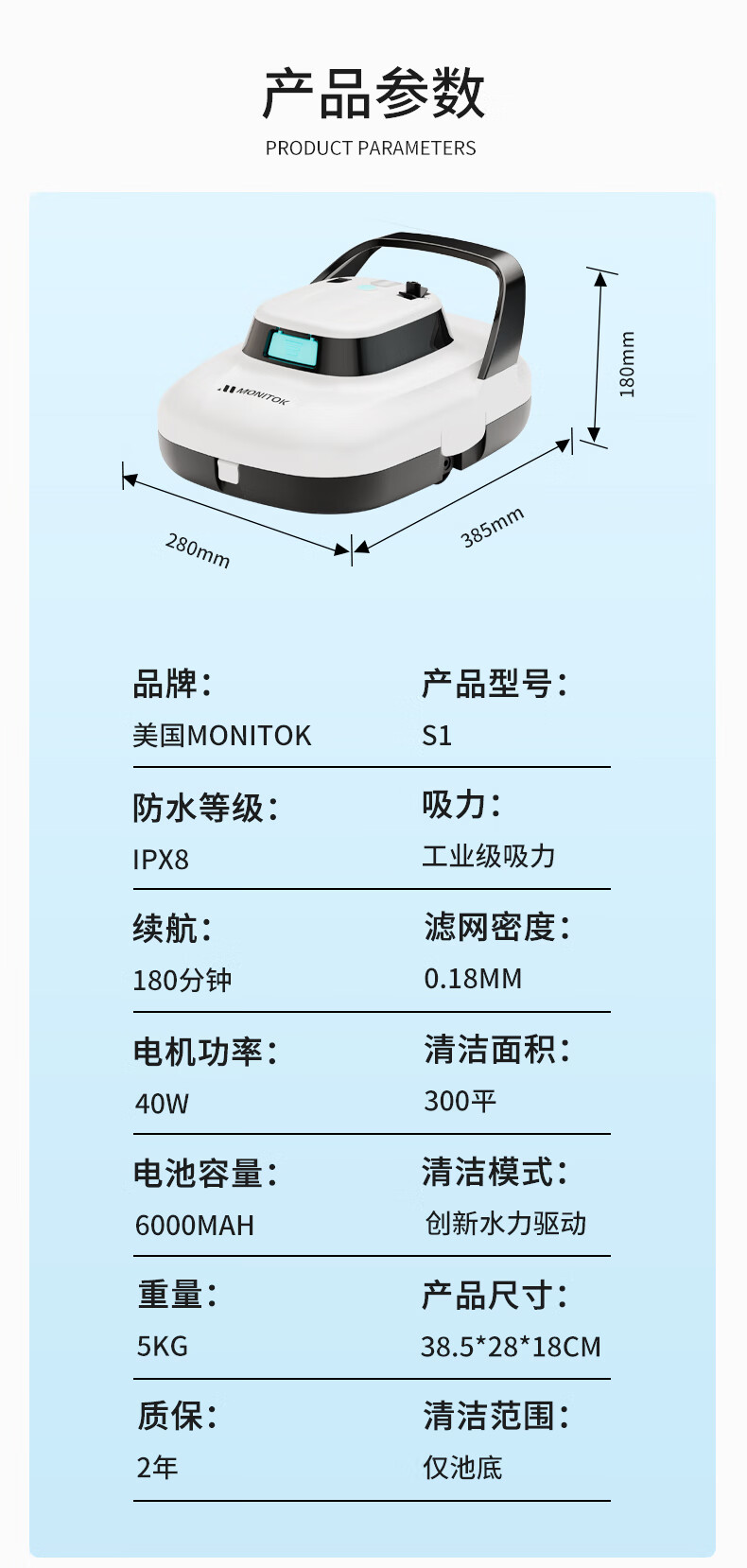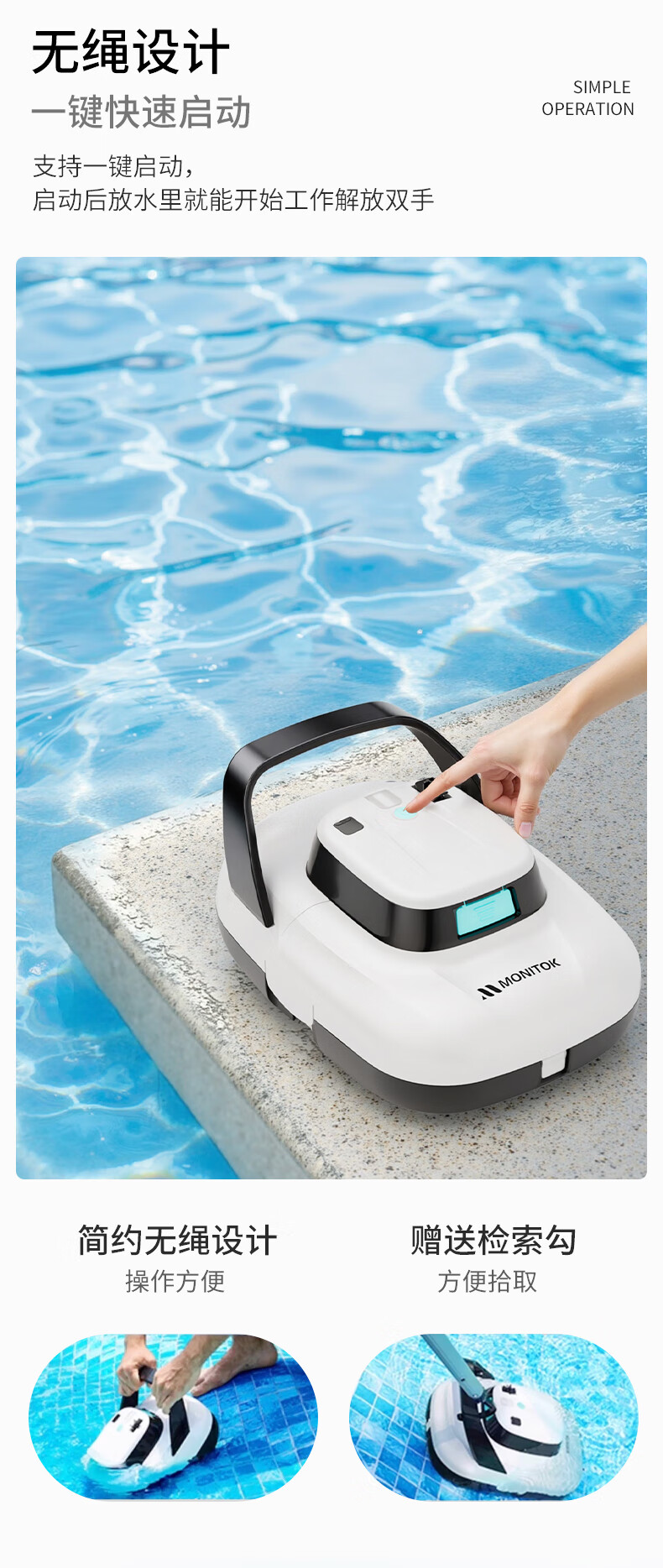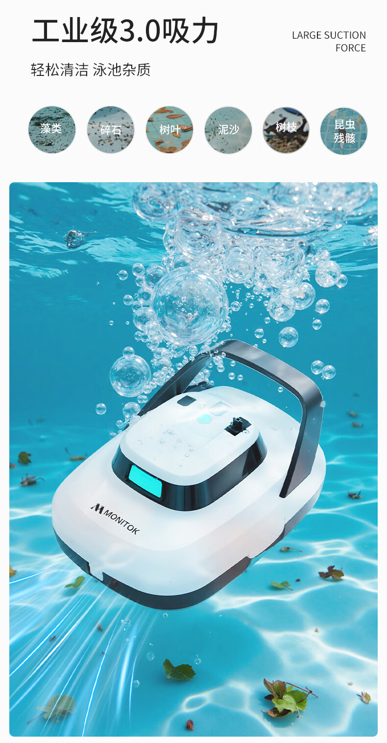 Monitok American swimming pool suction machine fully automatic cleaning robot filtration equipment dolphin pool bottom underwater fish pond vacuum swimming pool suction machine (6000 mAh) 150 minutes