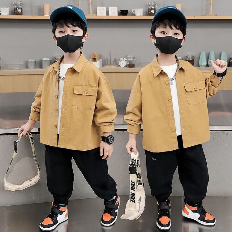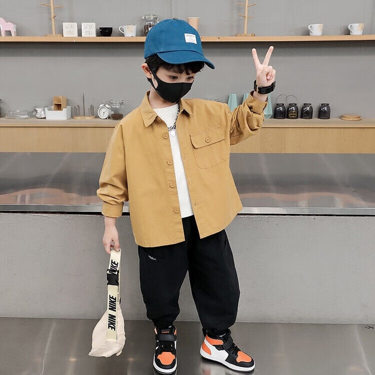 Disney Boys' Shirt Jackets 2025 Spring and Autumn Tops Baby Boy Shirts New Children's Jacket Thin Style Jacket Men's Khaki Shirt Jacket Size 100 Reference Height About 95cm