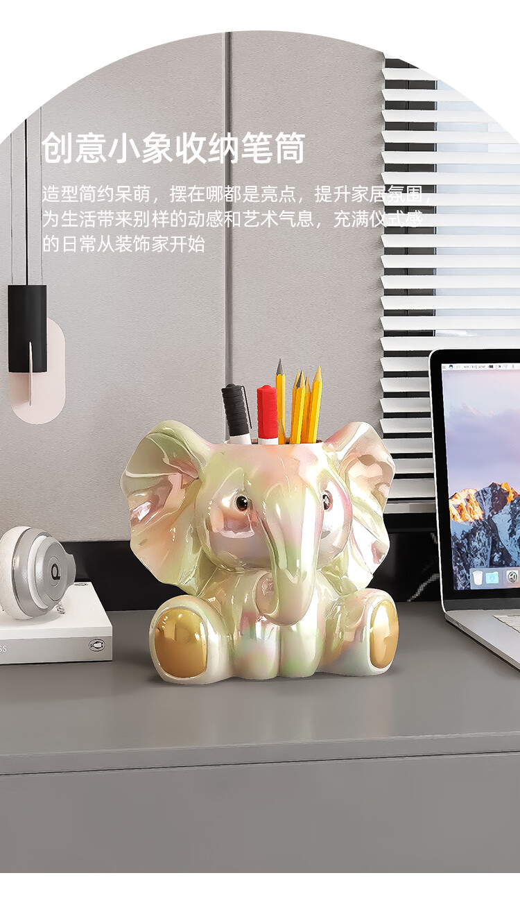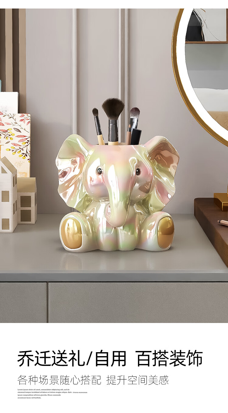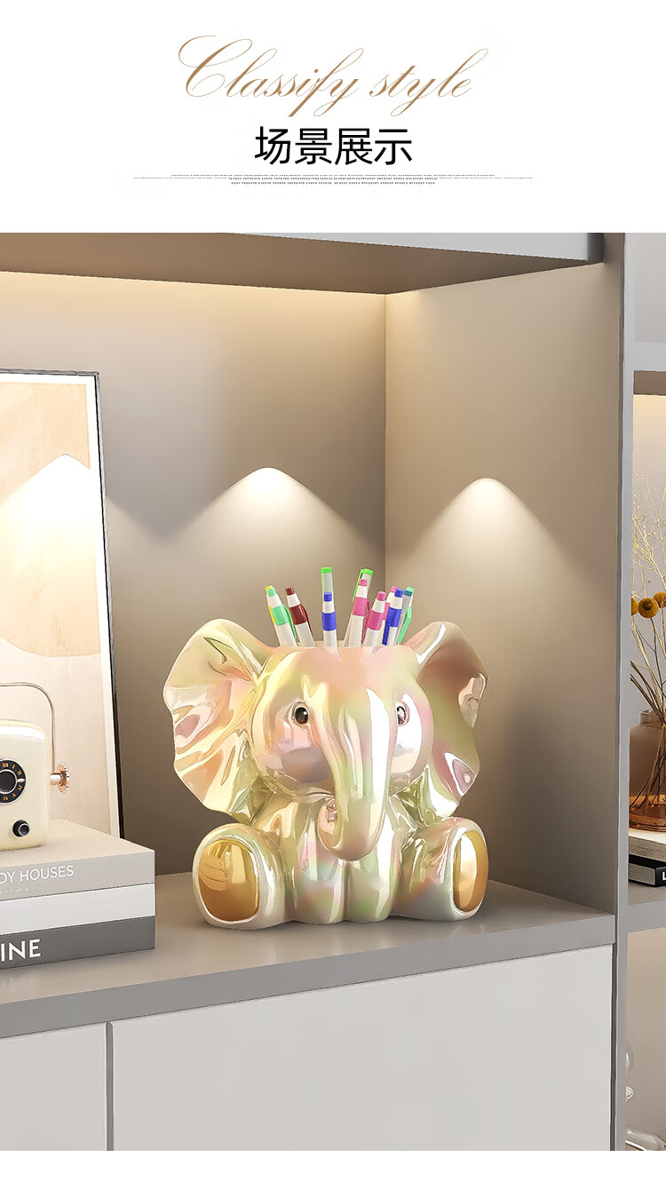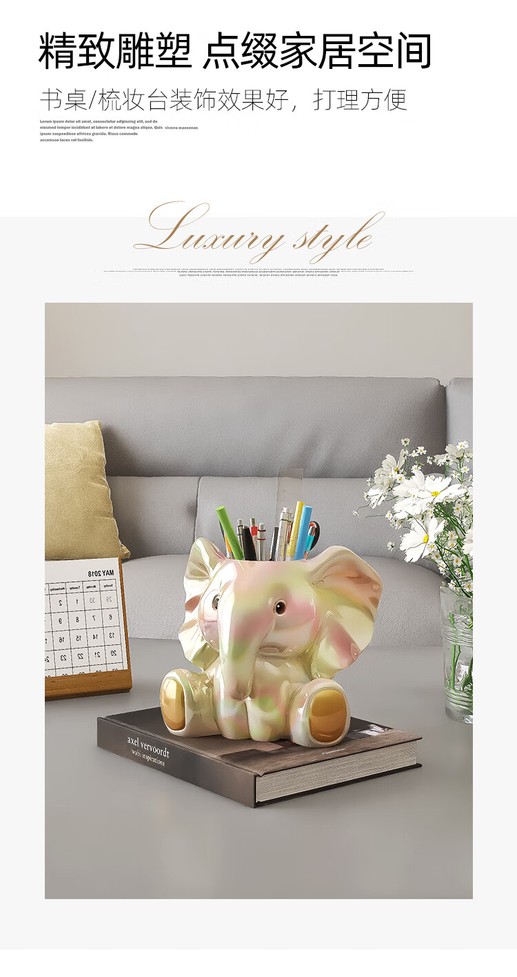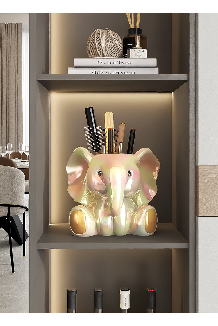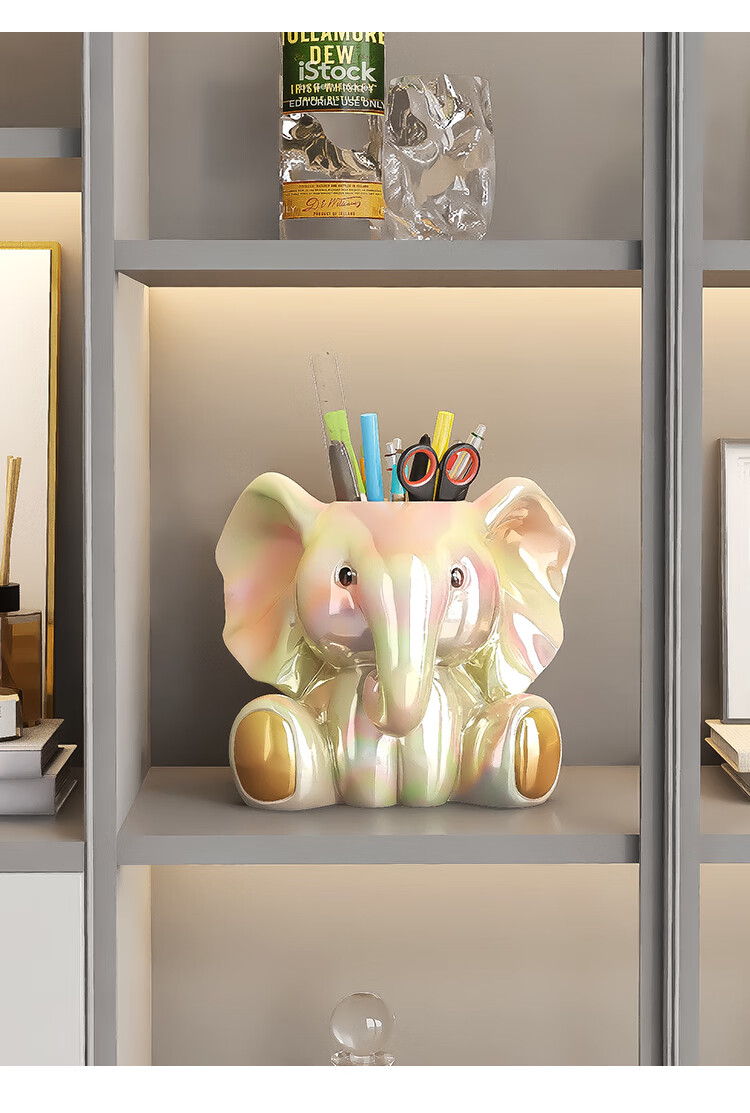 Yingsen Little Elephant Cartoon Creative Cute Office Desktop Decoration Light Luxurious High-end Children's Room Decoration for Boys and Girls Little Elephant Pen Holder Storage Ornaments-Primary Color