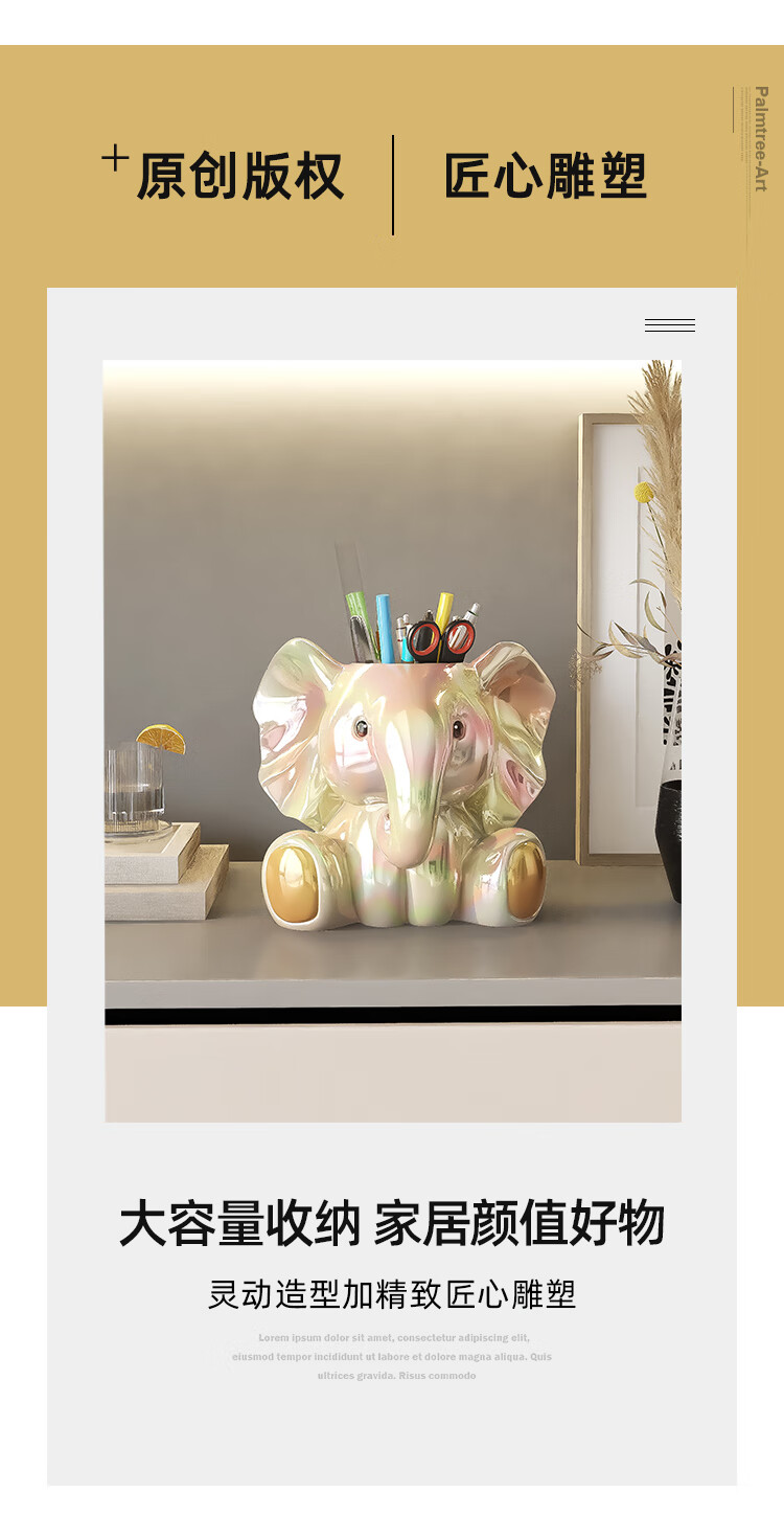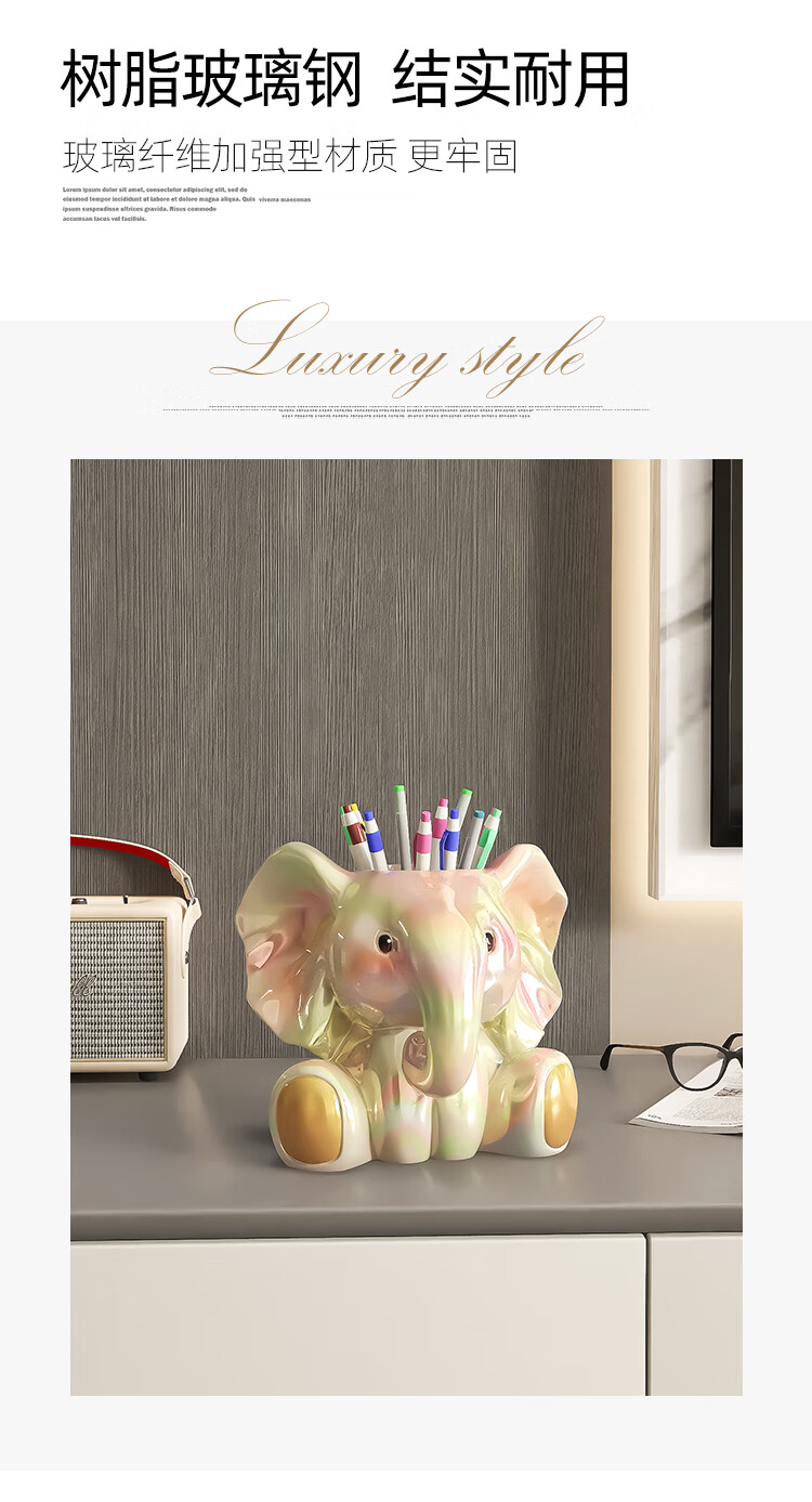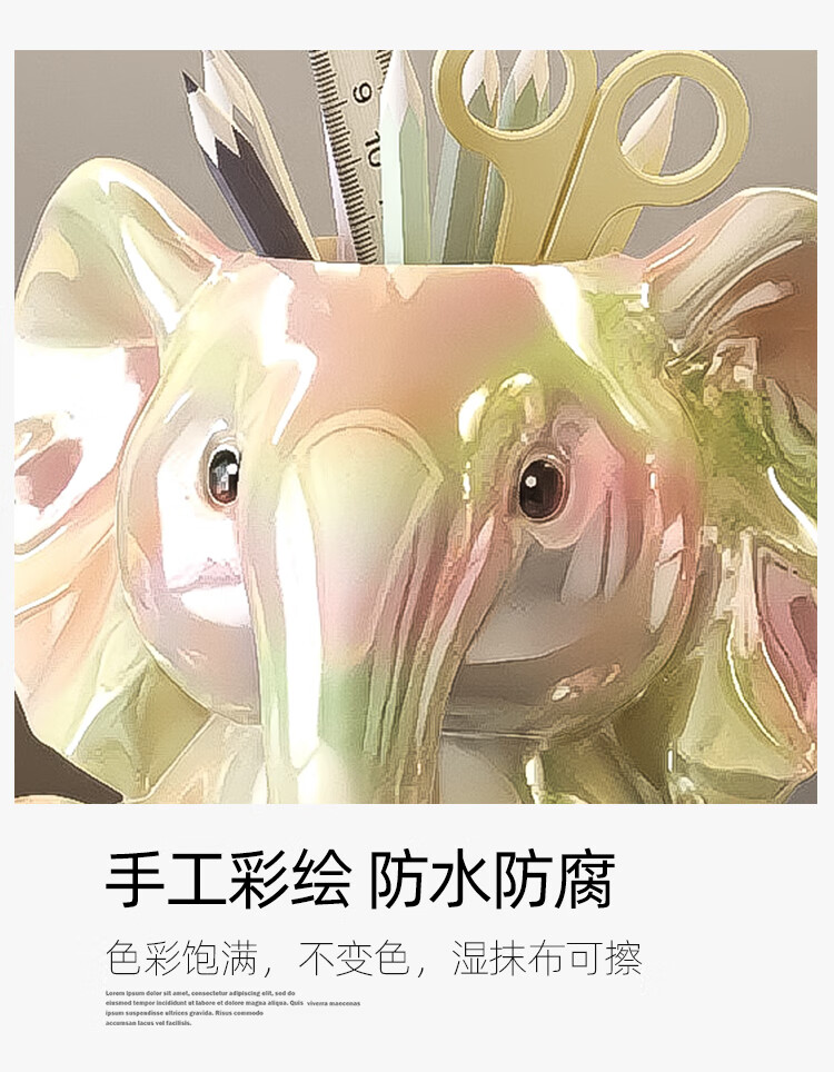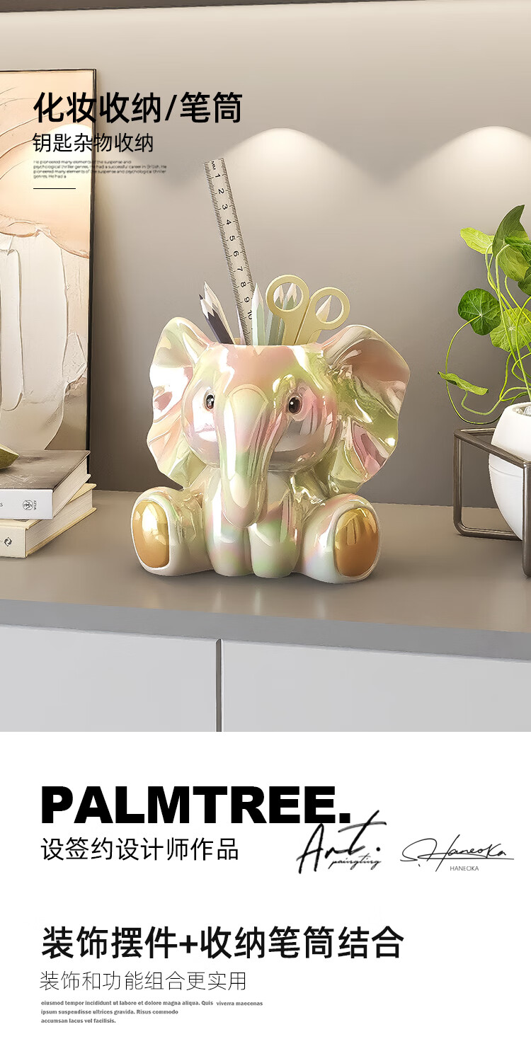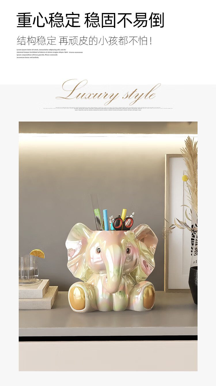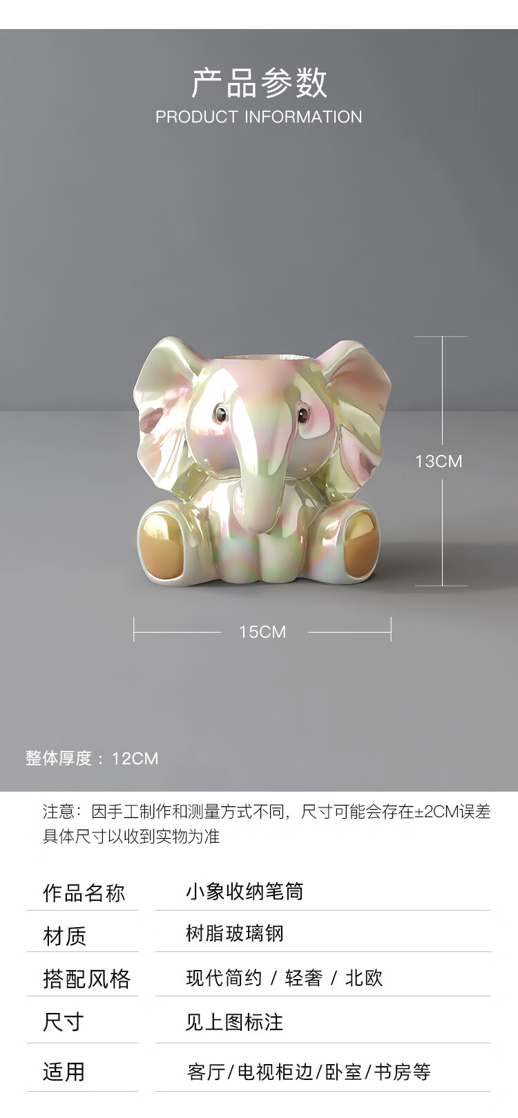 Yingsen Little Elephant Cartoon Creative Cute Office Desktop Decoration Light Luxurious High-end Children's Room Decoration for Boys and Girls Little Elephant Pen Holder Storage Ornaments-Primary Color