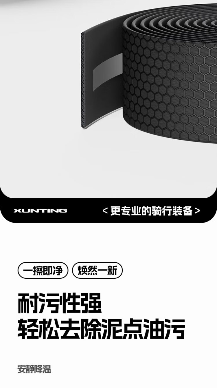 XUNTING road handlebar with bicycle handlebar wrapping belt, non-slip, breathable, friction-resistant and corrosion-resistant strap, equipment accessories, universal patterned carbon fiber - black