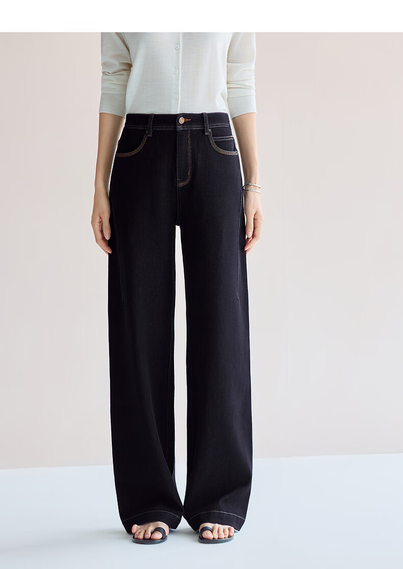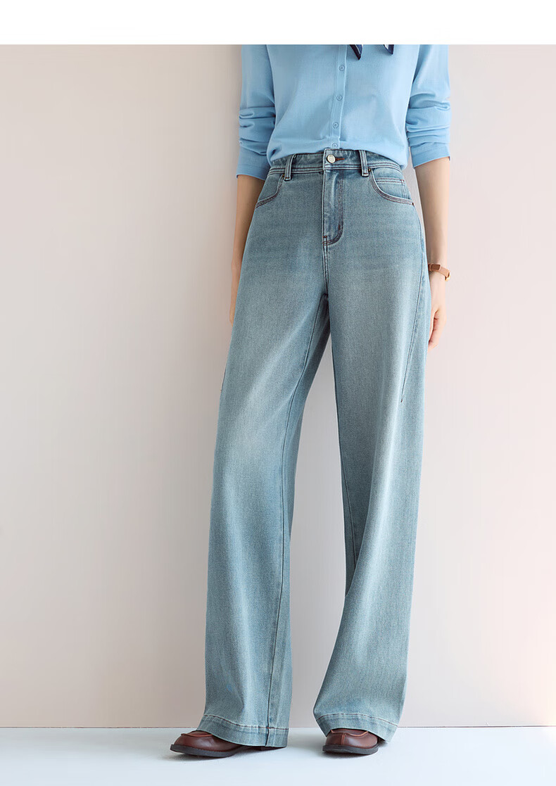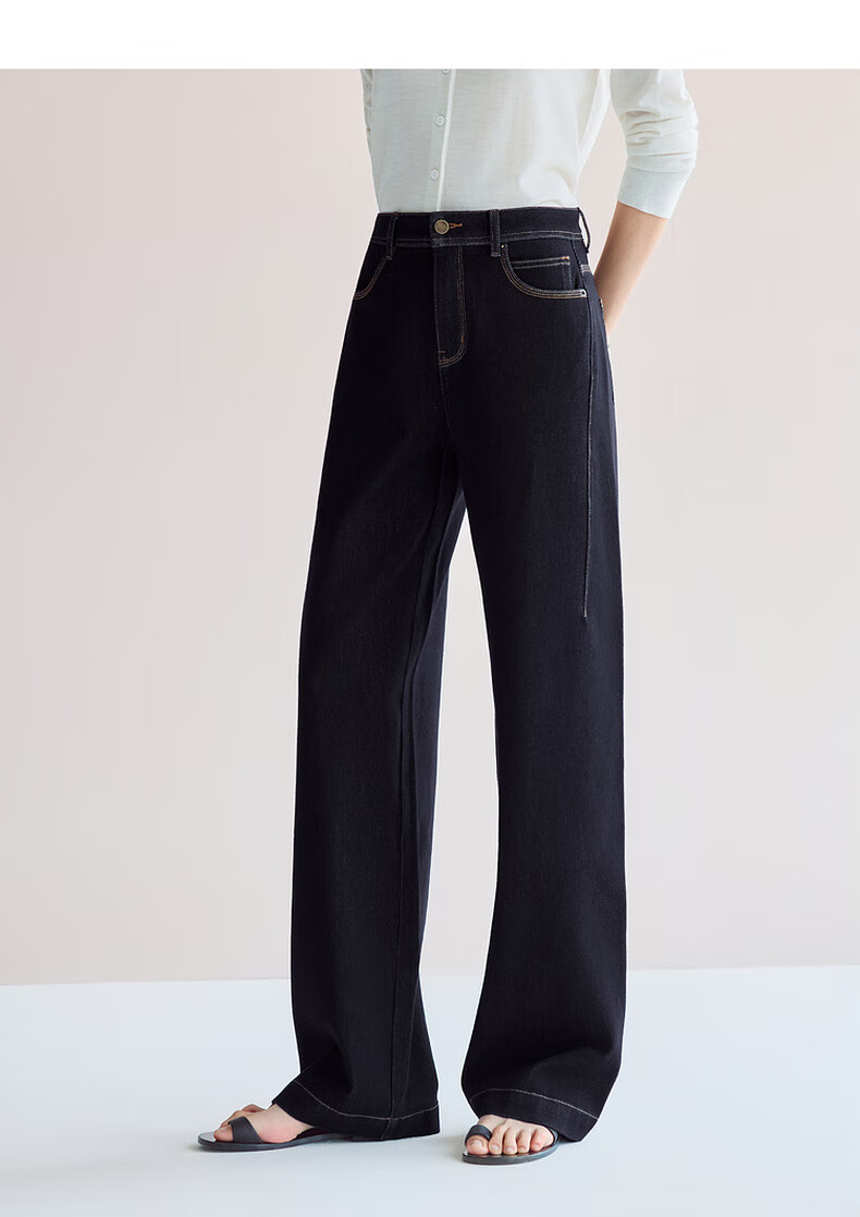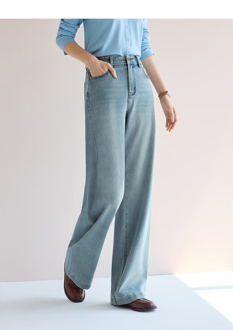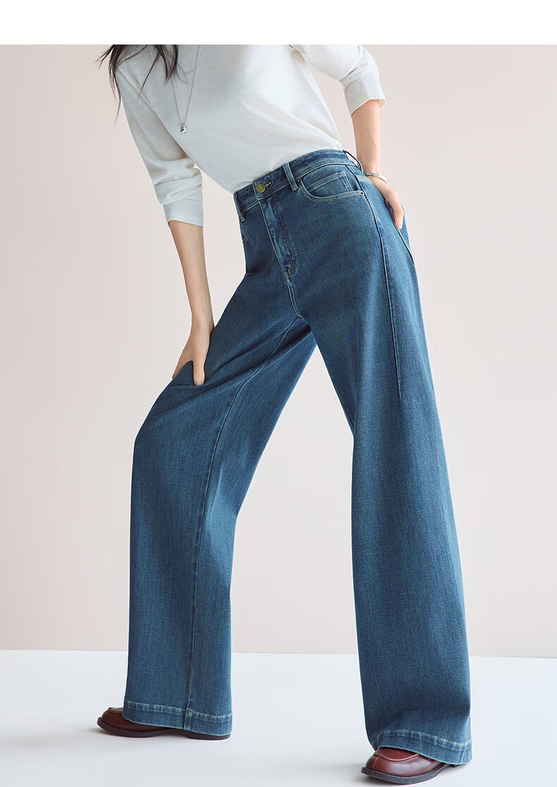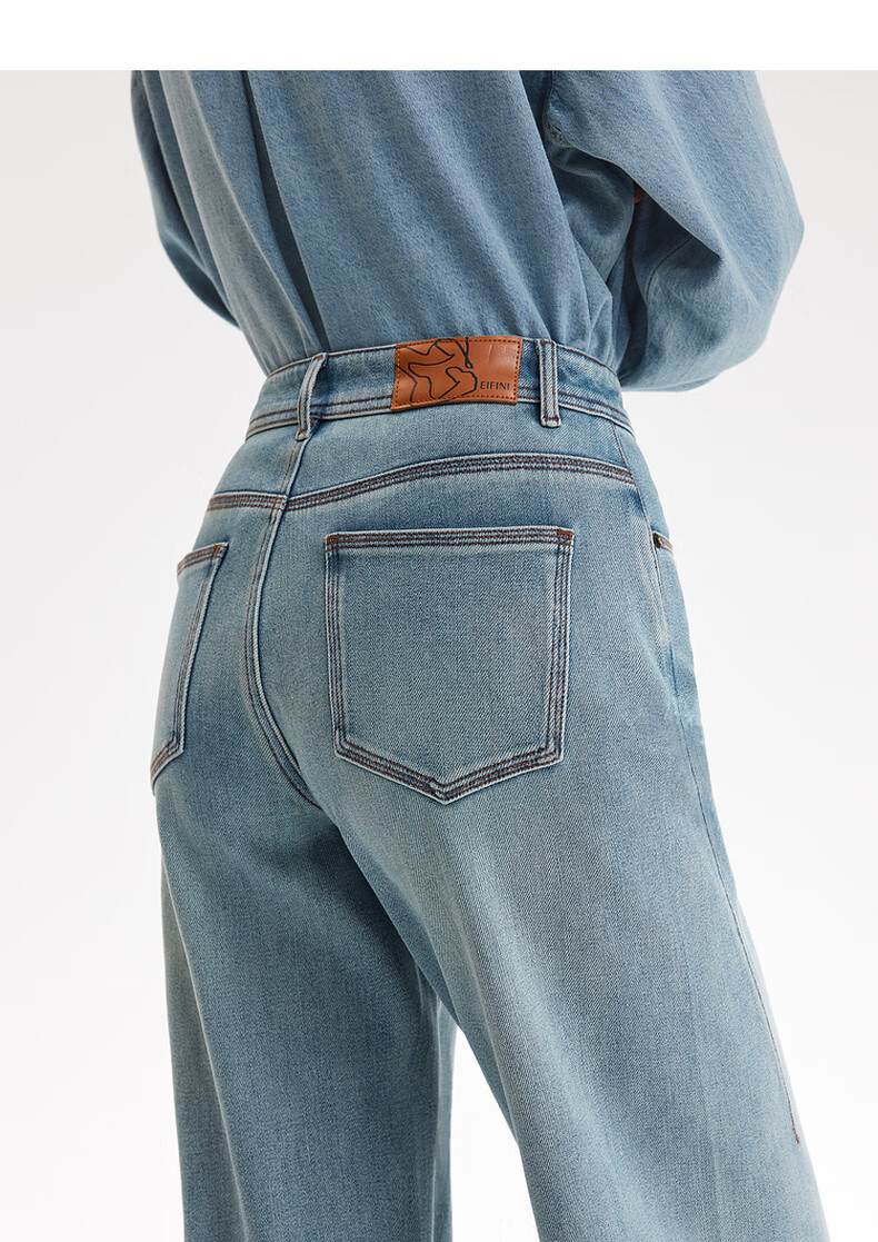 Eveli (eifini) endorsed by Jiang Xin, universal elastic, eifini no side seams, contrasting color pressed straight floor-length mopping pants, women's new stretch pants, sea blue L 110-120Jin Jin is equal to 0.5 kg