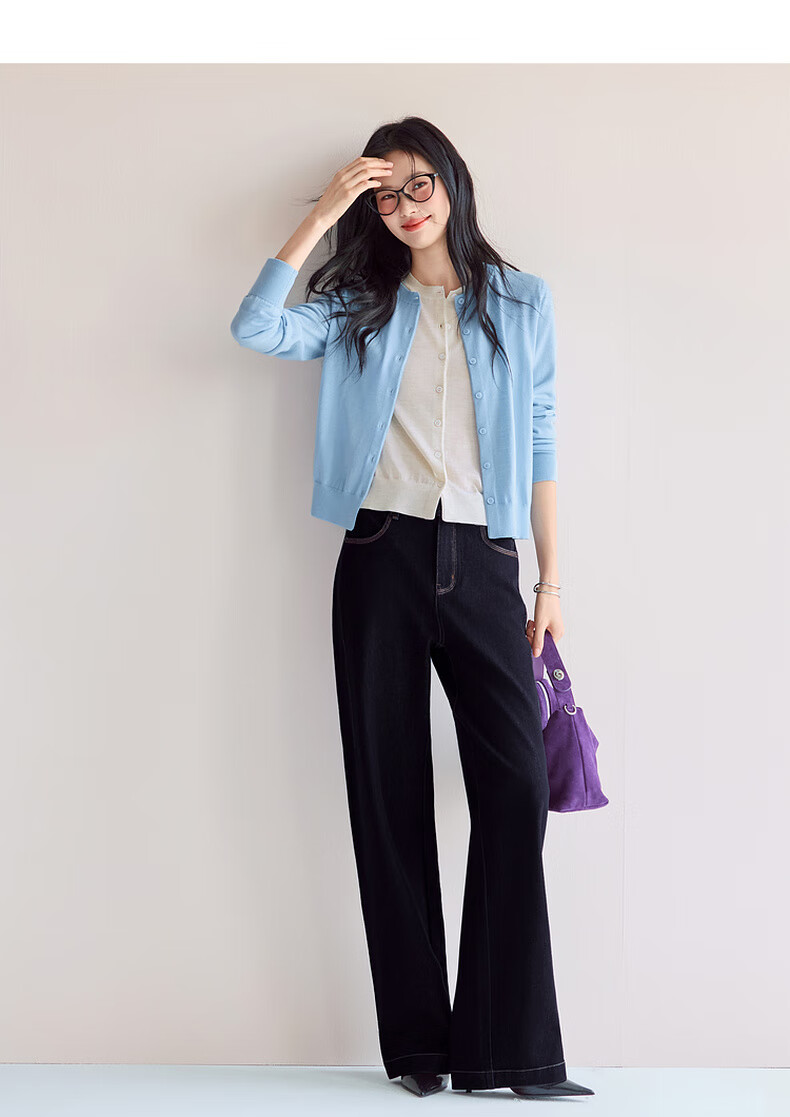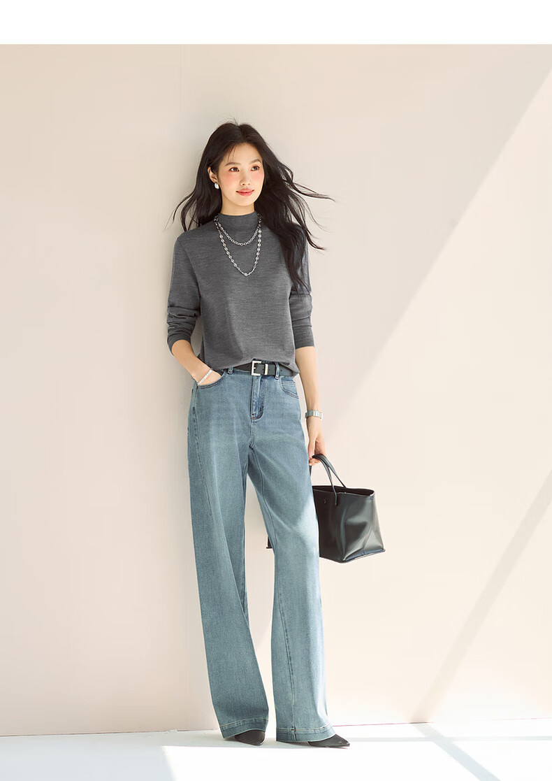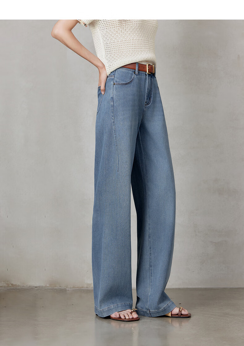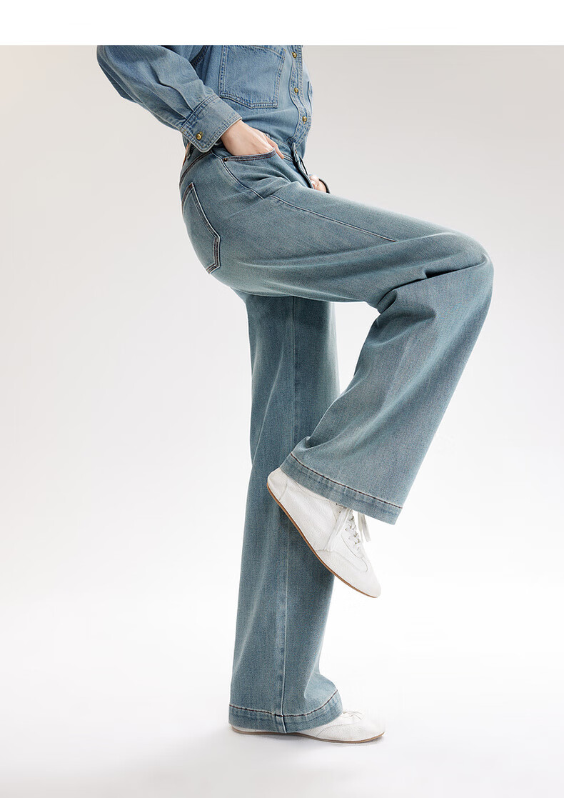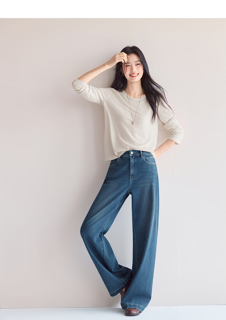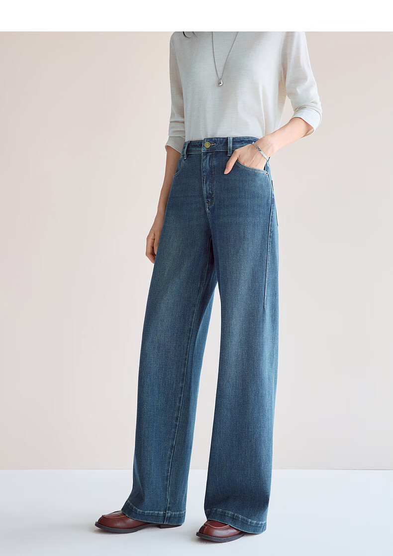 Eveli (eifini) endorsed by Jiang Xin, universal elastic, eifini no side seams, contrasting color pressed straight floor-length mopping pants, women's new stretch pants, sea blue L 110-120Jin Jin is equal to 0.5 kg