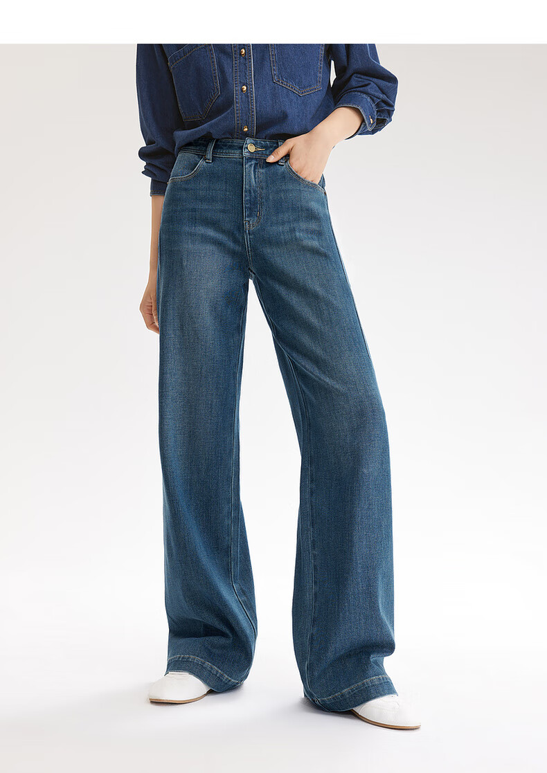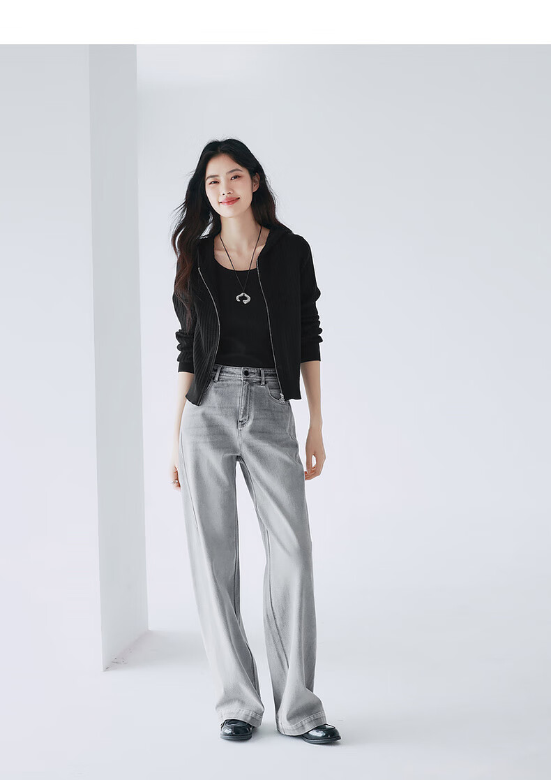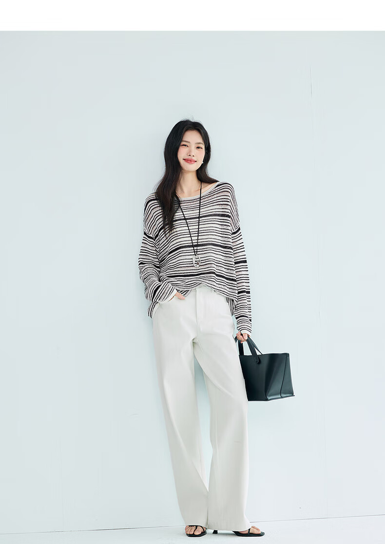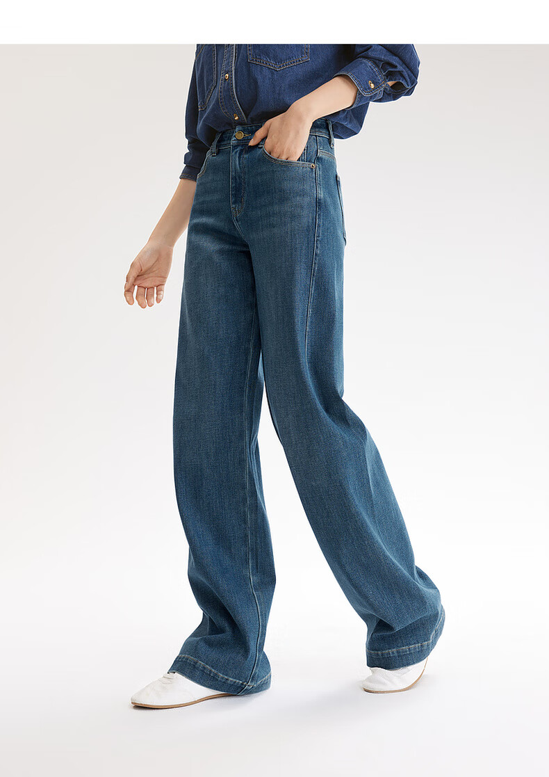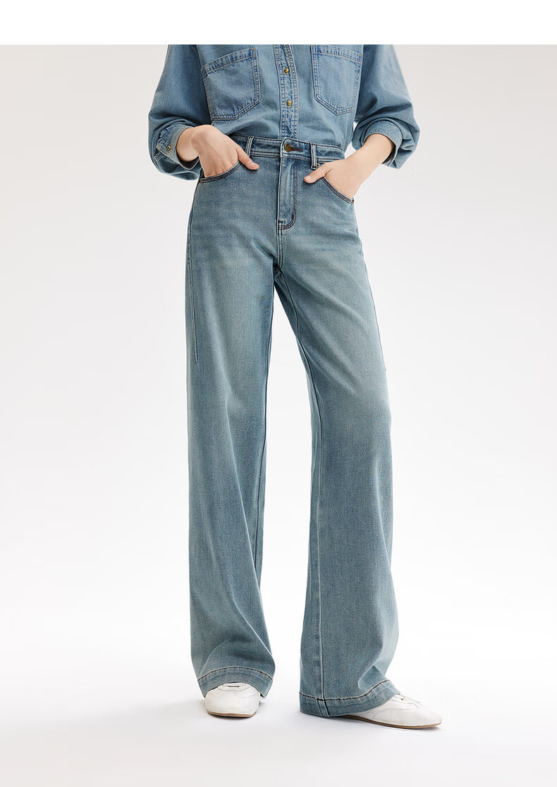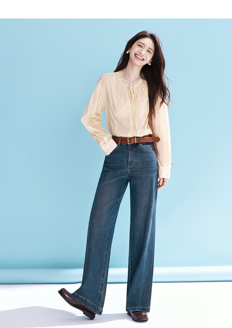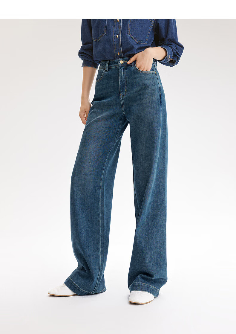 Eveli (eifini) endorsed by Jiang Xin, universal elastic, eifini no side seams, contrasting color pressed straight floor-length mopping pants, women's new stretch pants, sea blue L 110-120Jin Jin is equal to 0.5 kg