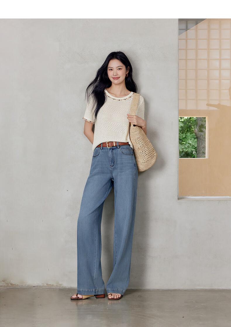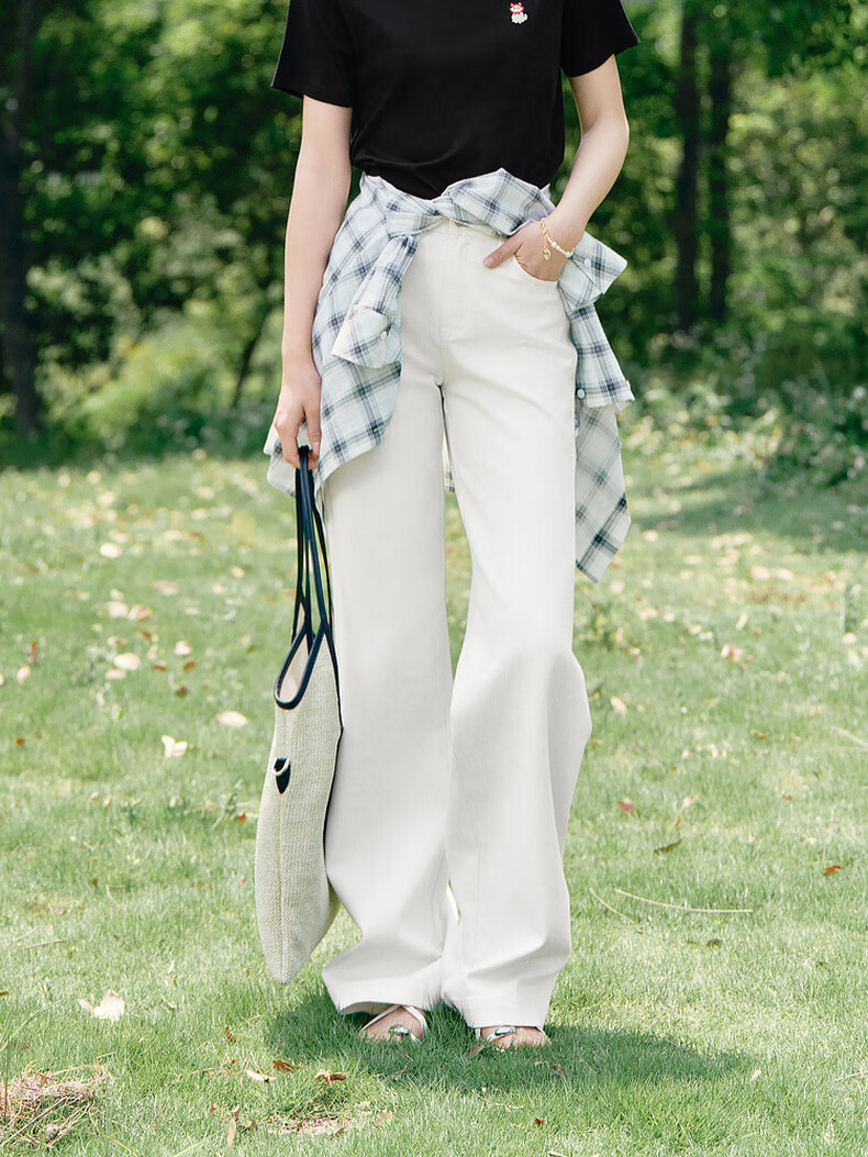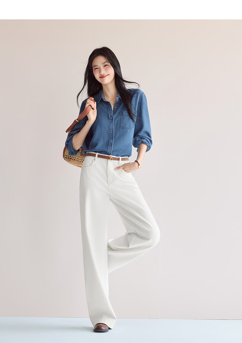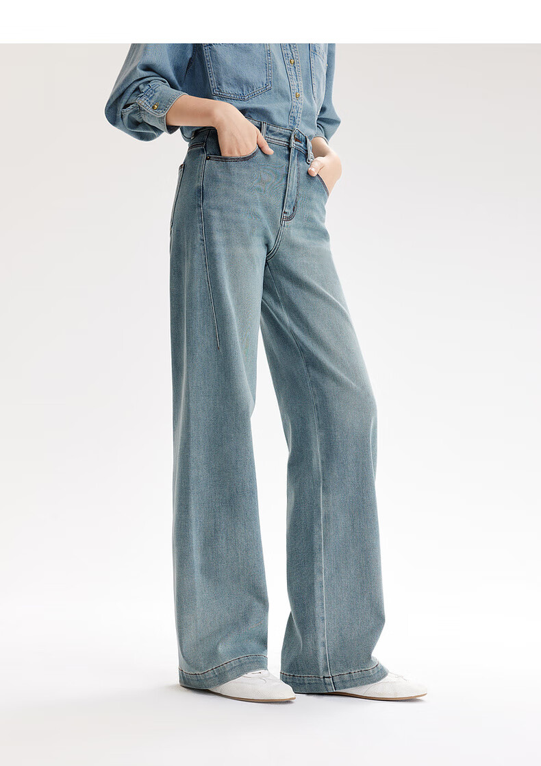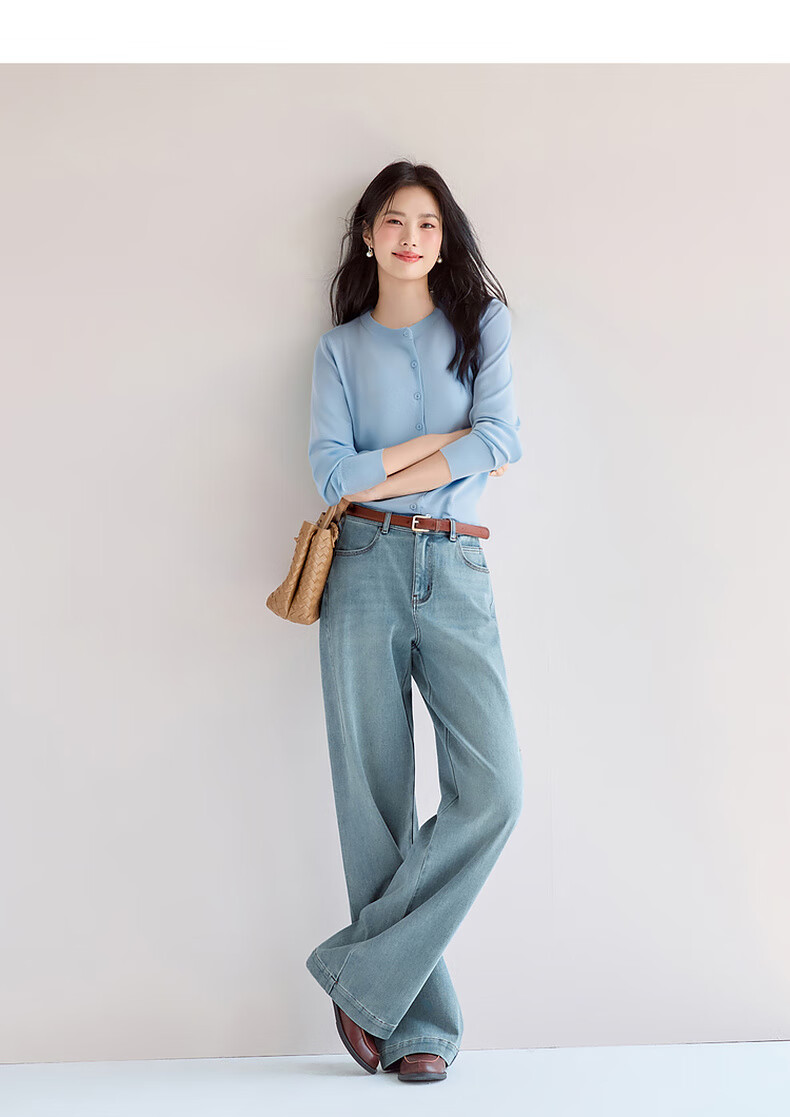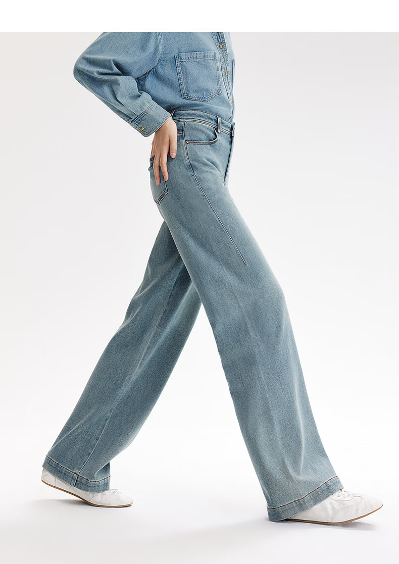 Eveli (eifini) endorsed by Jiang Xin, universal elastic, eifini no side seams, contrasting color pressed straight floor-length mopping pants, women's new stretch pants, sea blue L 110-120Jin Jin is equal to 0.5 kg
