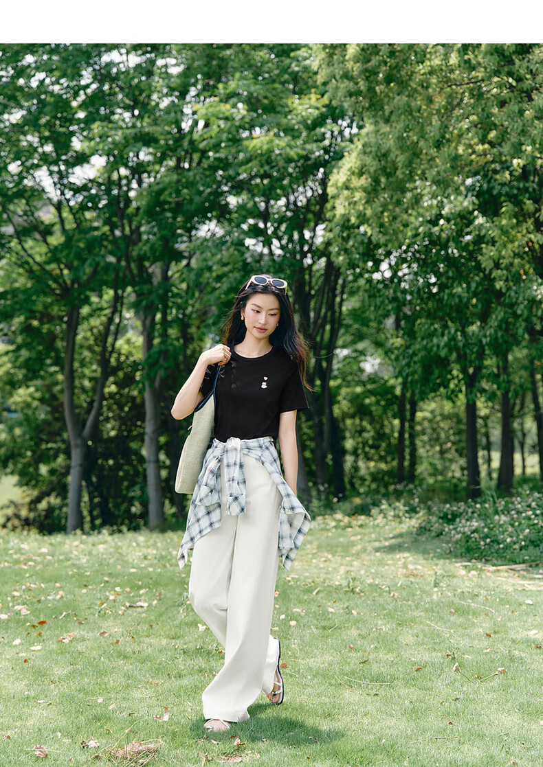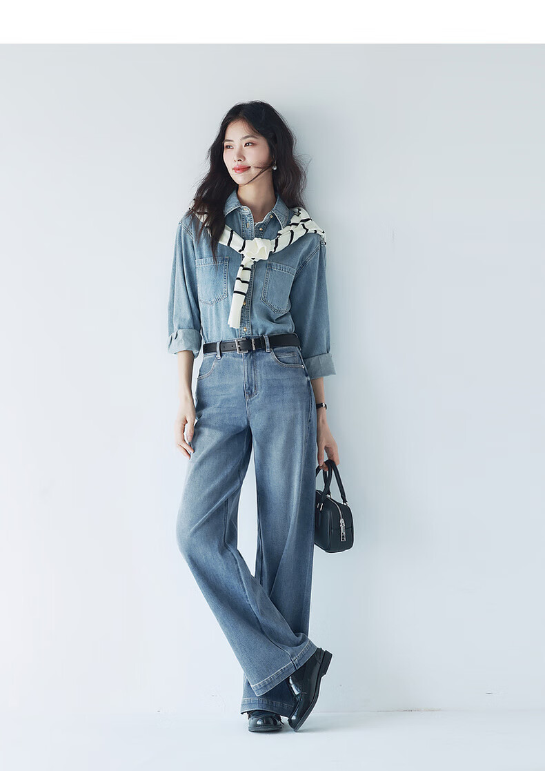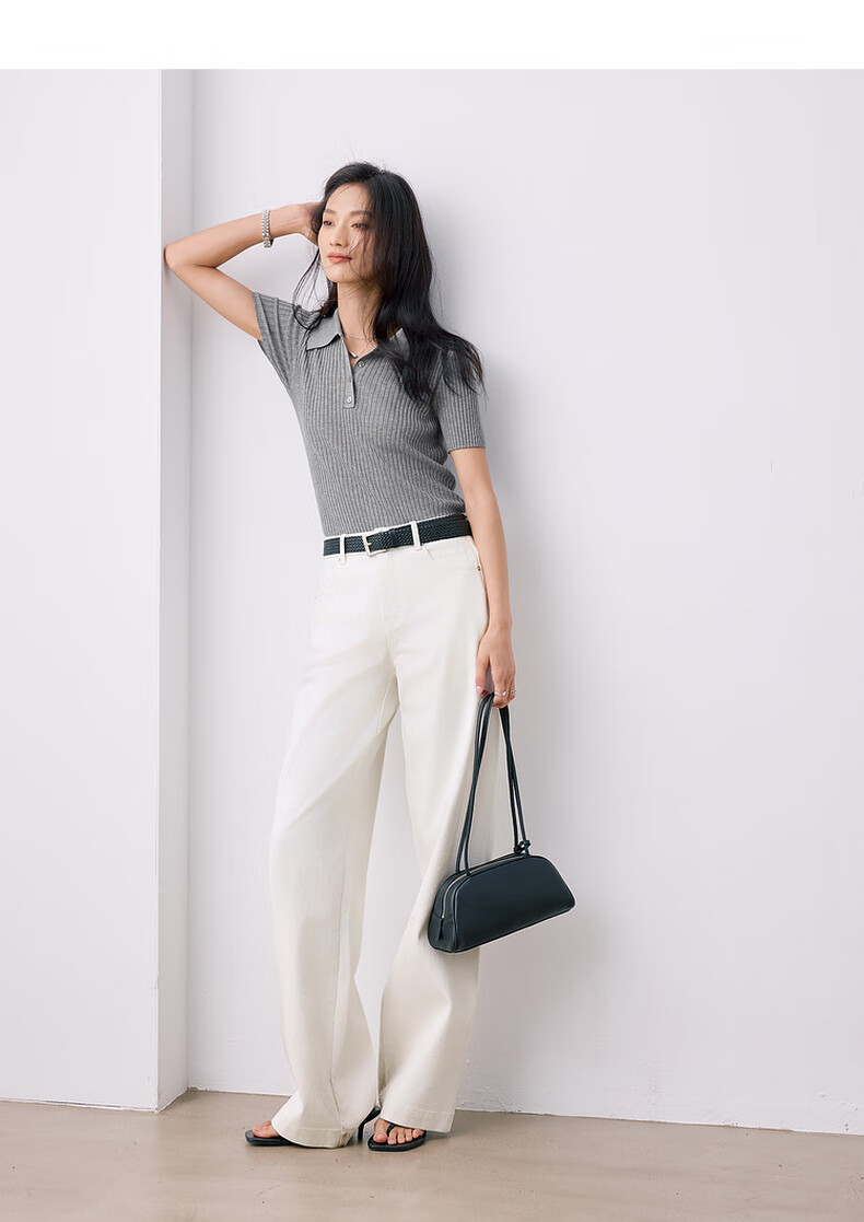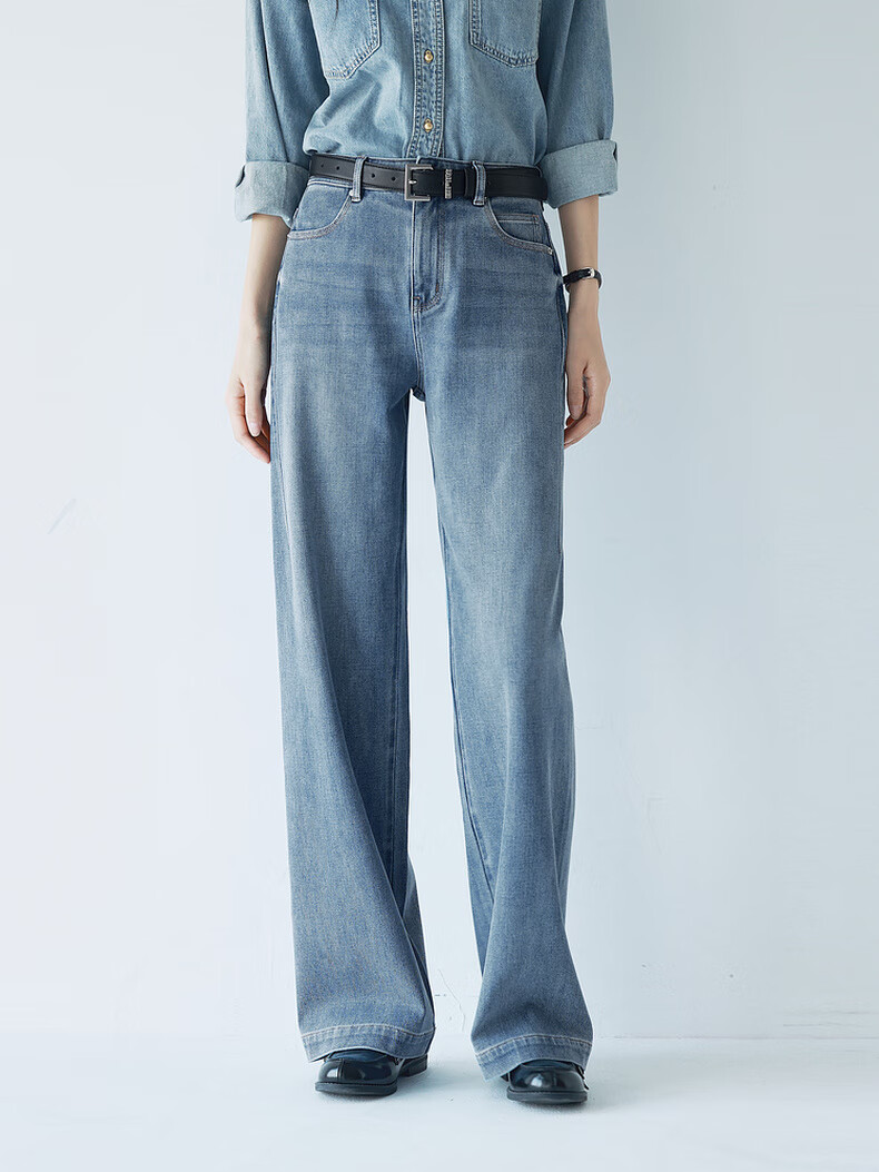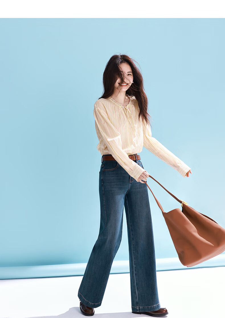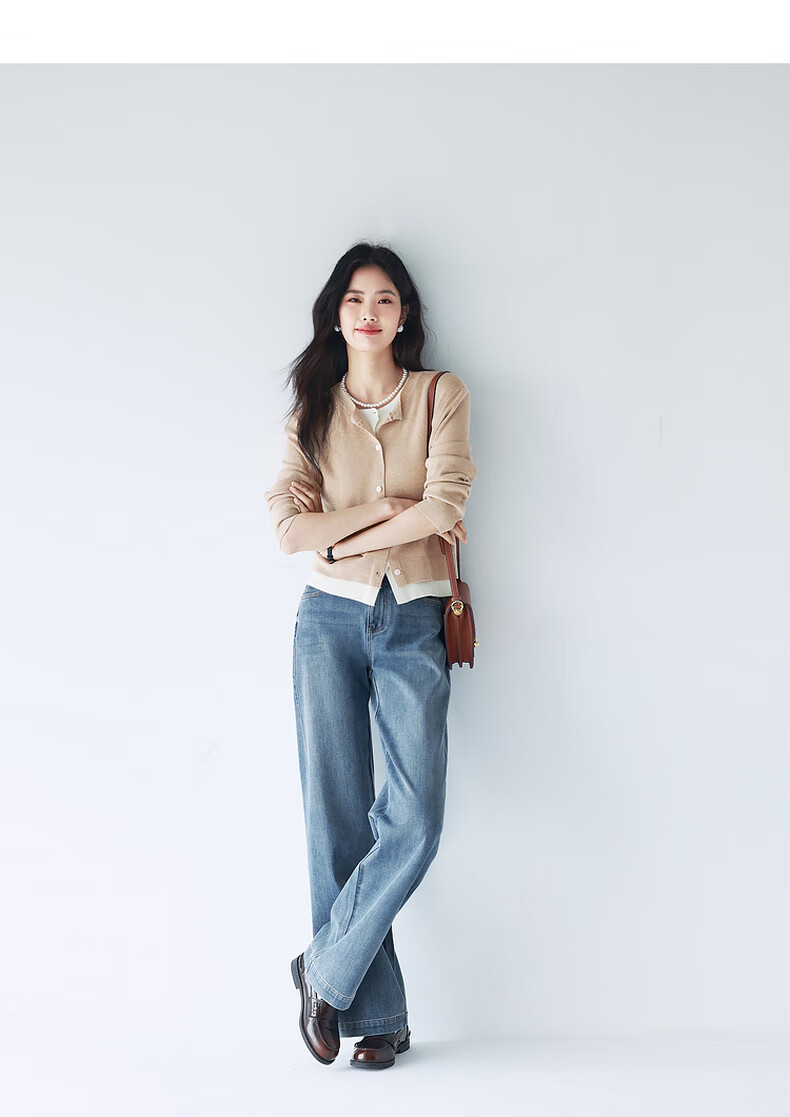 Eveli (eifini) endorsed by Jiang Xin, universal elastic, eifini no side seams, contrasting color pressed straight floor-length mopping pants, women's new stretch pants, sea blue L 110-120Jin Jin is equal to 0.5 kg