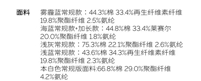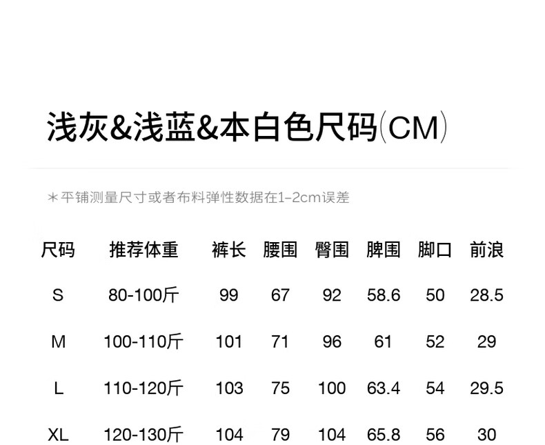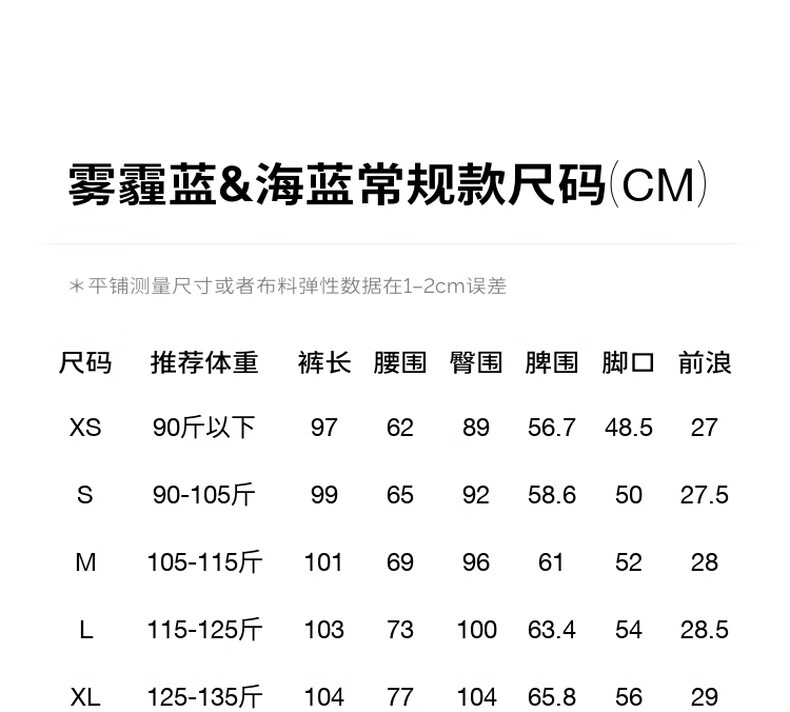 Outseam (cm) 99 cm 101.5 cm 104 cm 106.5 cm 109 cm