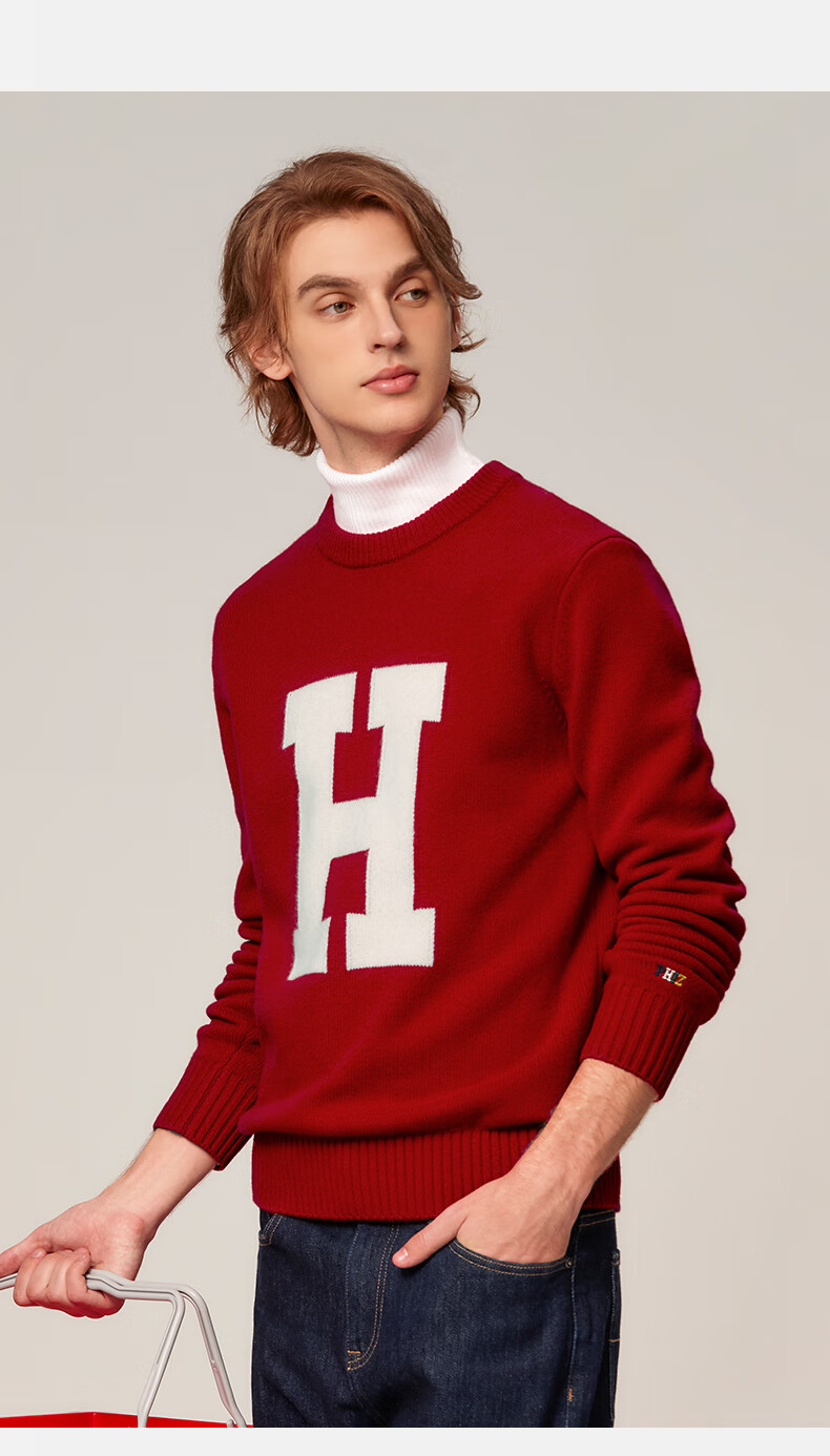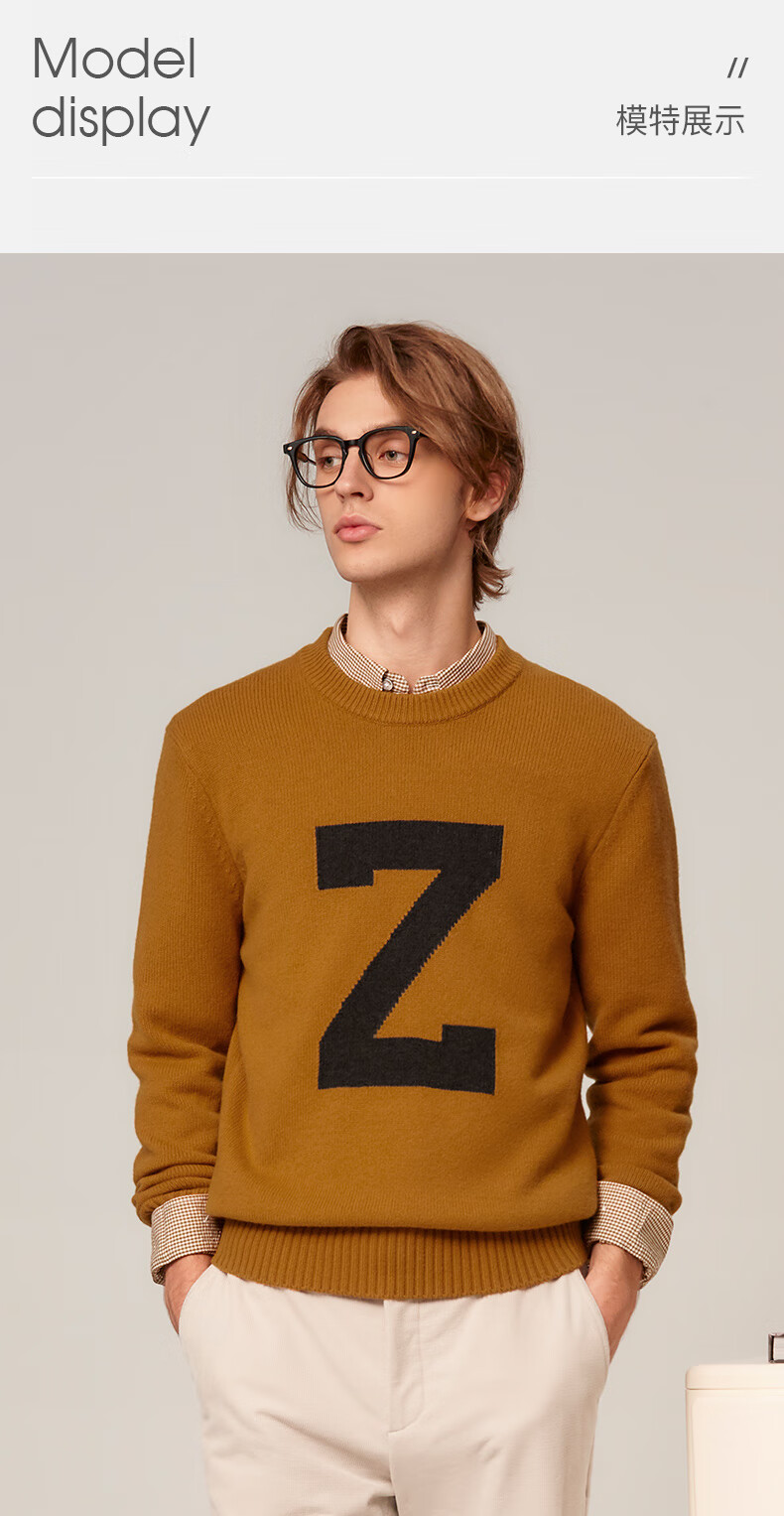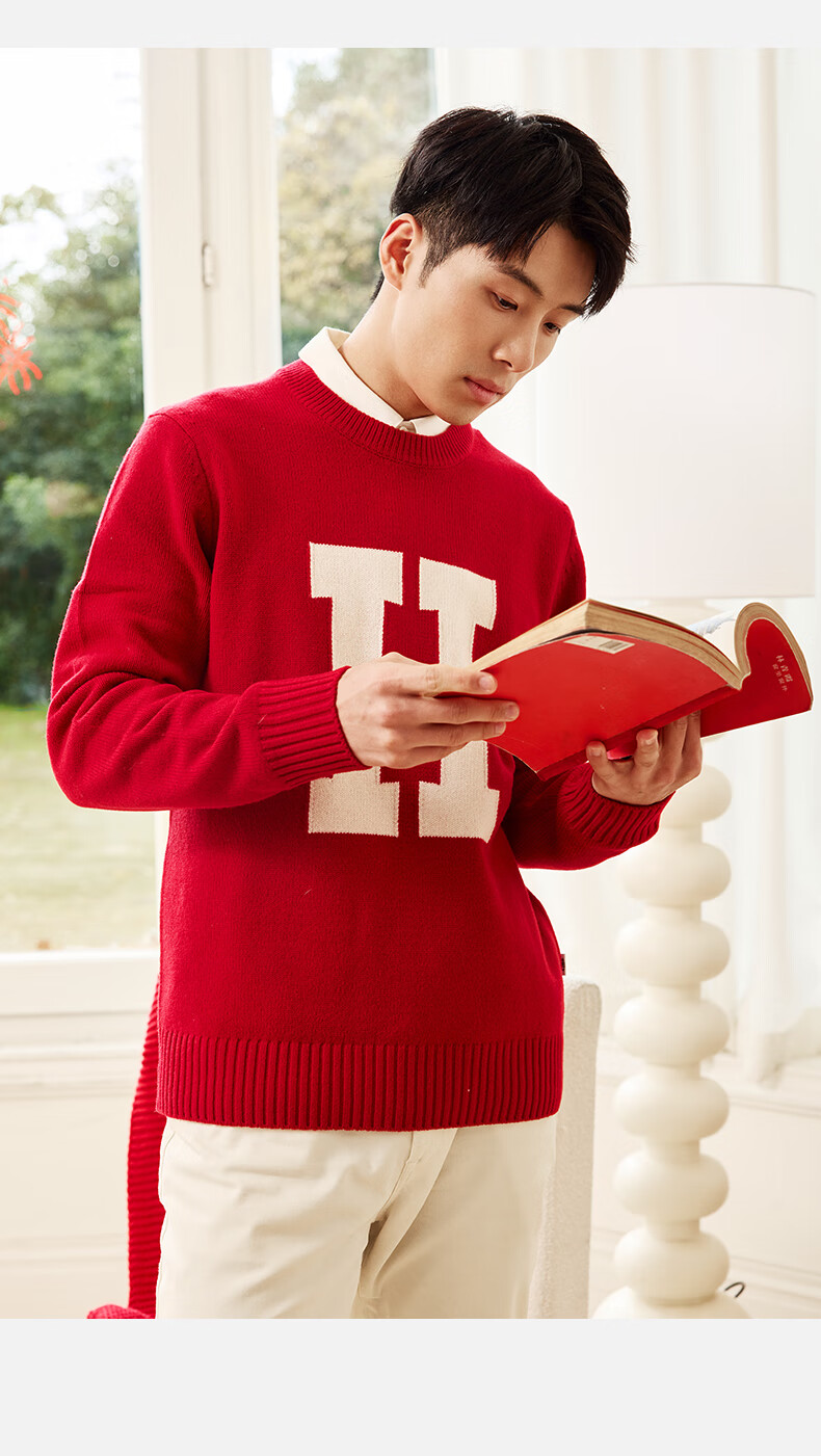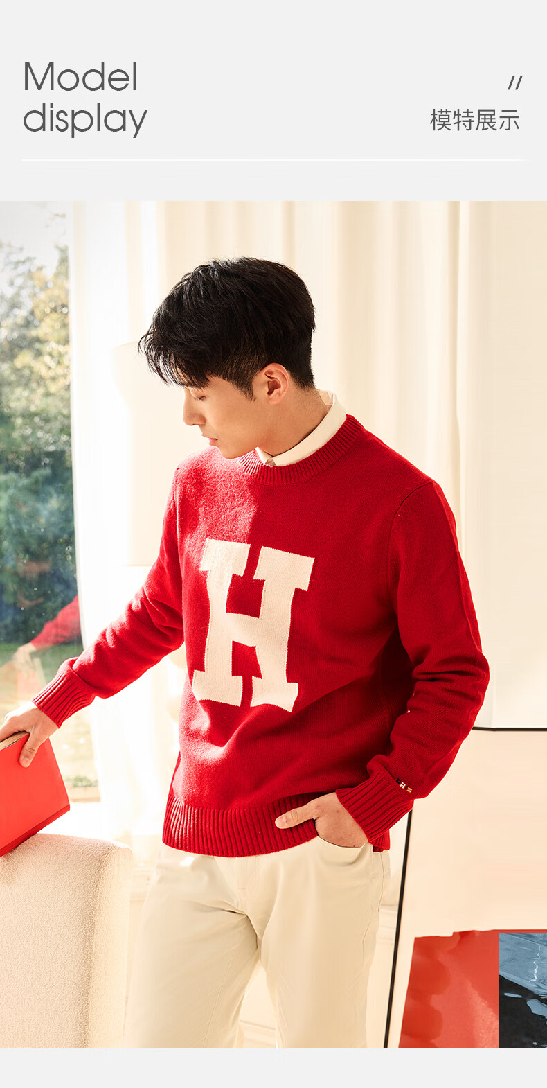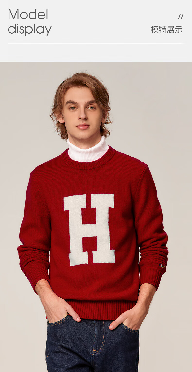 HAZZYS Men's Autumn and Winter Sweaters PHIZ Series Letter Knitted Wool Sweater Men's ABYZD0BDI31 Dark Navy Blue DN M (170/92A 46)
