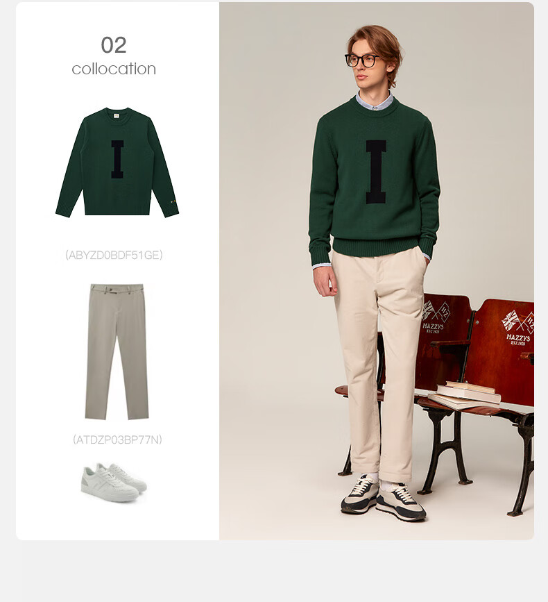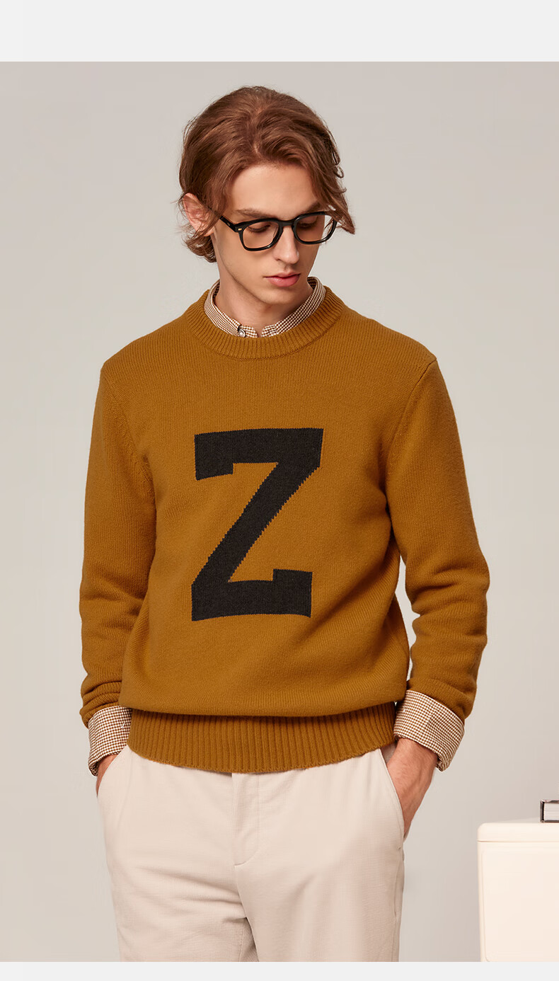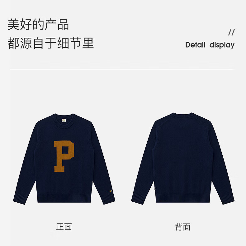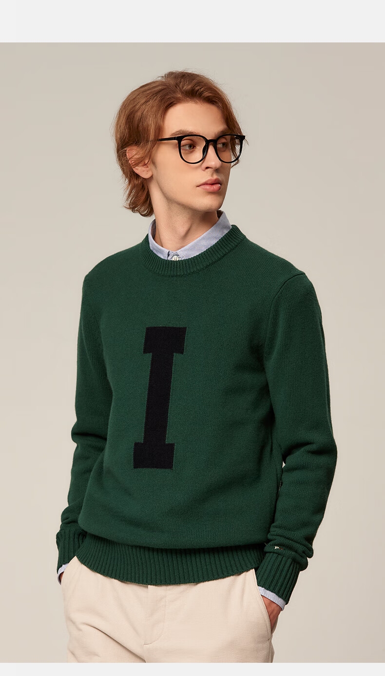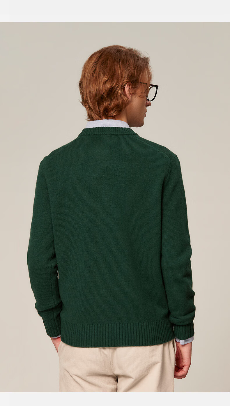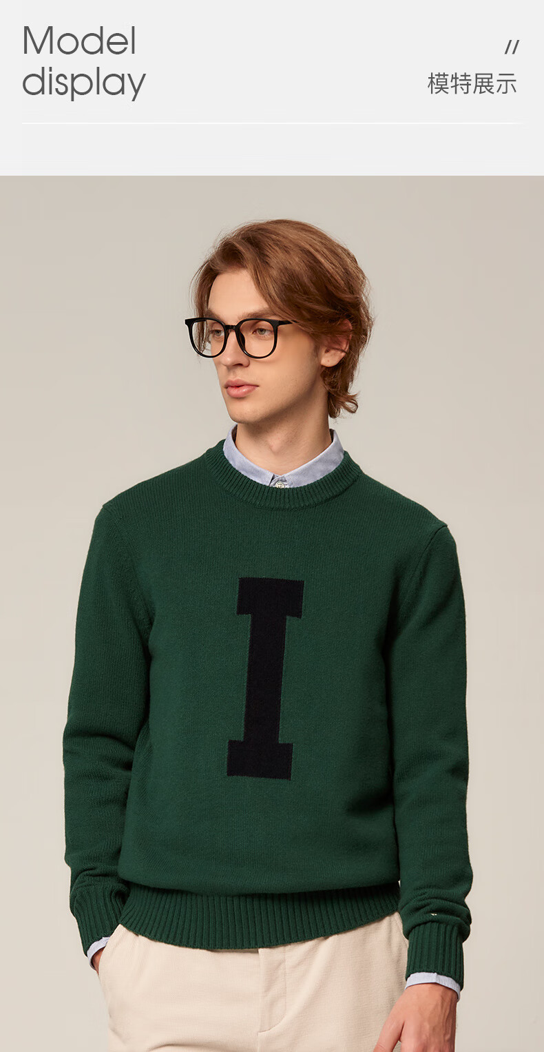 HAZZYS Men's Autumn and Winter Sweaters PHIZ Series Letter Knitted Wool Sweater Men's ABYZD0BDI31 Dark Navy Blue DN M (170/92A 46)