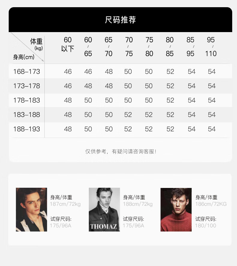 China (cm) 160-165/84-86 165-170 / 88-90 167-172 / 92-96 168-173 / 98-102 170-176 / 106-110