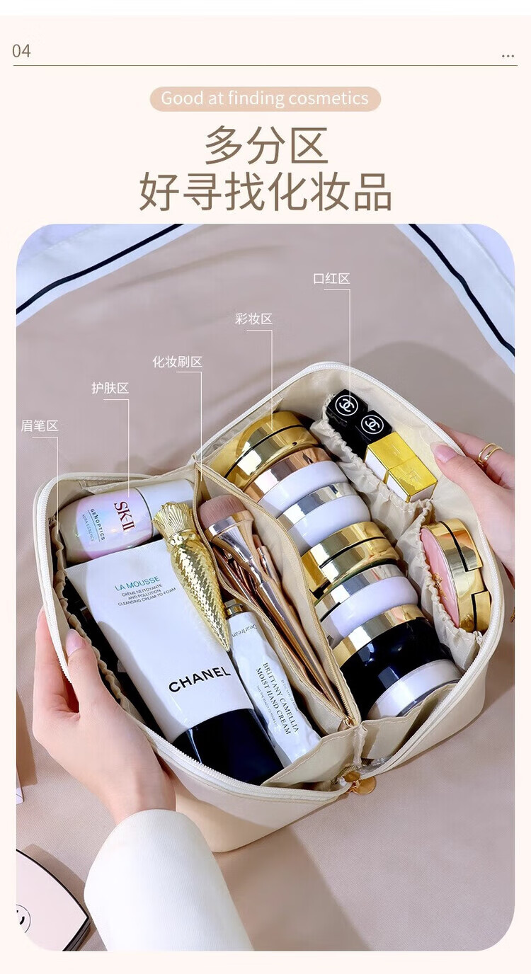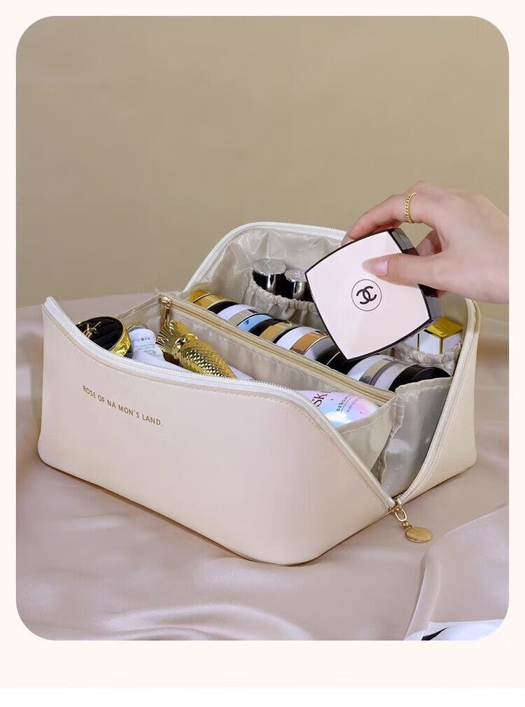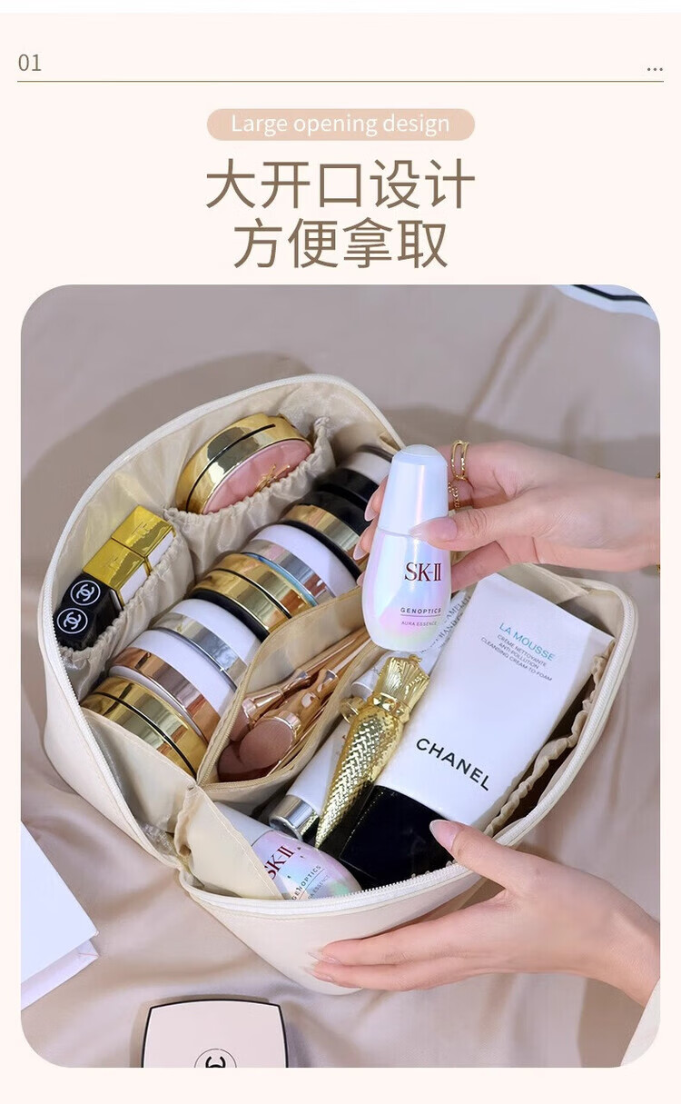 New high-end large-capacity toiletry and cosmetic storage bag, portable pillow storage bag for outings - random color, high-end pillow cosmetic bag - mocha brown
