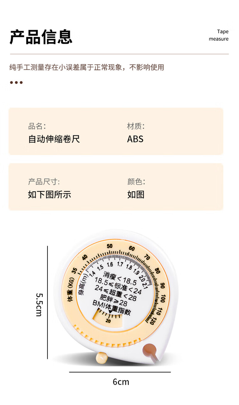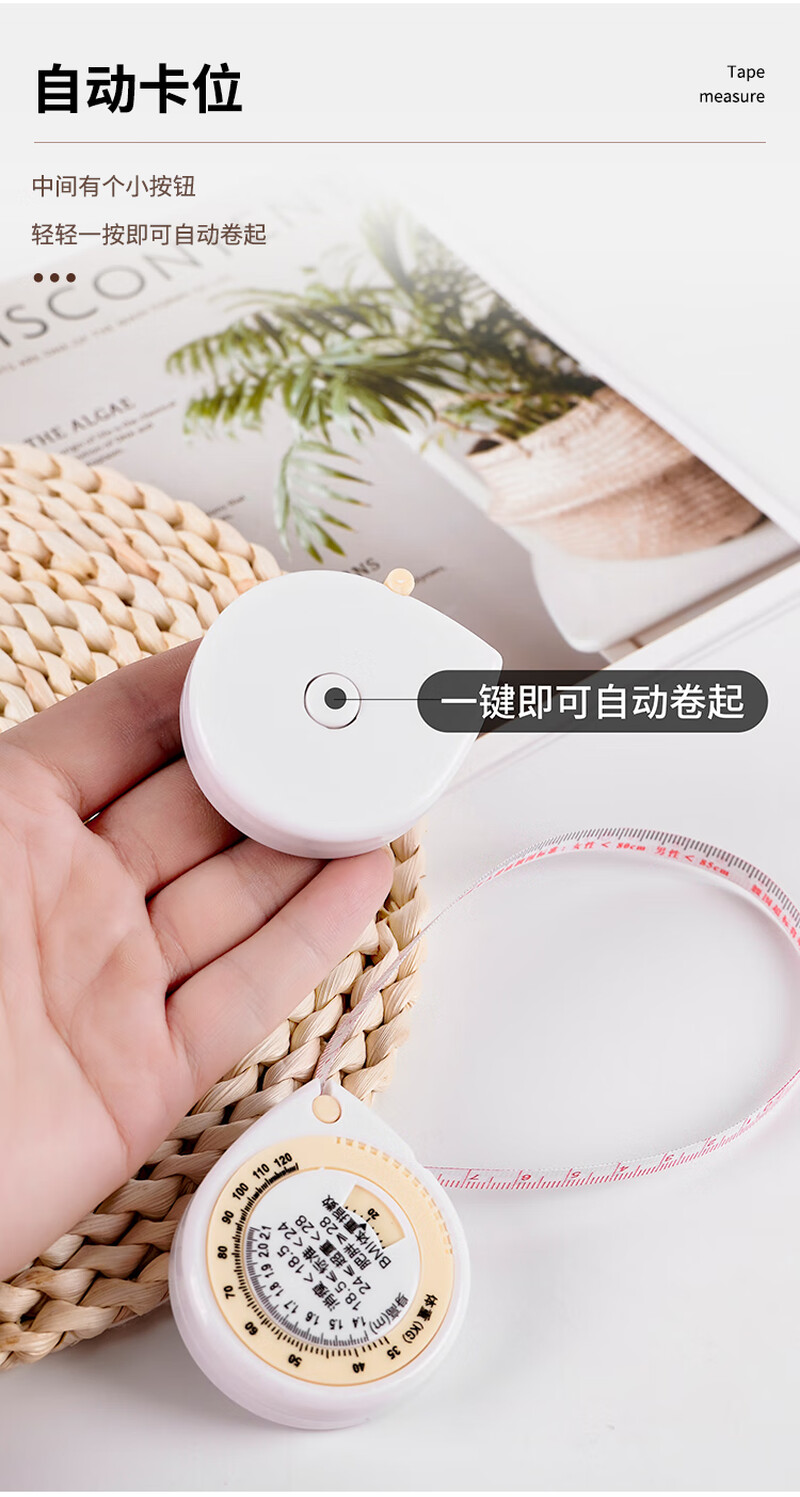Portable automatic retractable tape measure, mini portable clothes measuring tape, waist and bust 3 circumference measuring soft tape, health tape, BMI 3-dimensional measuring tape, 1 pack