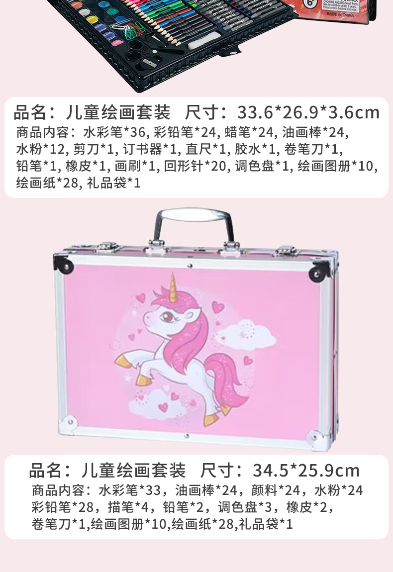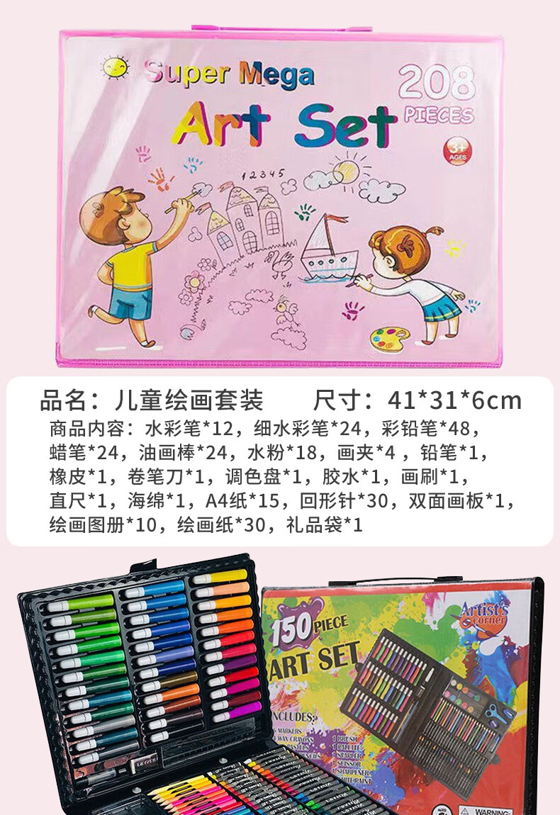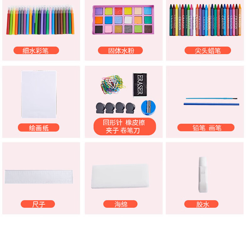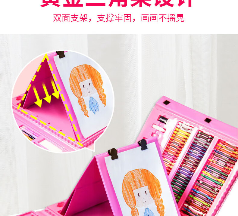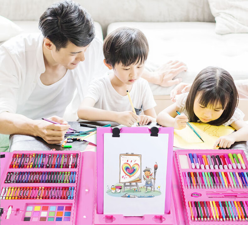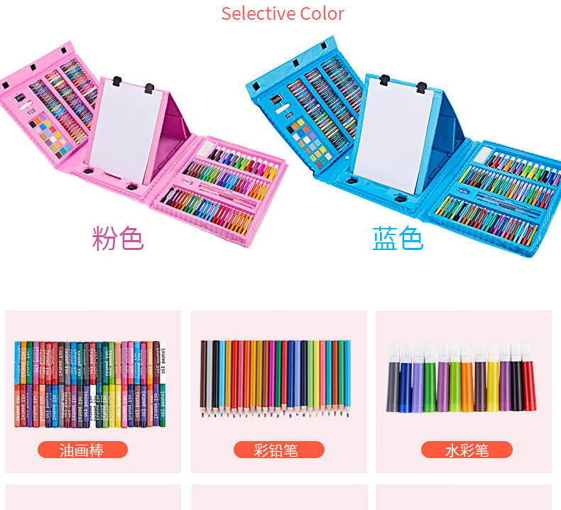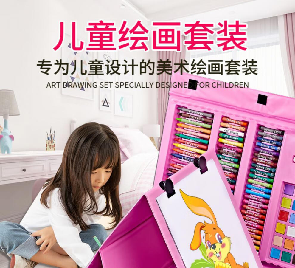 Congyingle children's painting tool set primary school girl art painting school supplies brush birthday gift pink 228 pieces gift bag + apron sleeve + LED watch