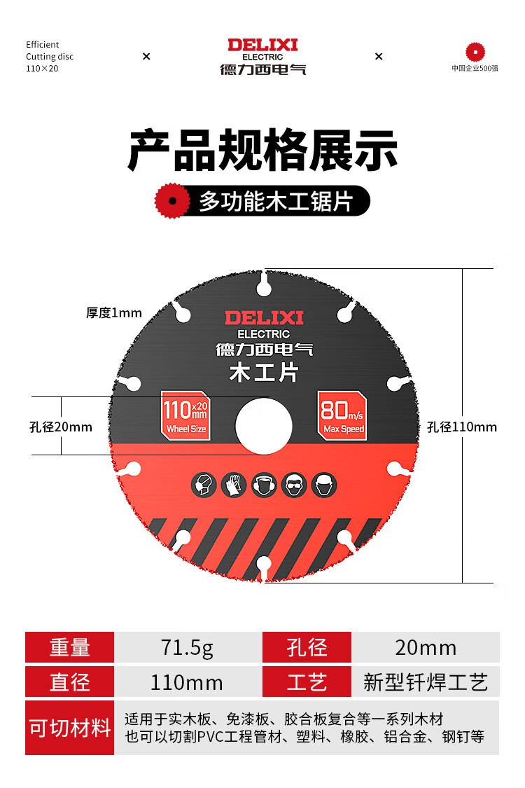 Delixi Electric woodworking saw blade angle grinder solid wood steel nail saw blade marble machine aluminum PVC cutting blade cutting machine electric saw blade anti-nail type new wood saw blade 1 piece
