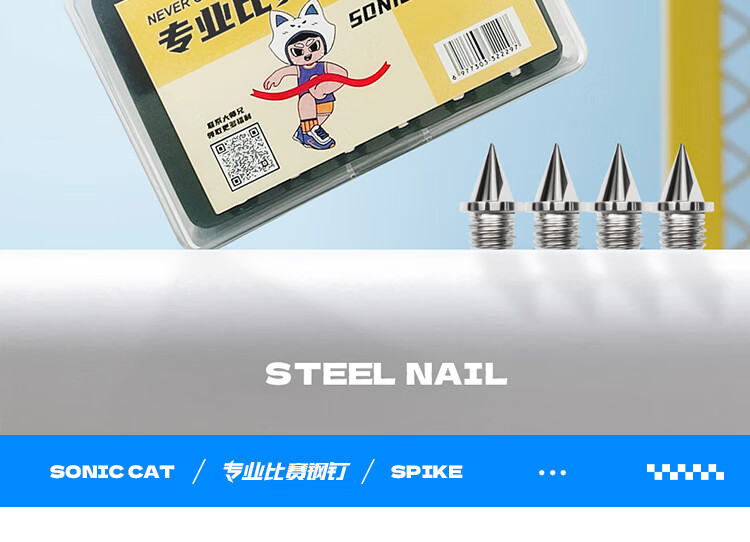 Sonic Cat Champion Same Style Universal Track and Field Spikes Wear-Resistant Steel Nails Official German Imported Material Universal Wear-Resistant Steel Nails Spike + Nail Remover 1 Box of 18 0