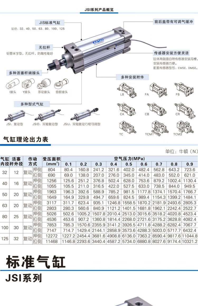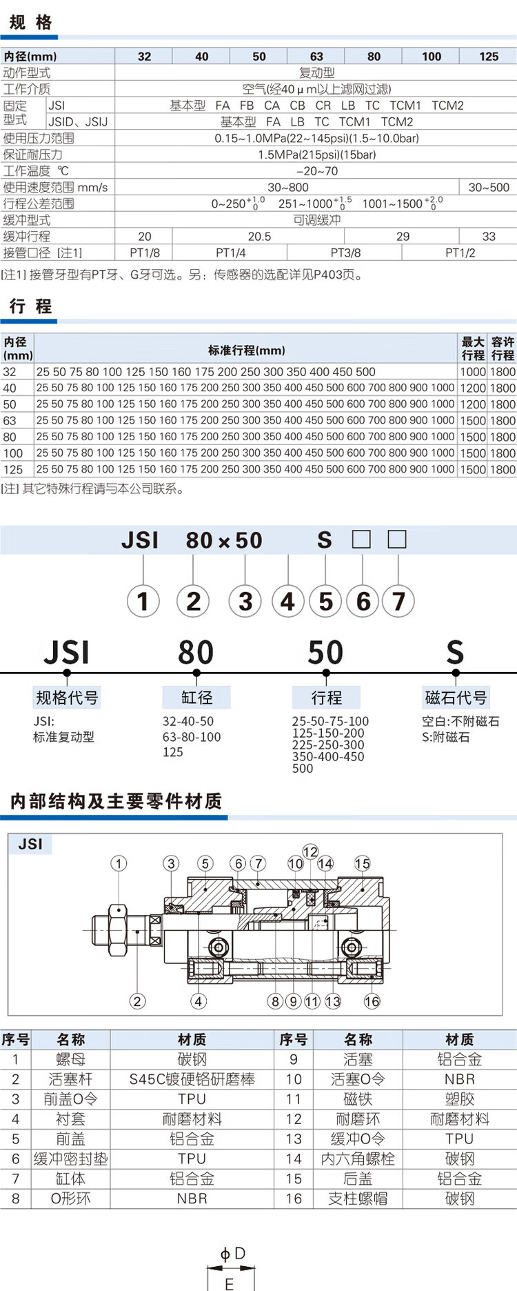 Customized standard cylinder with large thrust JSI63X25X50X75X100X125X150X175X200X300-S Wan Default JSI63X75S