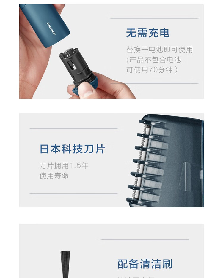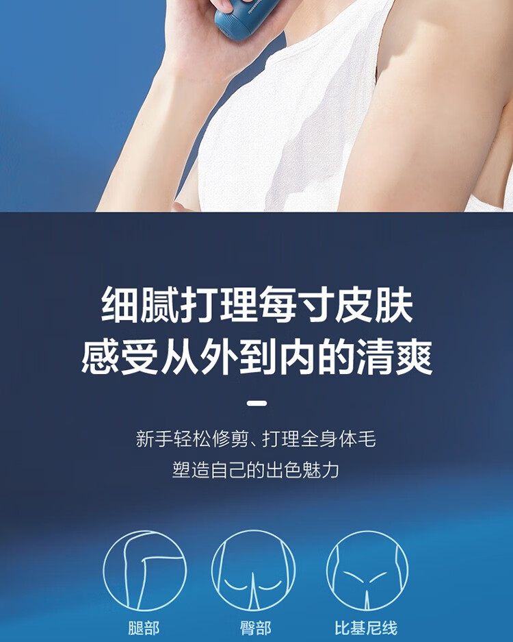 Panasonic epilator shaver men's electric body hair trimmer armpit hair private part hair removal dry and wet shaver hair removal instrument for men to give husband Christmas gift blue