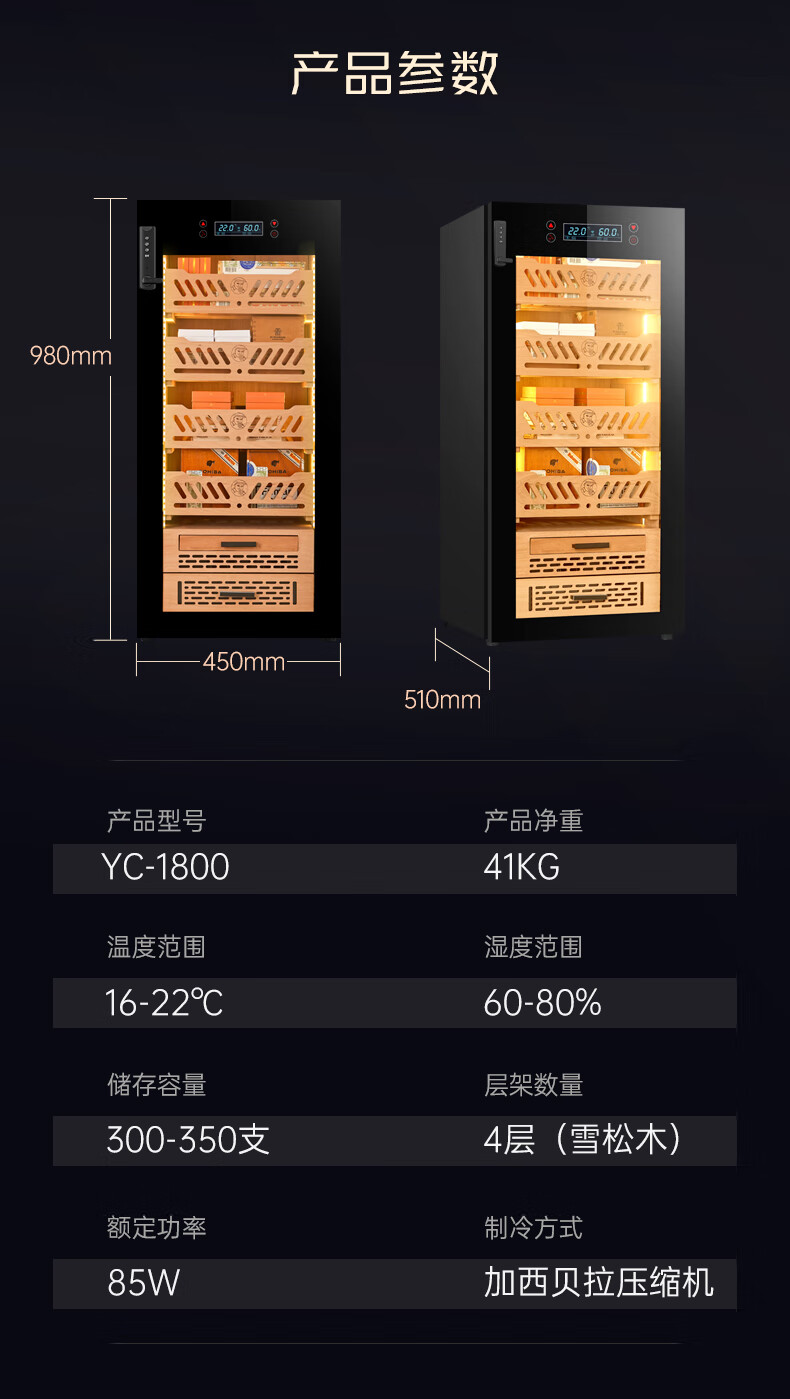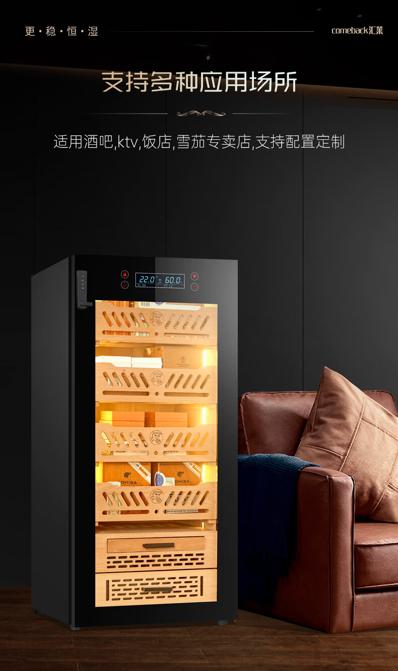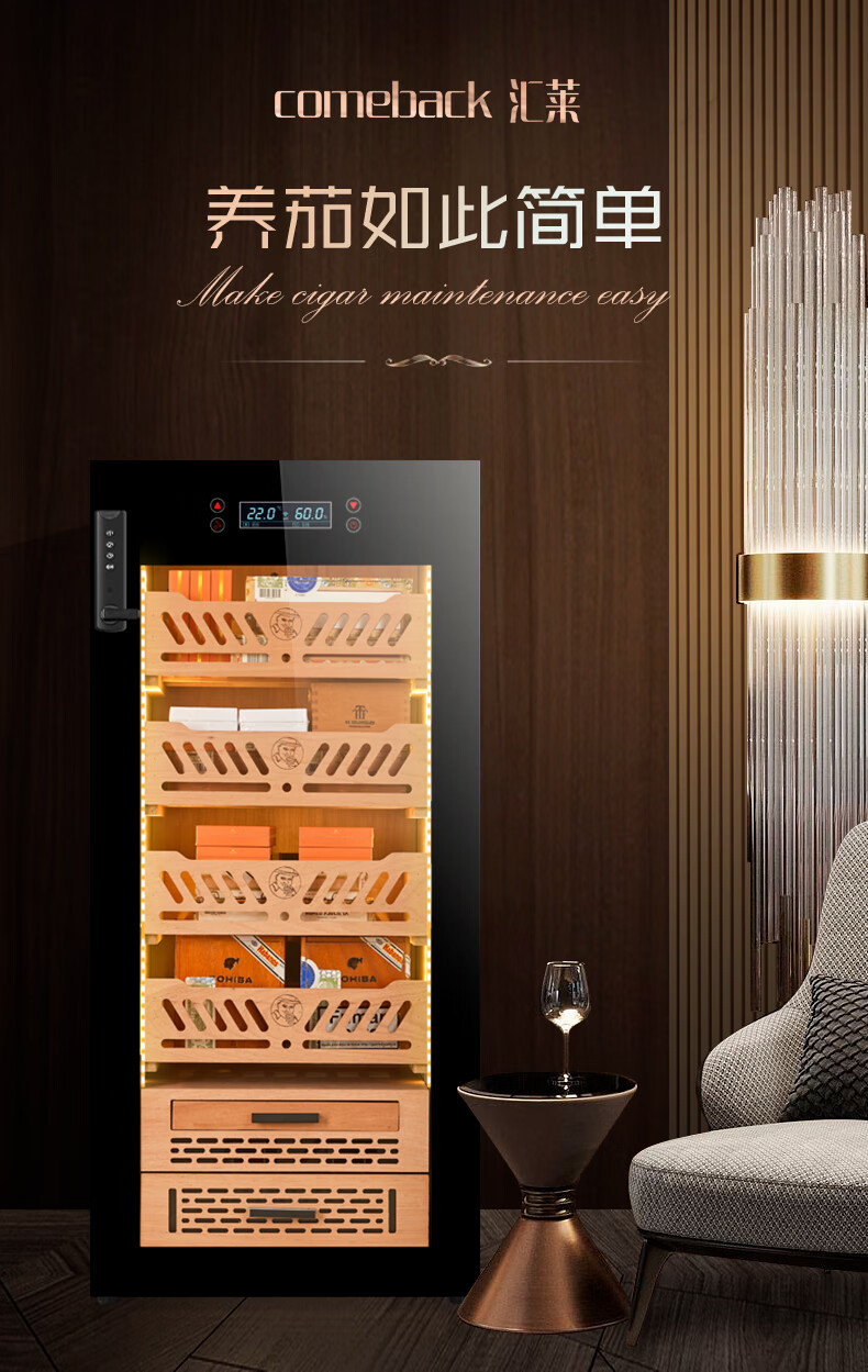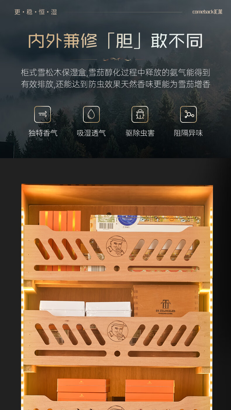 Huilai COMEBACK YC1800 constant temperature and humidity humidor cedar wood ammonia removal humidifier mini cigar cabinet refrigerator cedar wood cabinet 3 flat + 1 basket