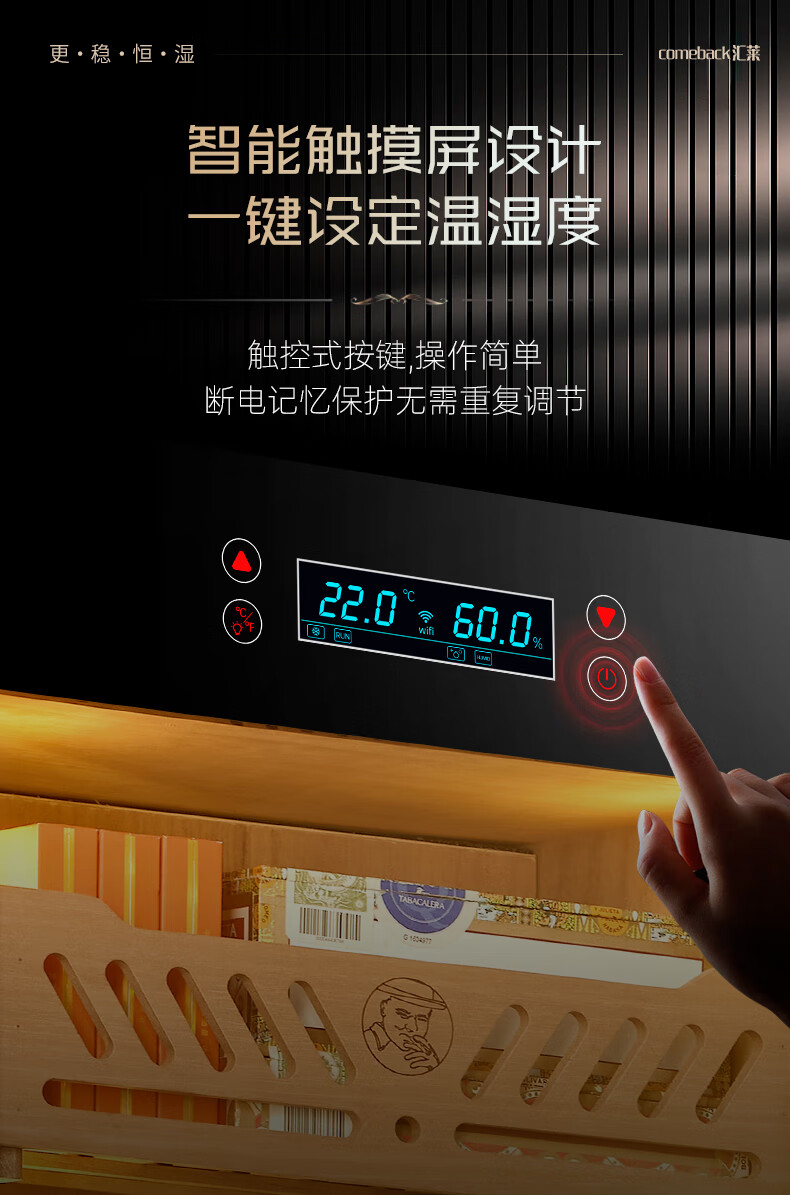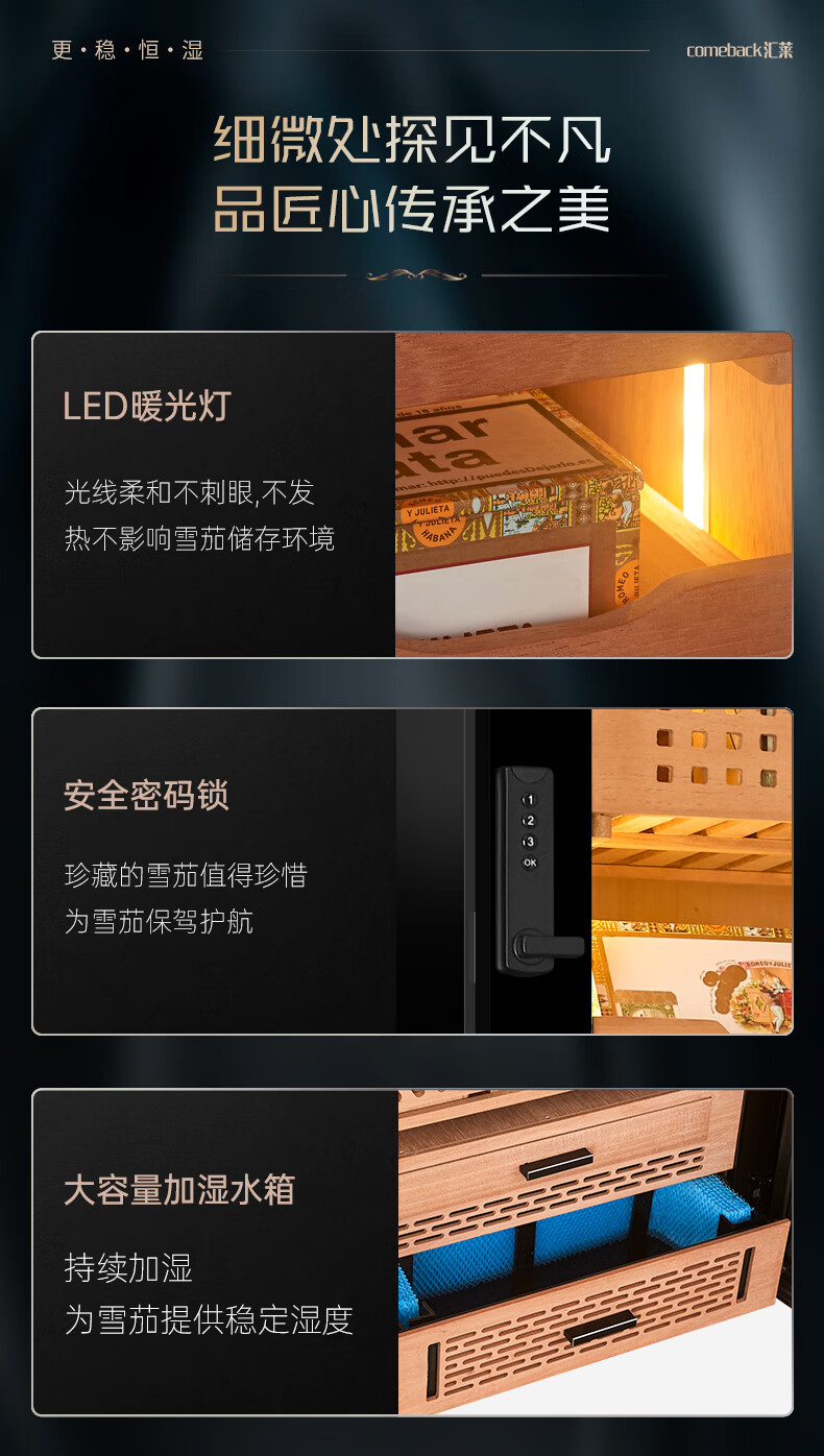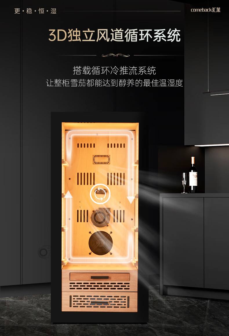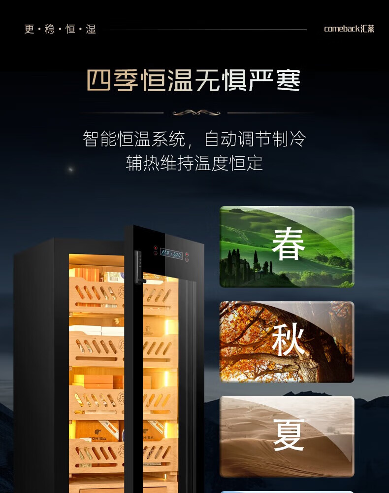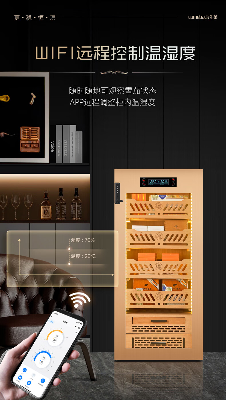 Huilai COMEBACK YC1800 constant temperature and humidity humidor cedar wood ammonia removal humidifier mini cigar cabinet refrigerator cedar wood cabinet 3 flat + 1 basket