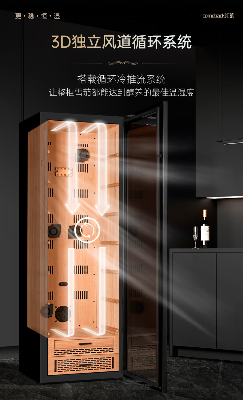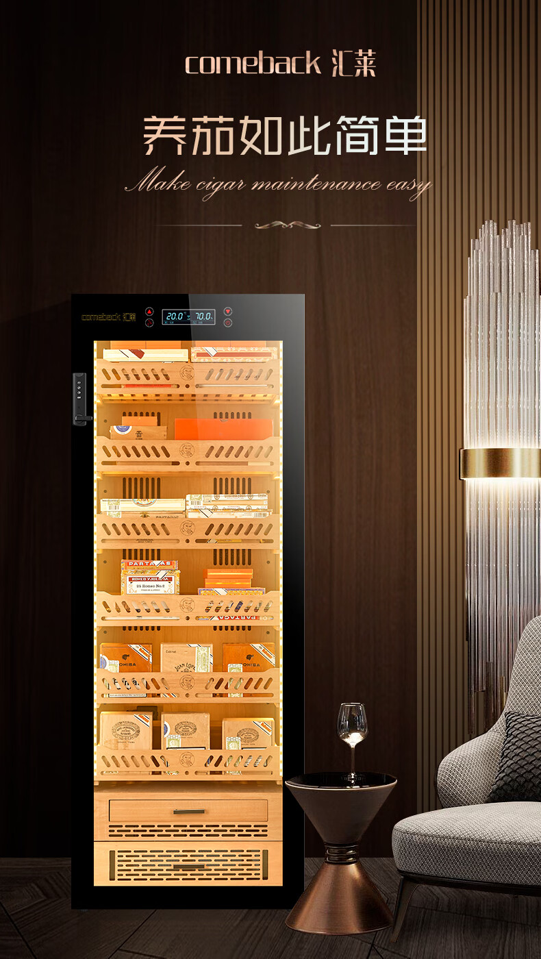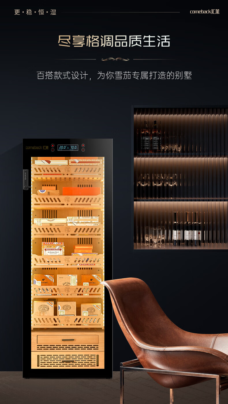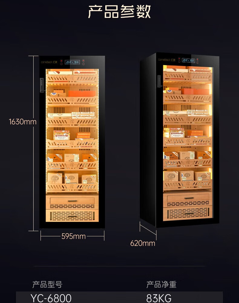 Huilai COMEBACK YC-6800 compressor cigar cabinet constant temperature and humidity household cedar wood cigar humidifier YC-6800 classic black