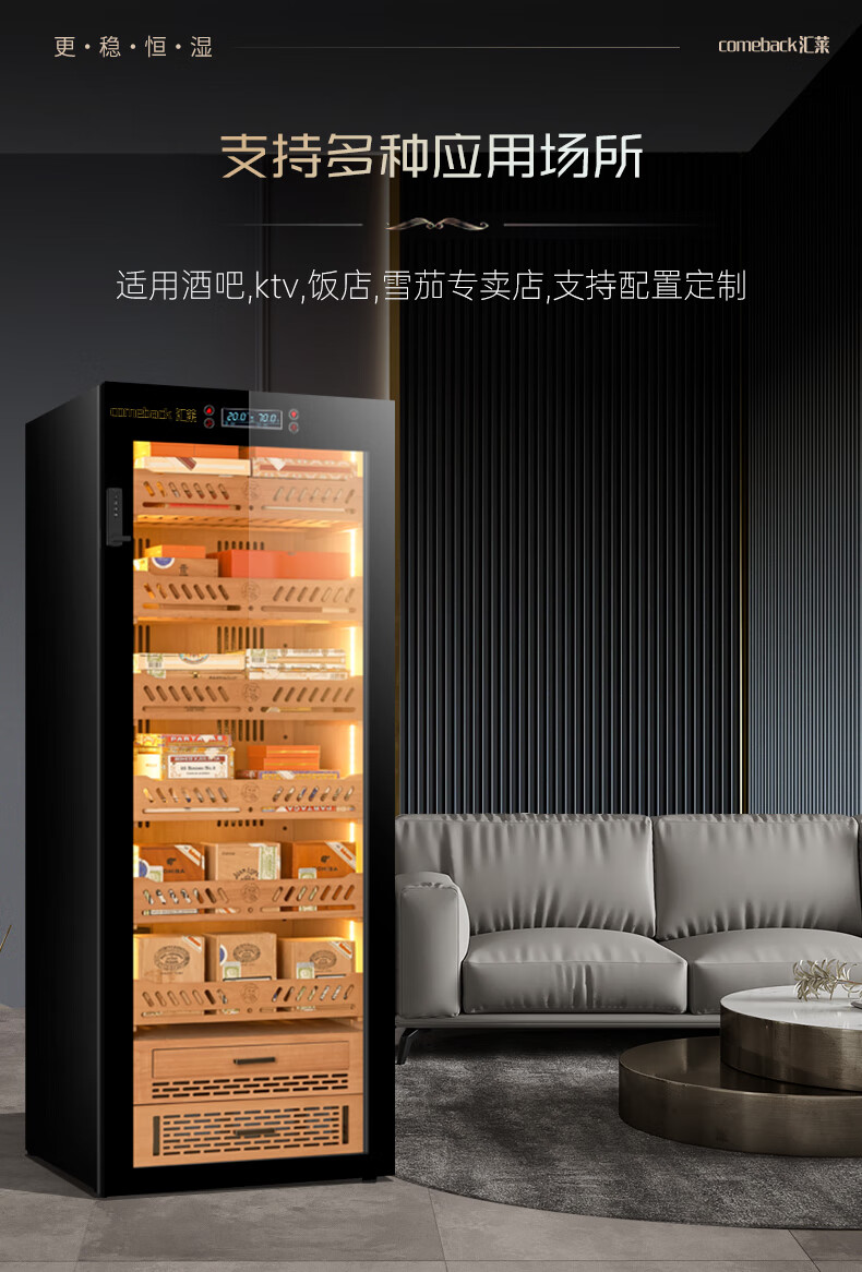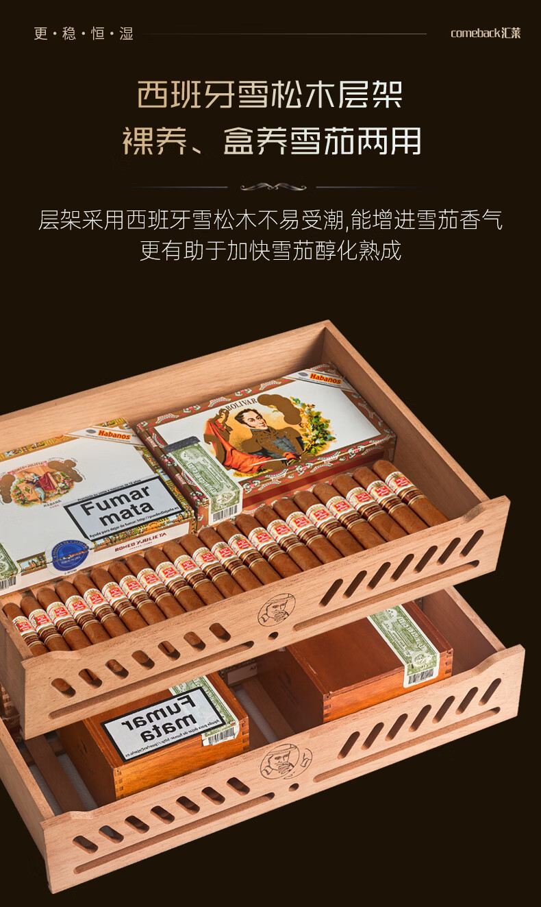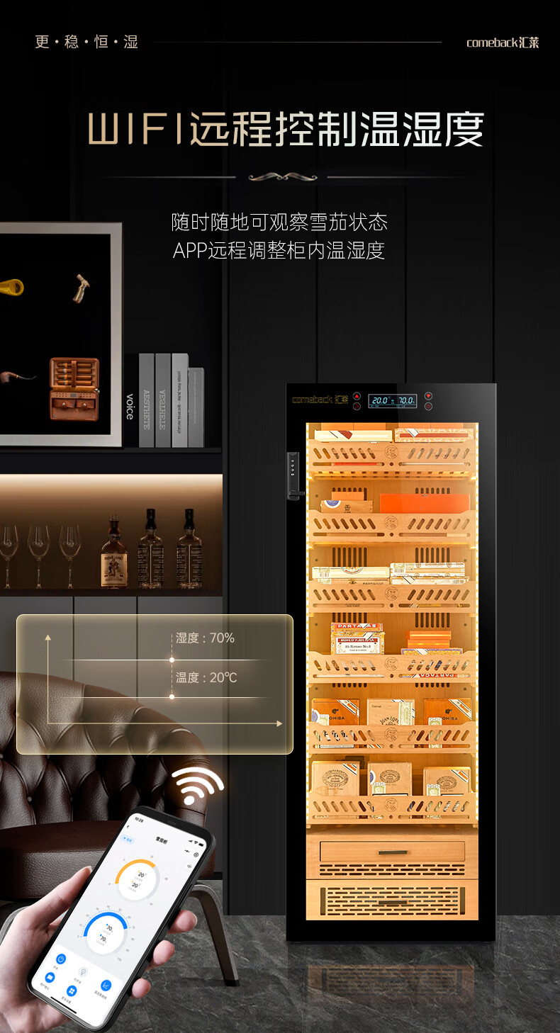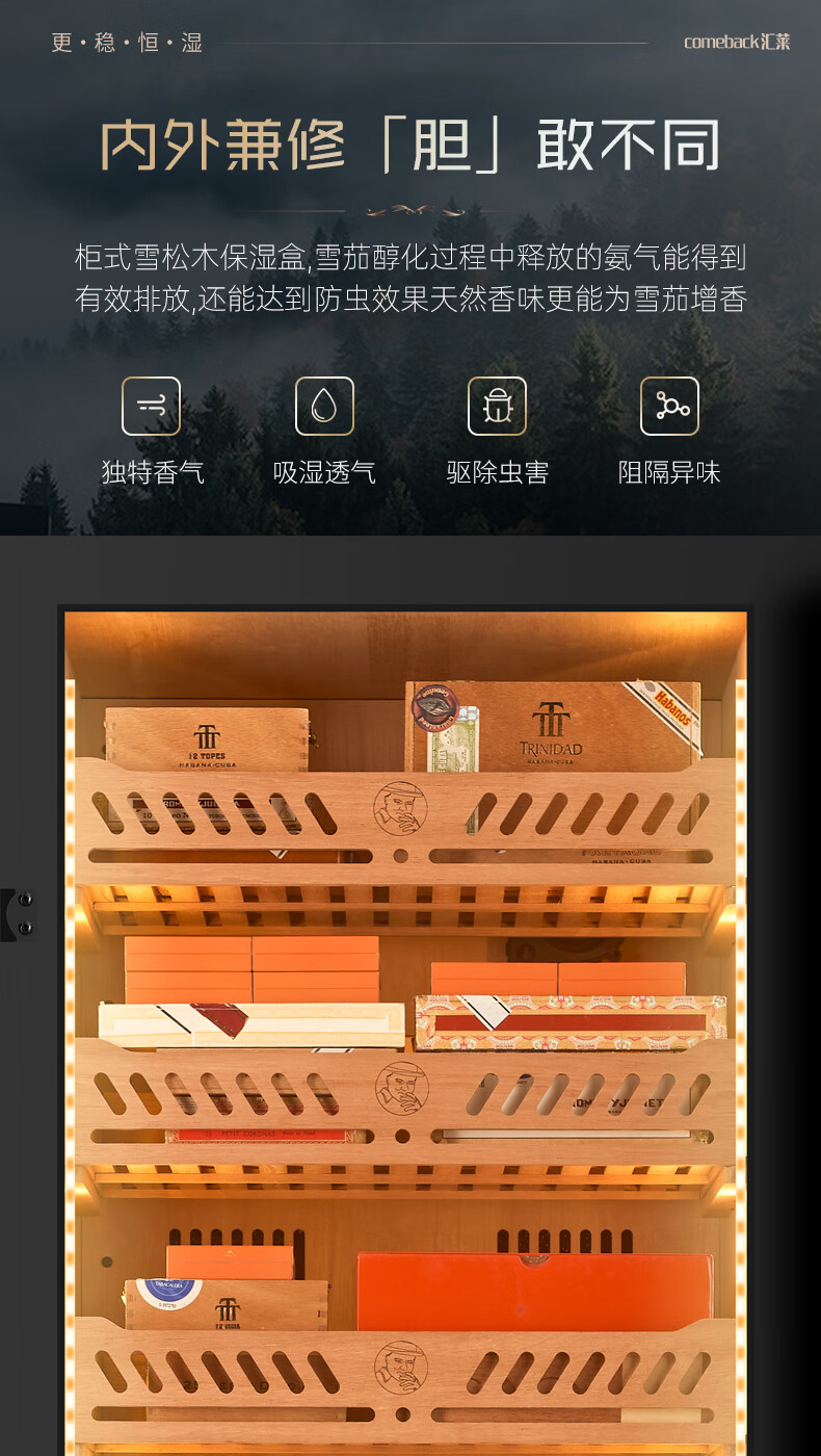 Huilai COMEBACK YC-6800 compressor cigar cabinet constant temperature and humidity household cedar wood cigar humidifier YC-6800 classic black