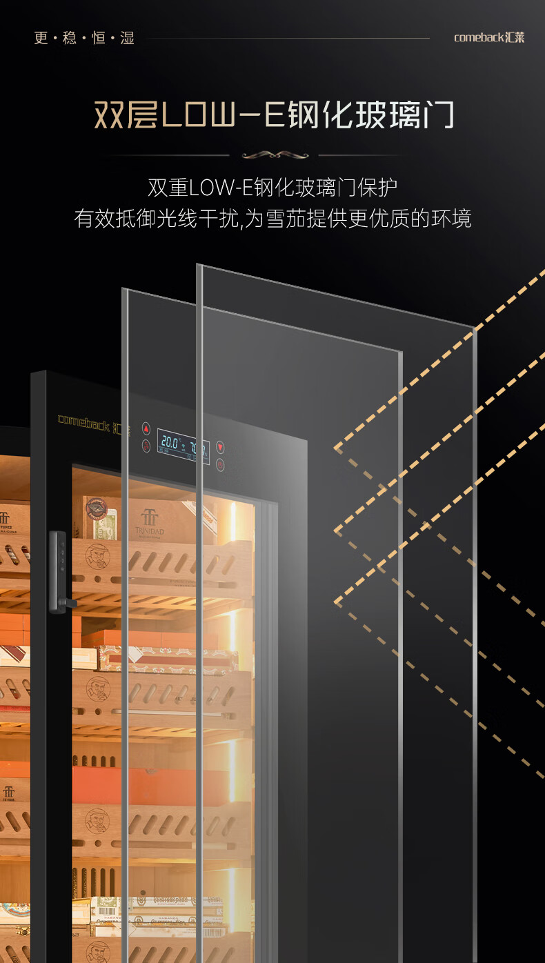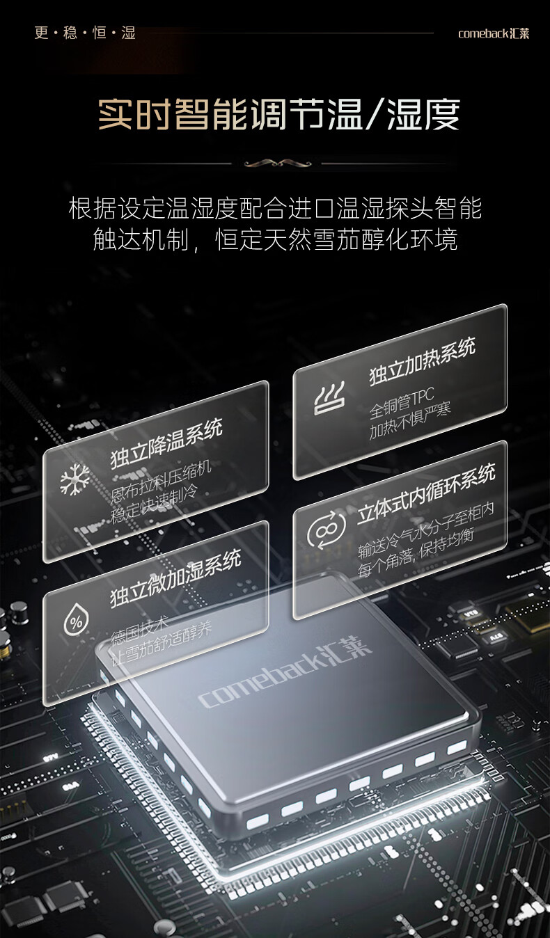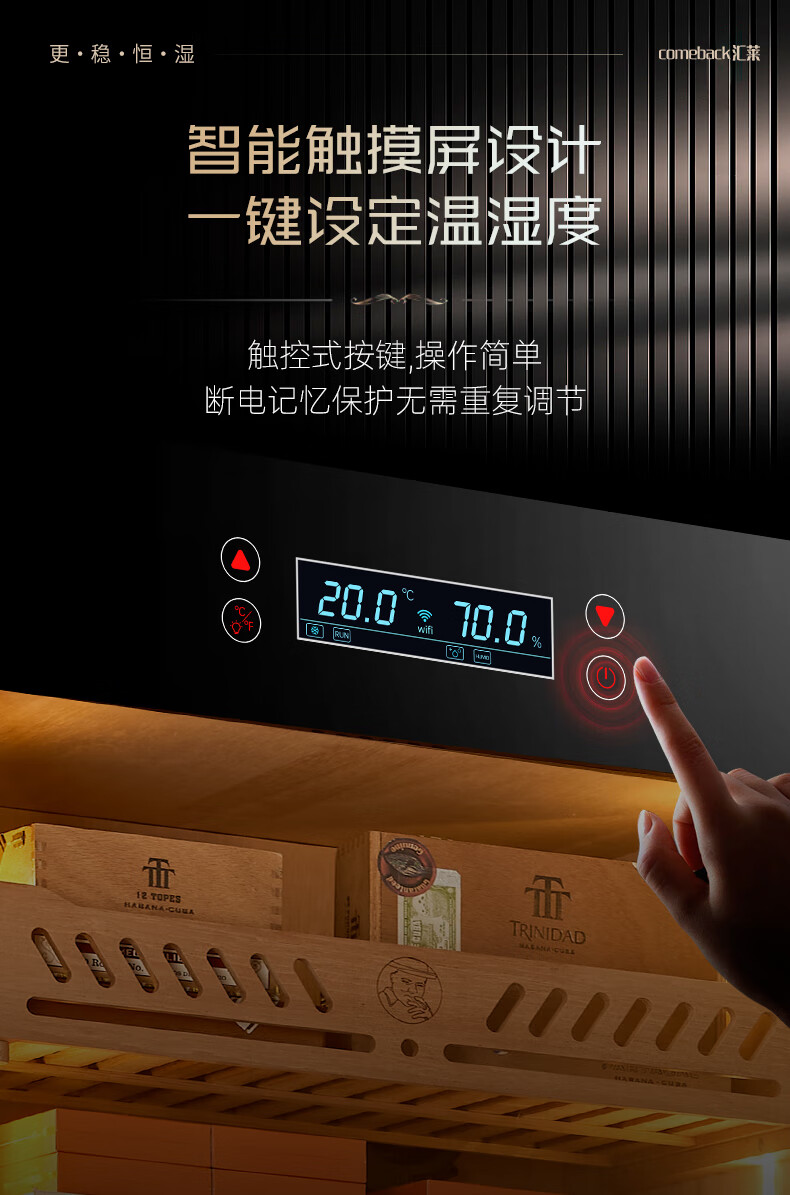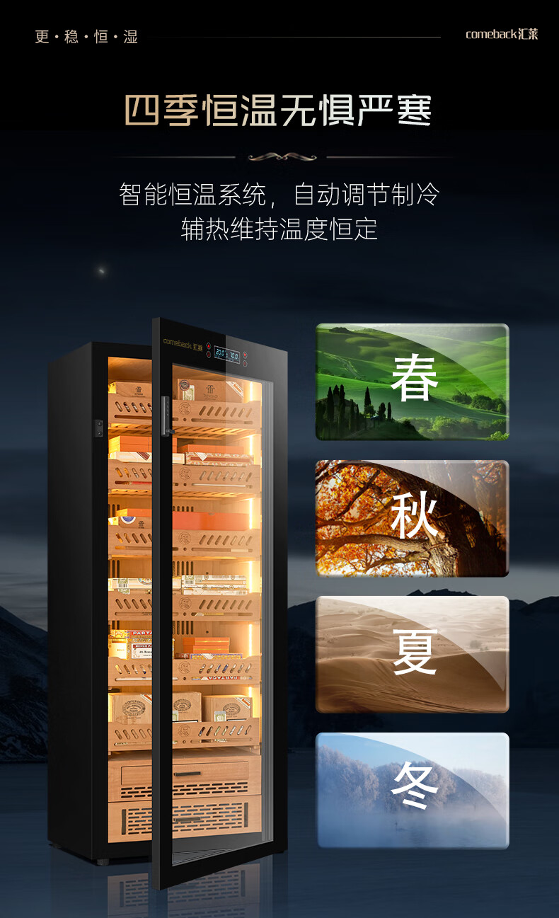 Huilai COMEBACK YC-6800 compressor cigar cabinet constant temperature and humidity household cedar wood cigar humidifier YC-6800 classic black