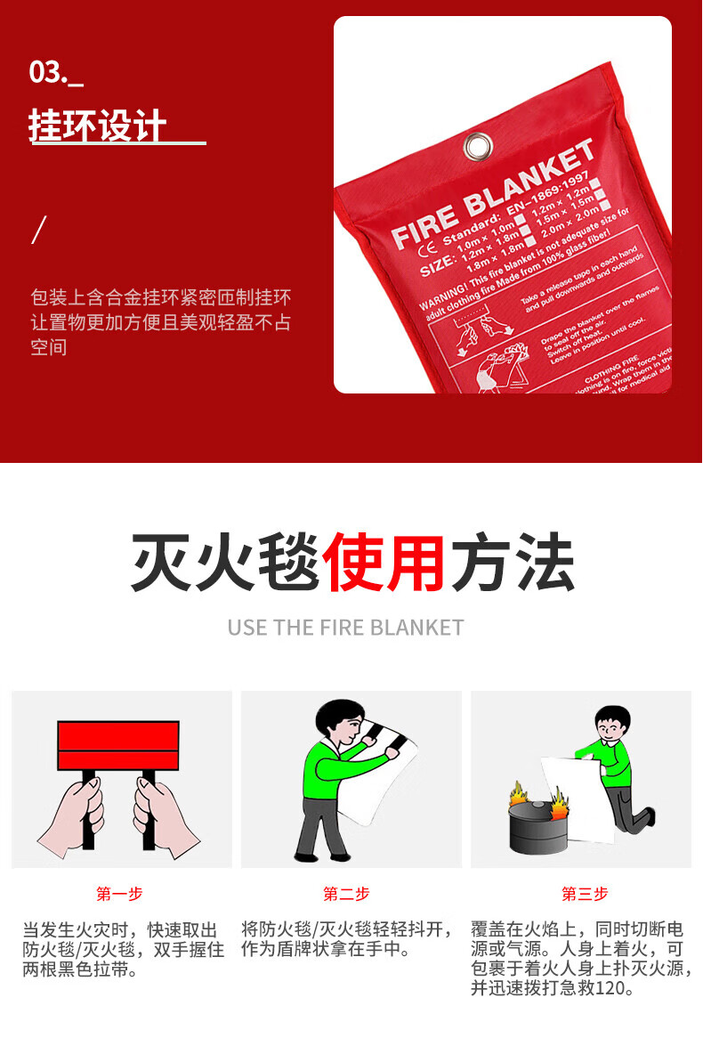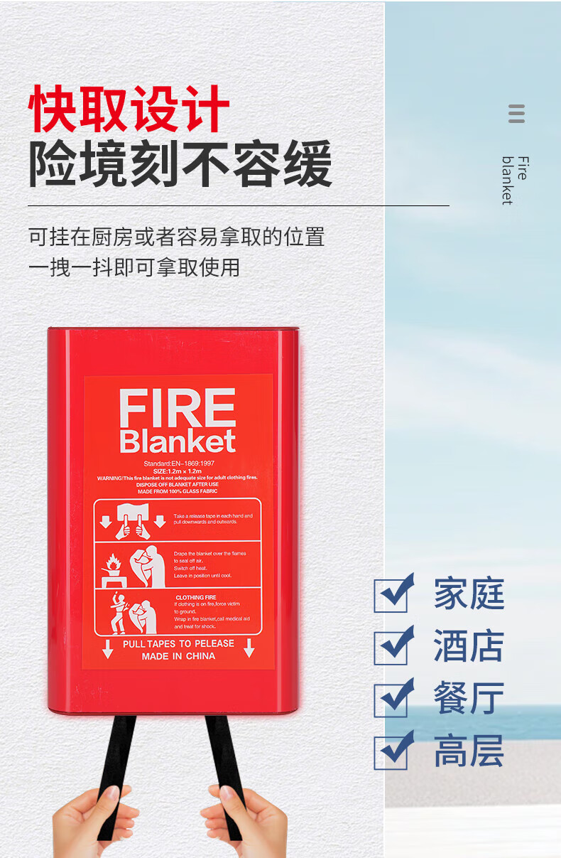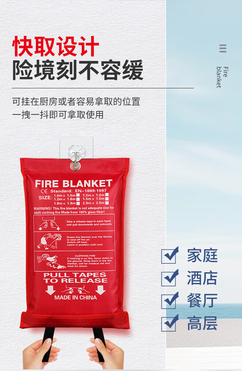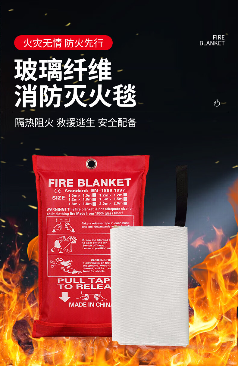Zheye Fire Blanket Fiberglass Flame Retardant Fire Blanket Fire Escape Emergency Insulation Fire Blanket Warehouse Hotel Kitchen Lifesaving Blanket Fire Blanket 1.2m*1.8m Bag