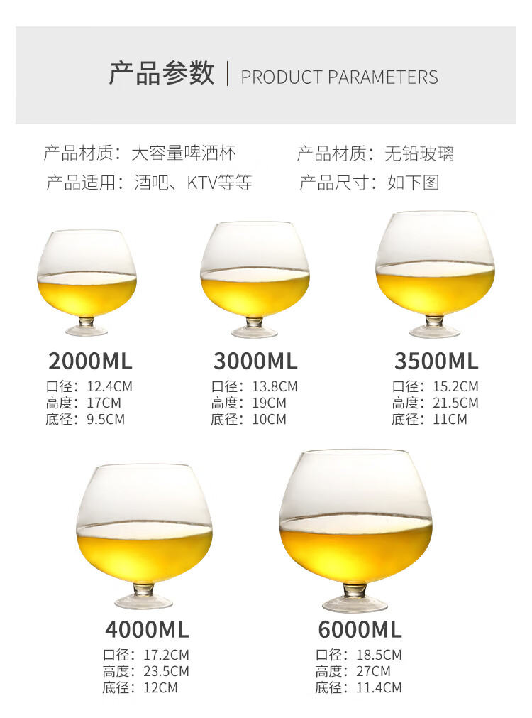 Yusenyi huge oversized beer mug internet celebrity large capacity draft beer mug wine glass goblet large red wine glass 2000ml