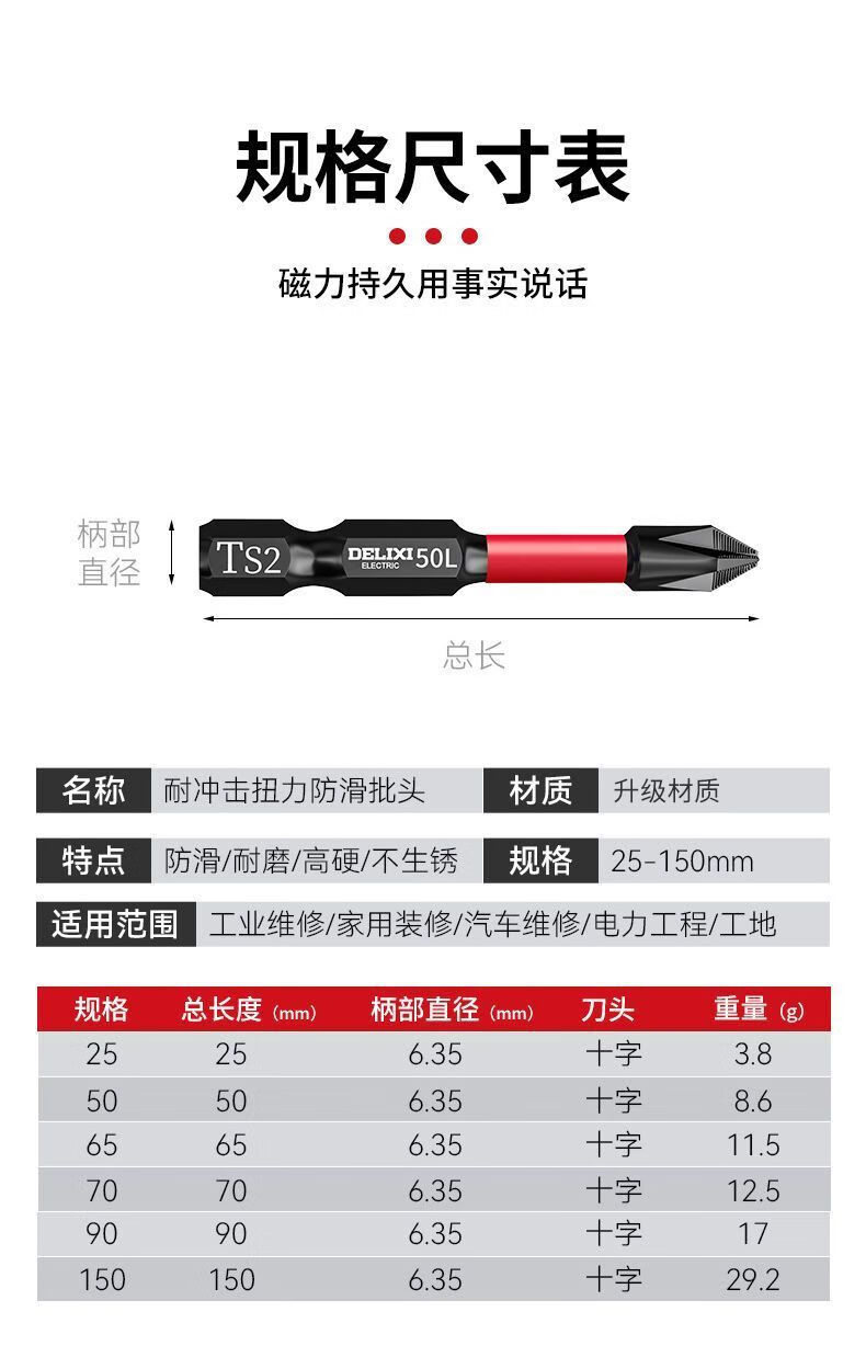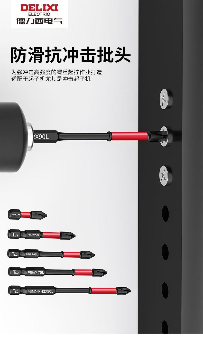 Delixi Electric Impact Cross Bit Strong Magnetic Anti-Slip Hand Electric Drill Tungsten Steel Hard Wear-Resistant Electric Screwdriver Set Electric Bit Bit 25-90mm 5-piece Set