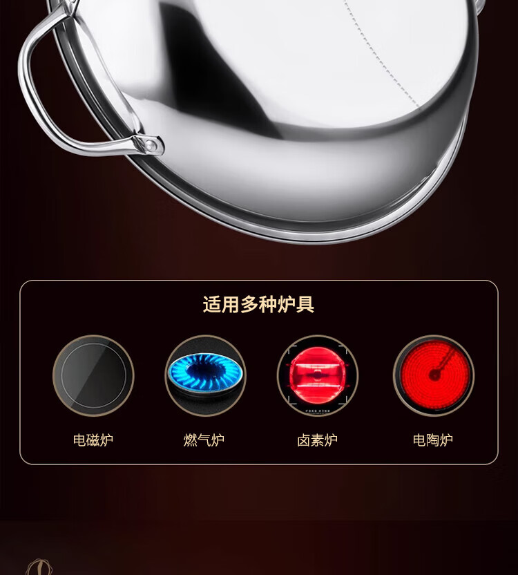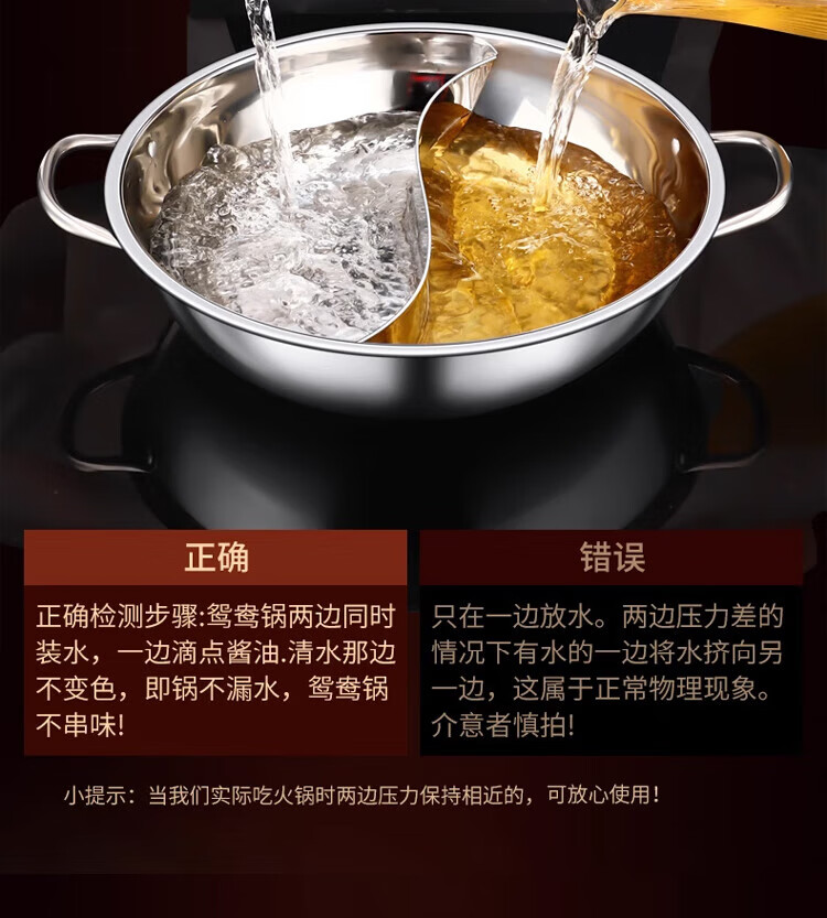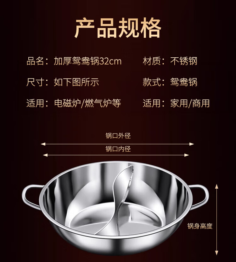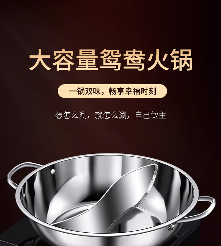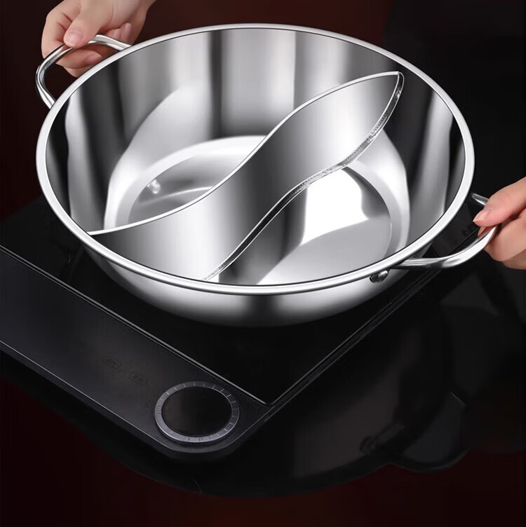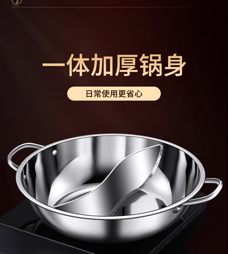 Miaoyijia Yuanyang Hot Pot Special Hot Pot for Induction Cooker Yuanyang Hot Pot Basin Double-Ear Stainless Steel Hot Pot Pot Large Capacity Soup + Colander 5-7 People Thickened Yuanyang Hot Pot 32cm