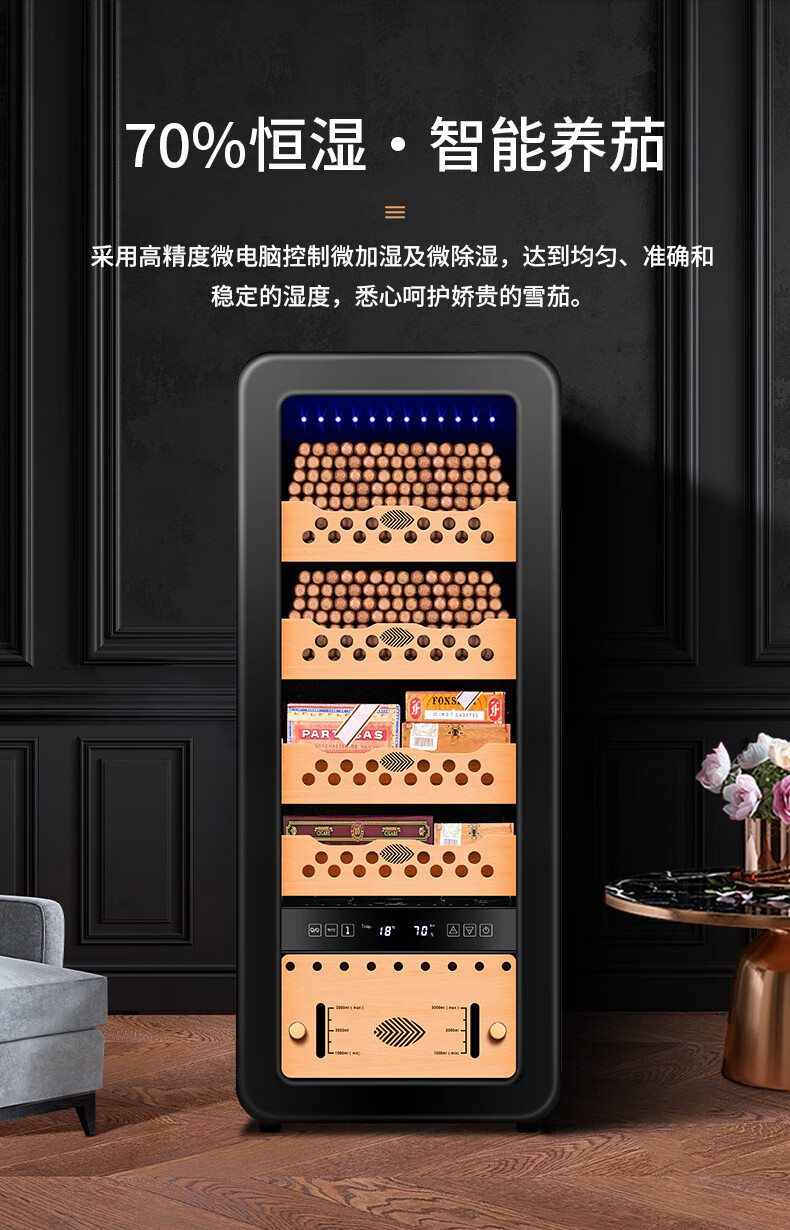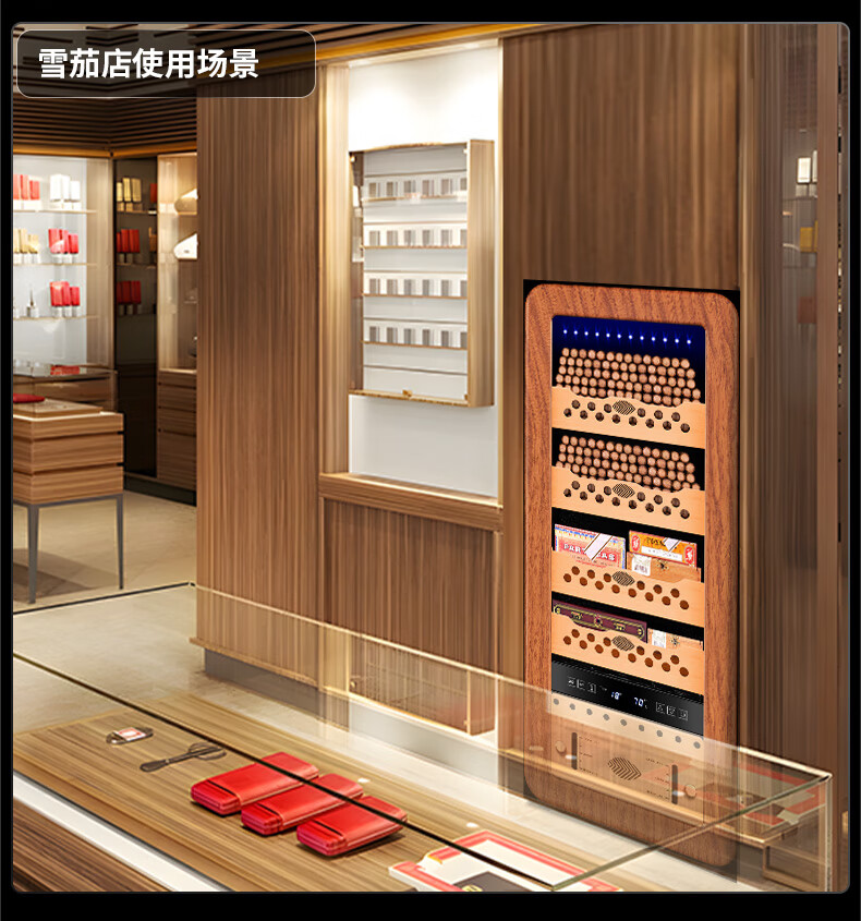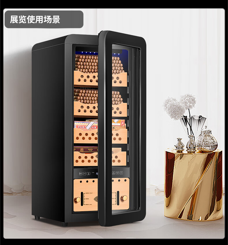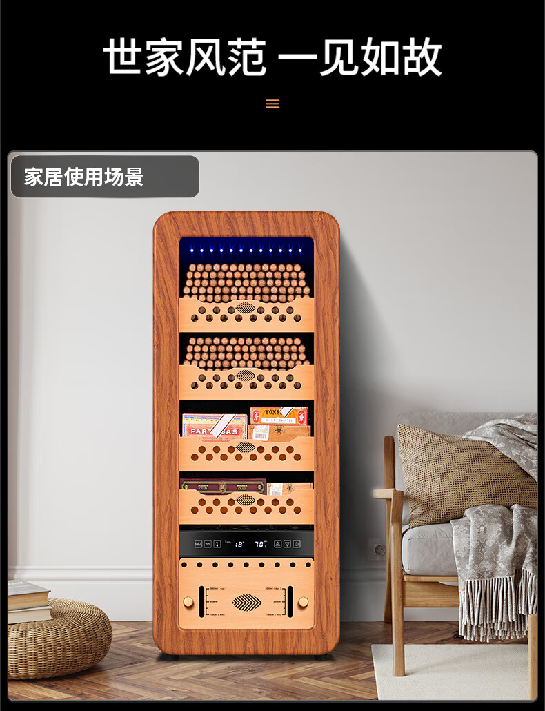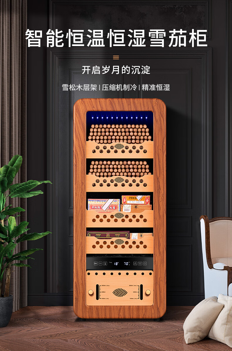 Qielong 58HC cigar cabinet intelligent constant temperature and humidity cigar cabinet air-cooled frost-free compressor cabinet fashionable curved household energy-saving silent cedar wood shelf cigar cabinet 78HC rosewood grain cedar wood shelf + curved + constant temperature and humidity