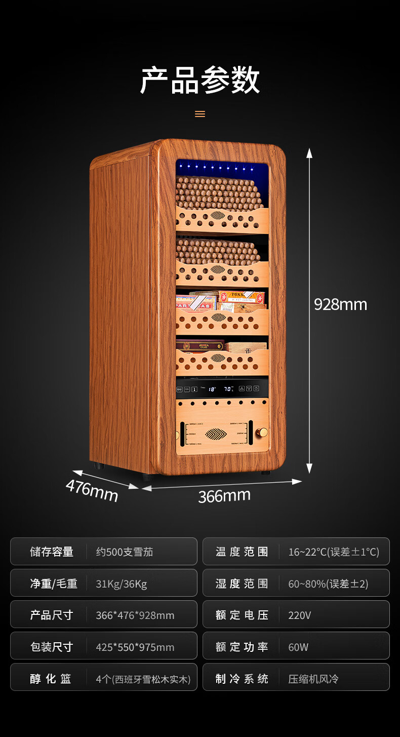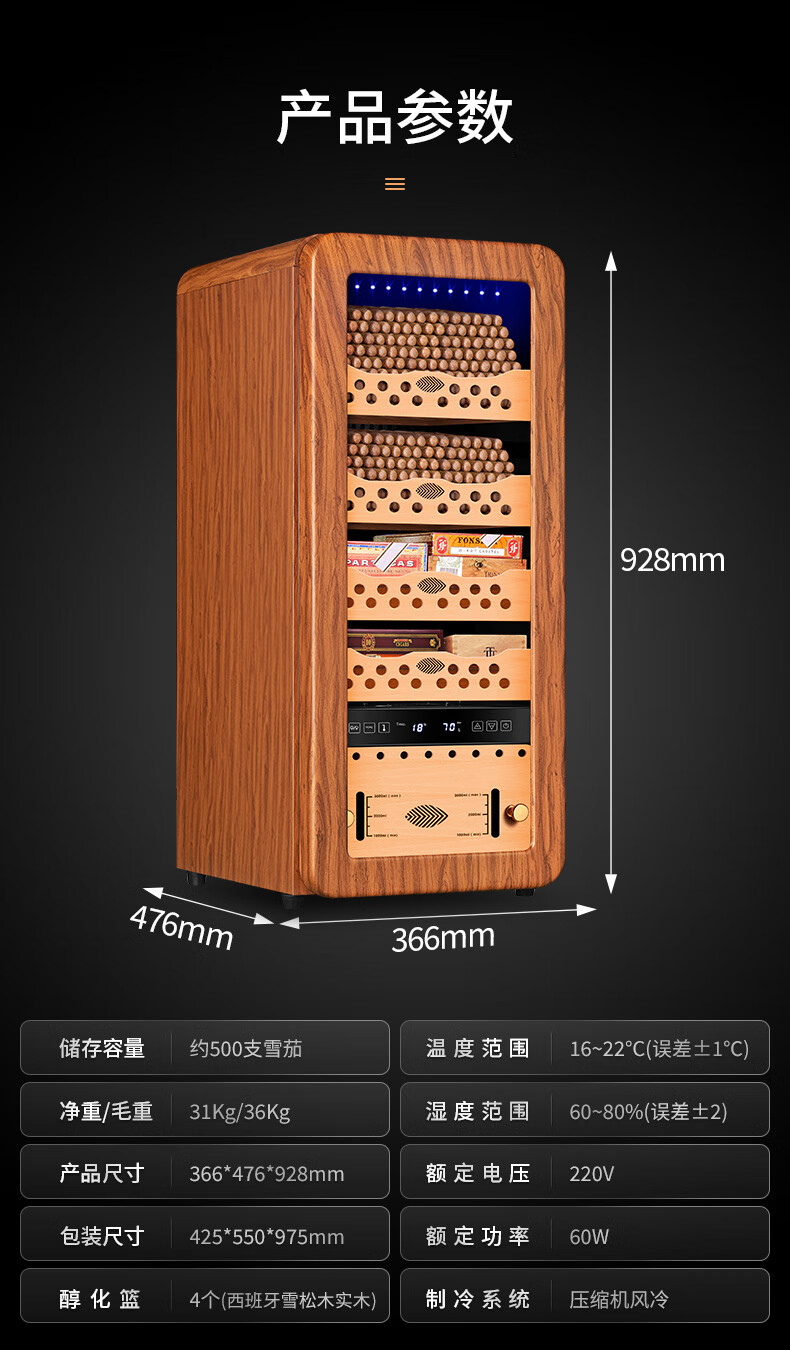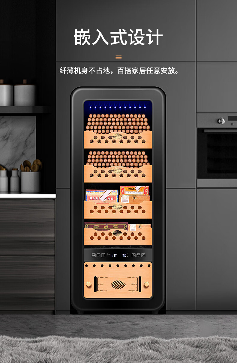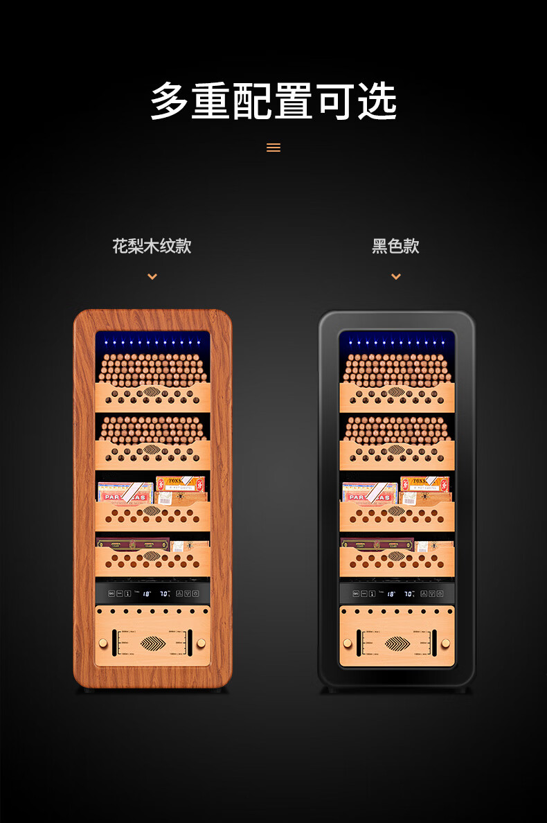 Qielong 58HC cigar cabinet intelligent constant temperature and humidity cigar cabinet air-cooled frost-free compressor cabinet fashionable curved household energy-saving silent cedar wood shelf cigar cabinet 78HC rosewood grain cedar wood shelf + curved + constant temperature and humidity