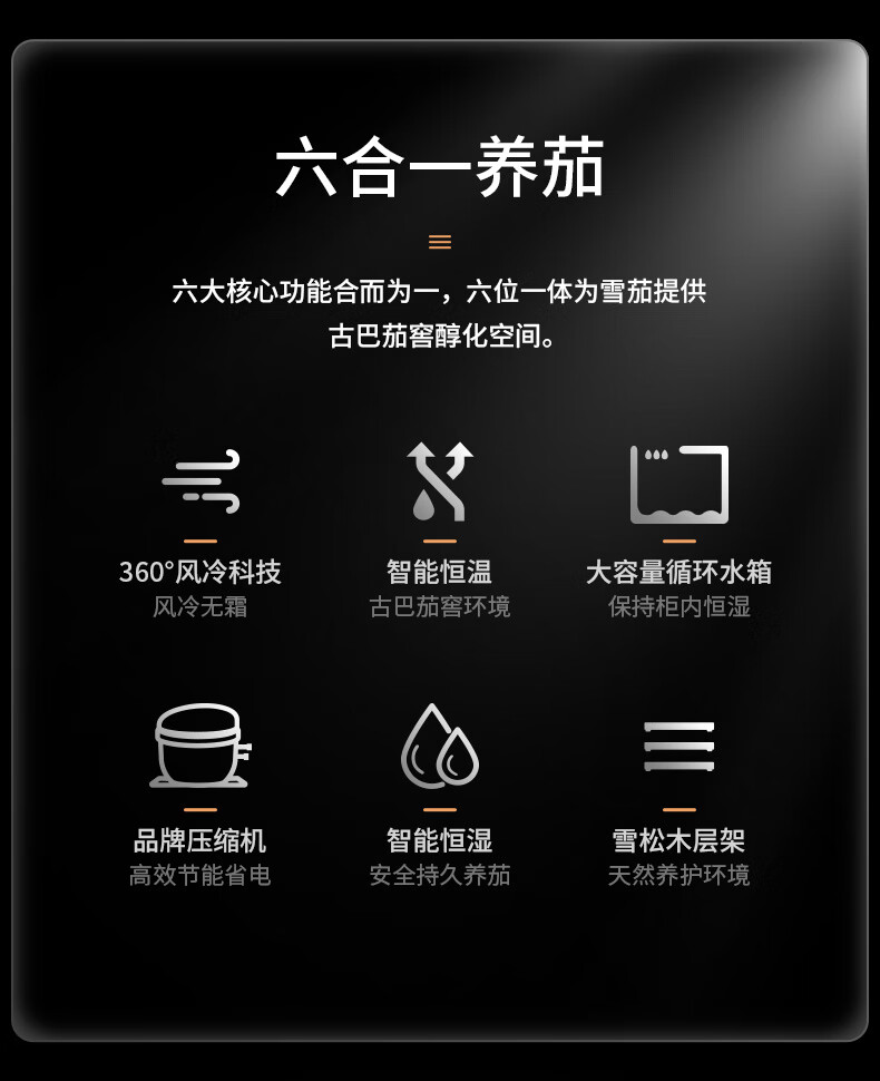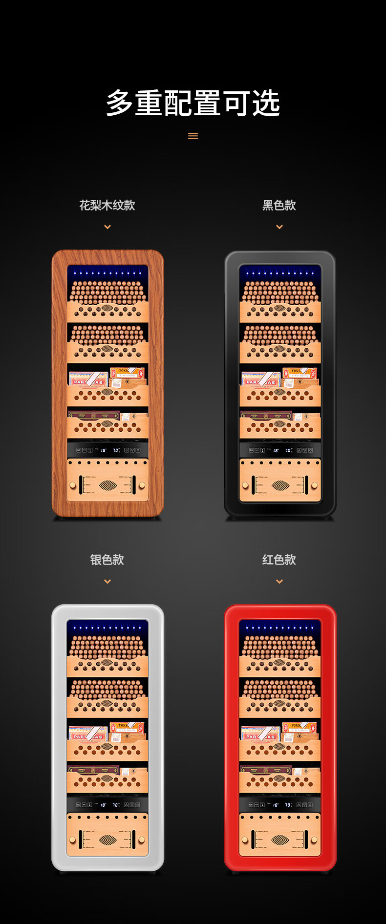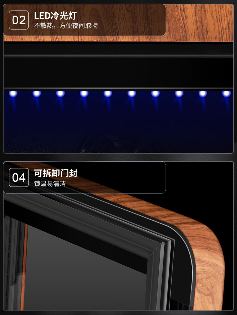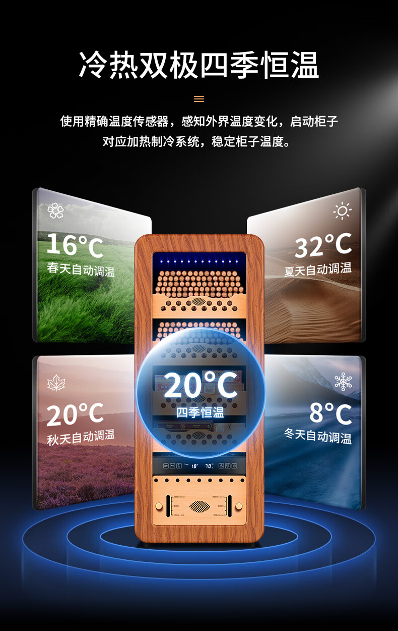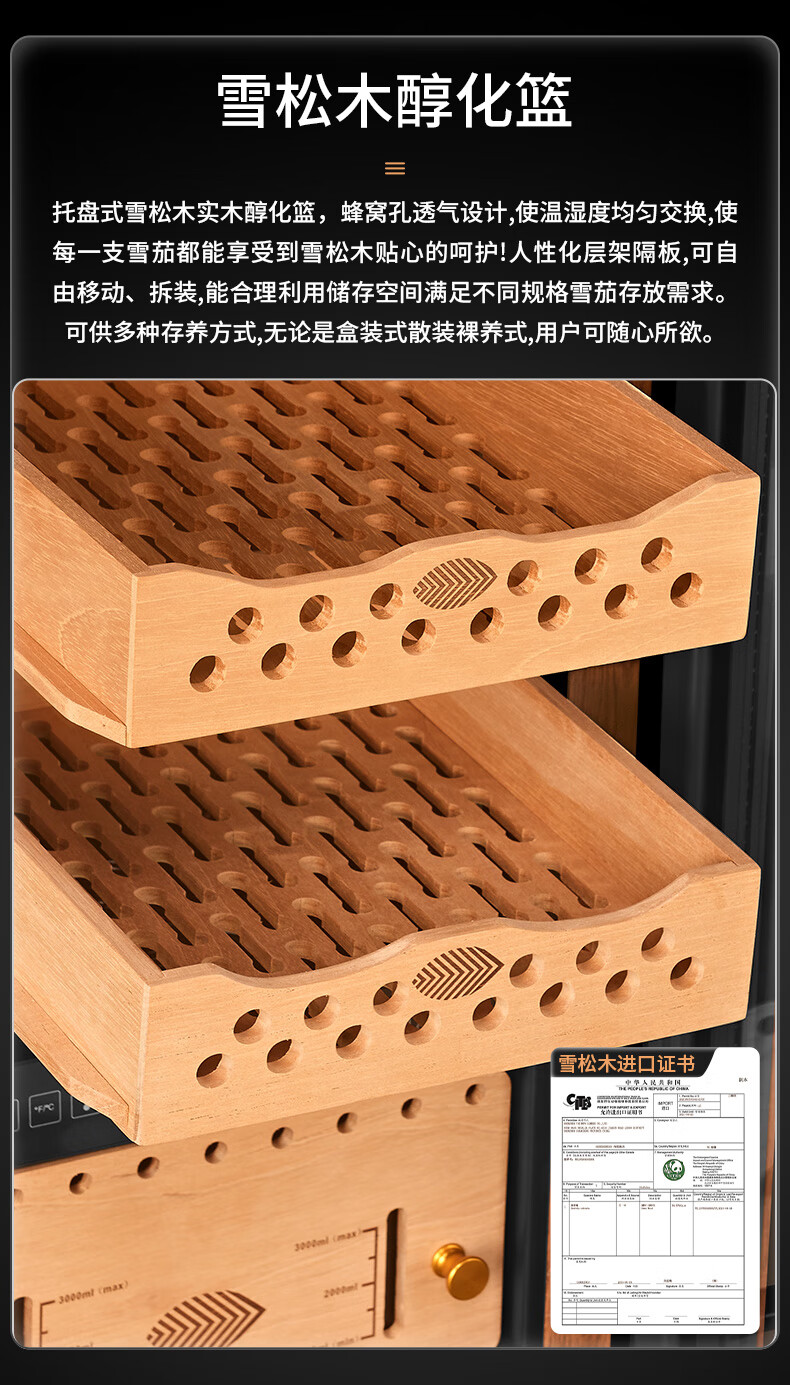 Qielong 58HC cigar cabinet intelligent constant temperature and humidity cigar cabinet air-cooled frost-free compressor cabinet fashionable curved household energy-saving silent cedar wood shelf cigar cabinet 78HC rosewood grain cedar wood shelf + curved + constant temperature and humidity