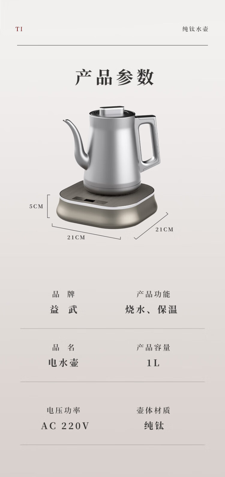 Yiwu pure titanium electric kettle automatic tea kettle titanium alloy electric tea stove electric kettle household kettle 1L pure titanium electric kettle-J13TA square base 1L 1L