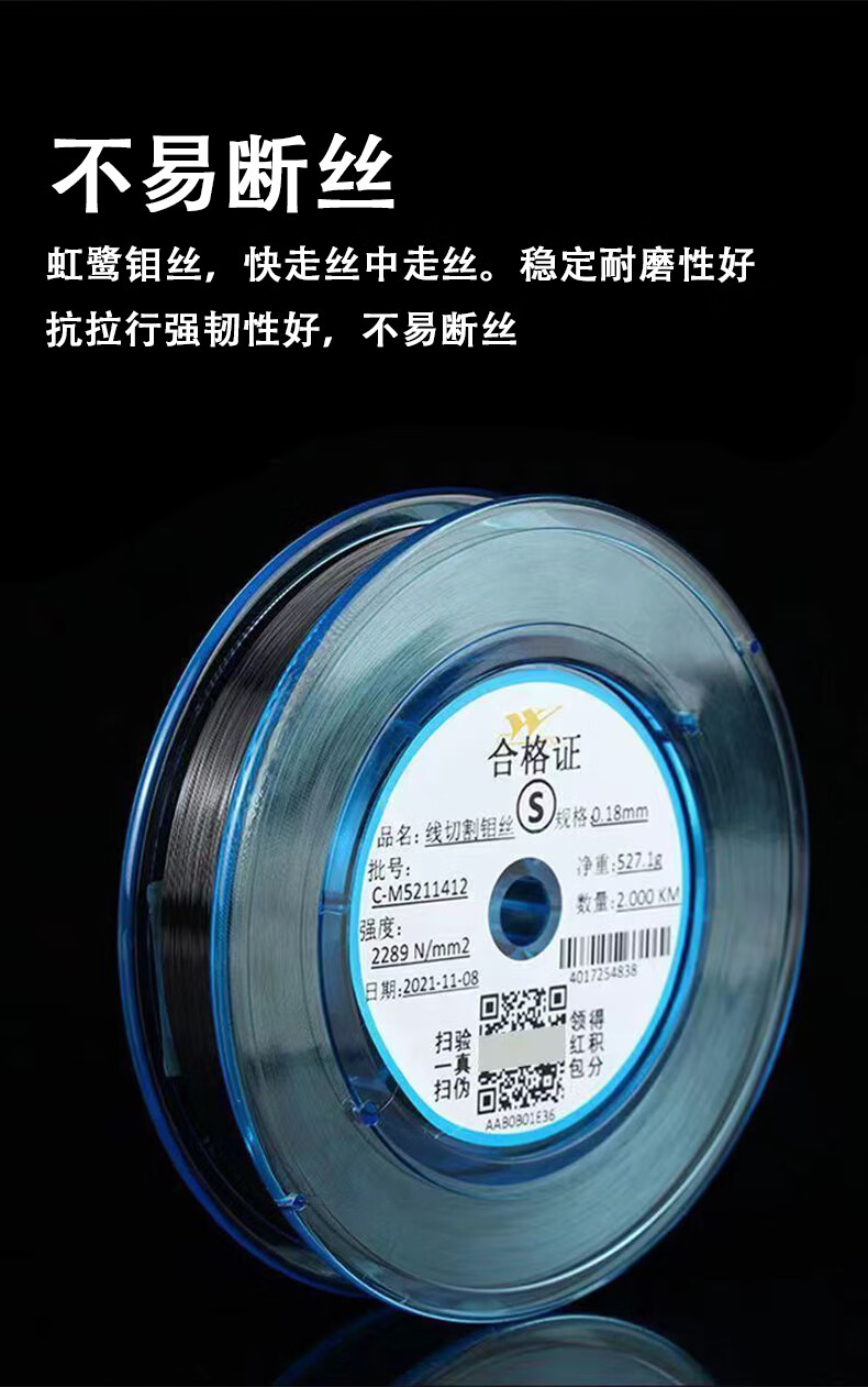 Honglu Molybdenum Wire S Type T5T8-0.18m/2000m High Efficiency Wire Cutting Resistance High Temperature Tension Resistance Wear Resistance Invoicable S Type 0.18mm2000m