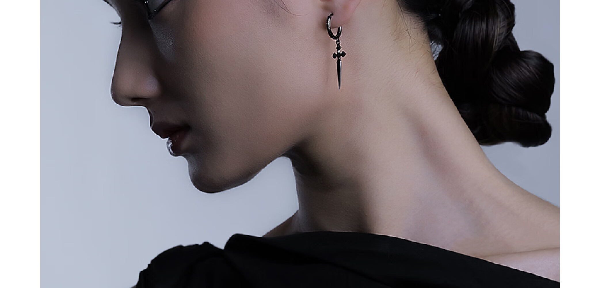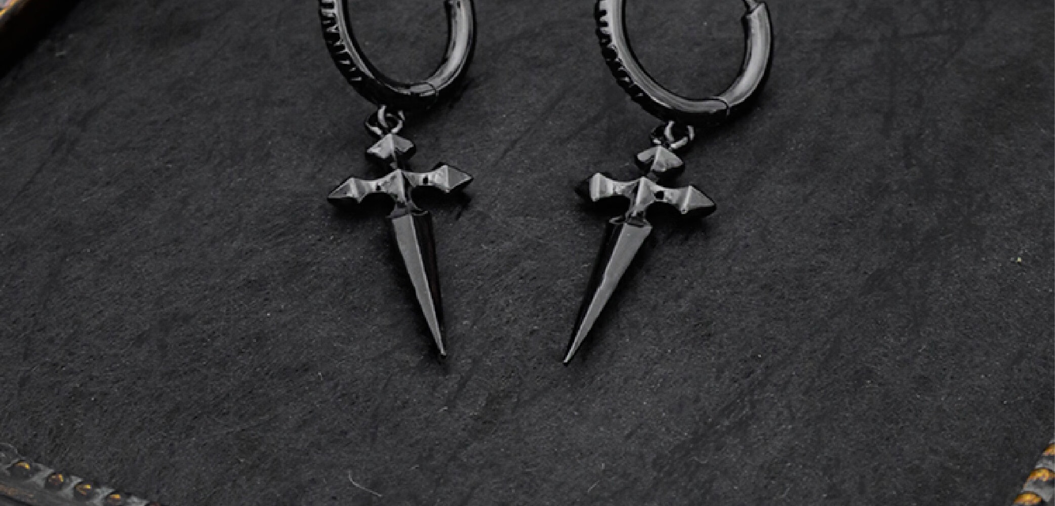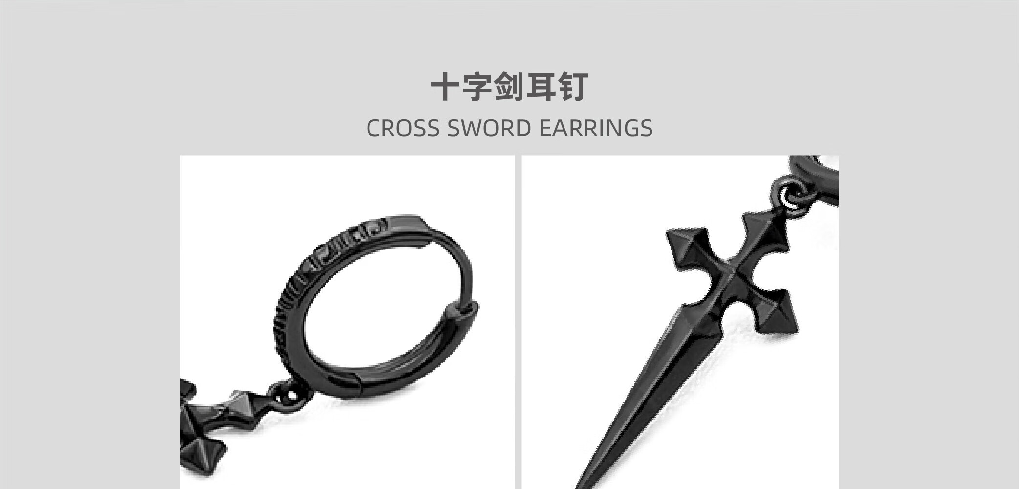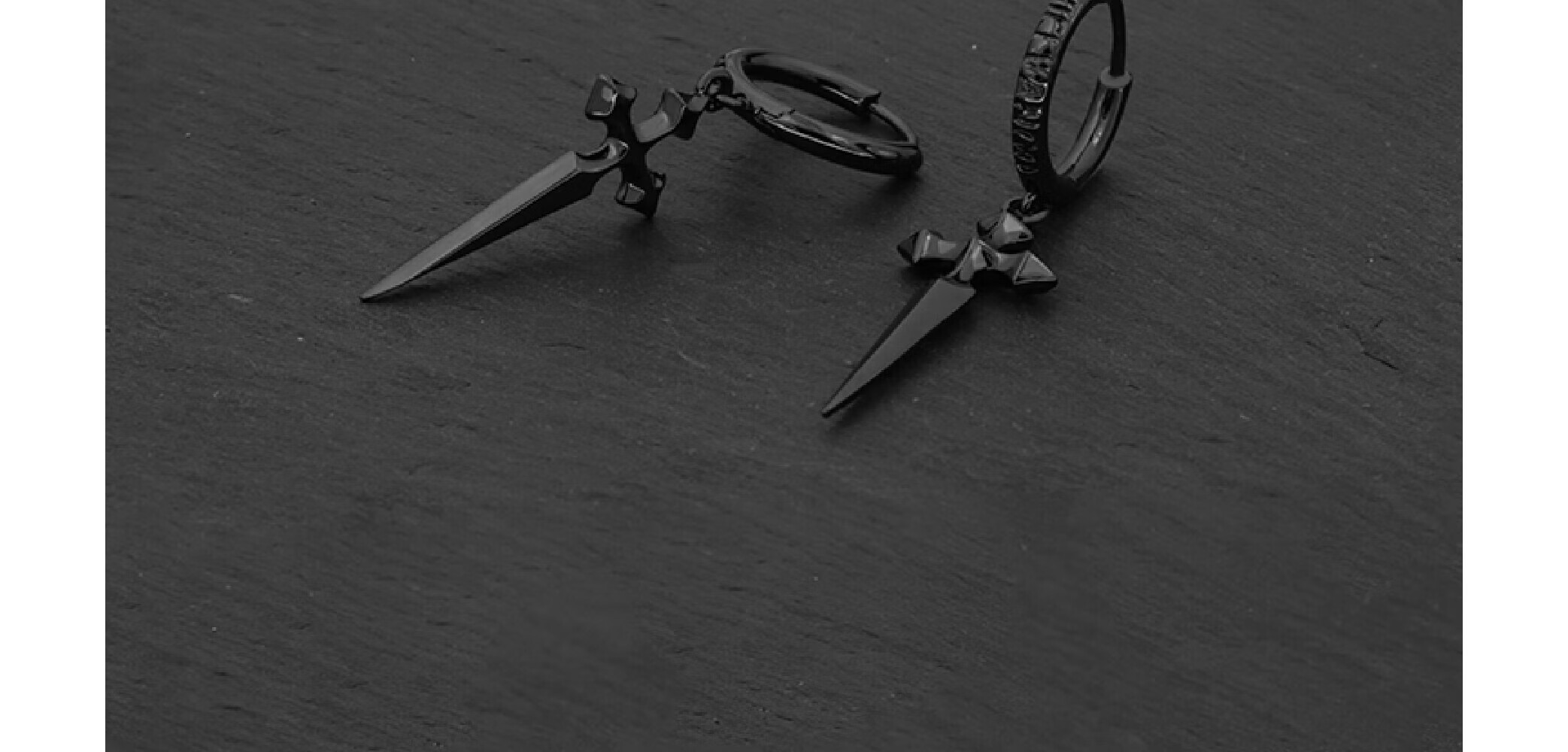 CHICI VANGO Black Gold Cross Sword Earrings Gothic Dark Style Trendy Personality Cross Earrings for Men and Women Single