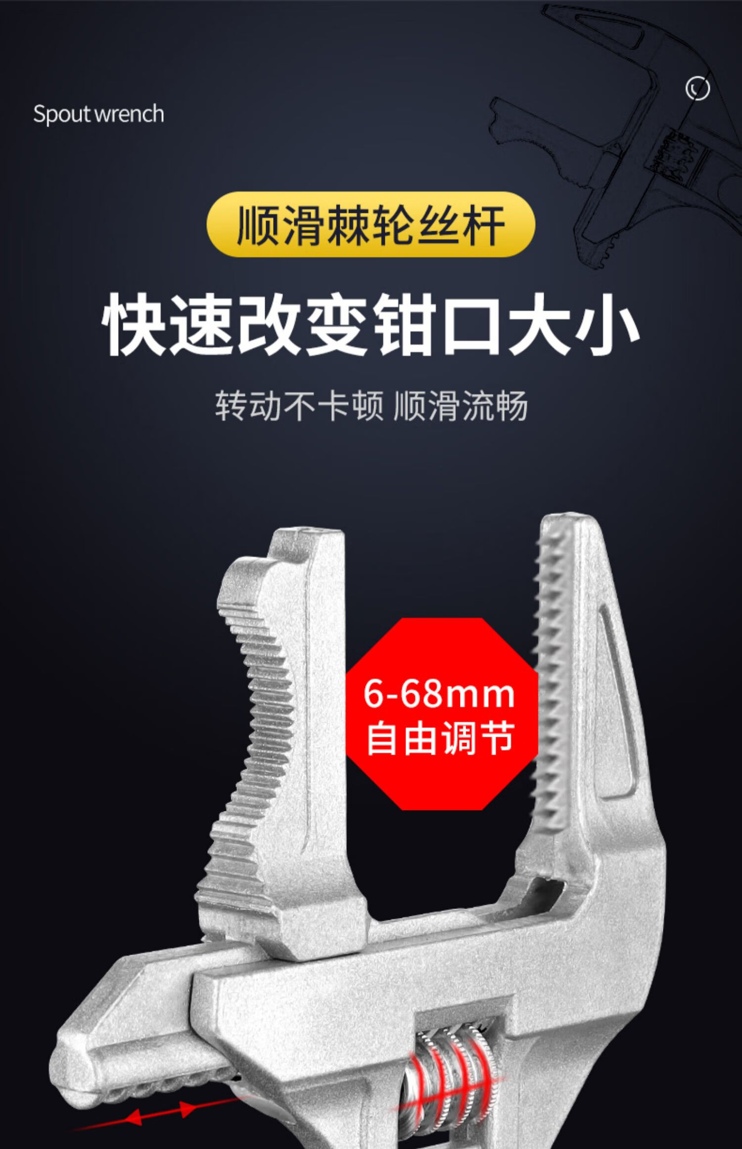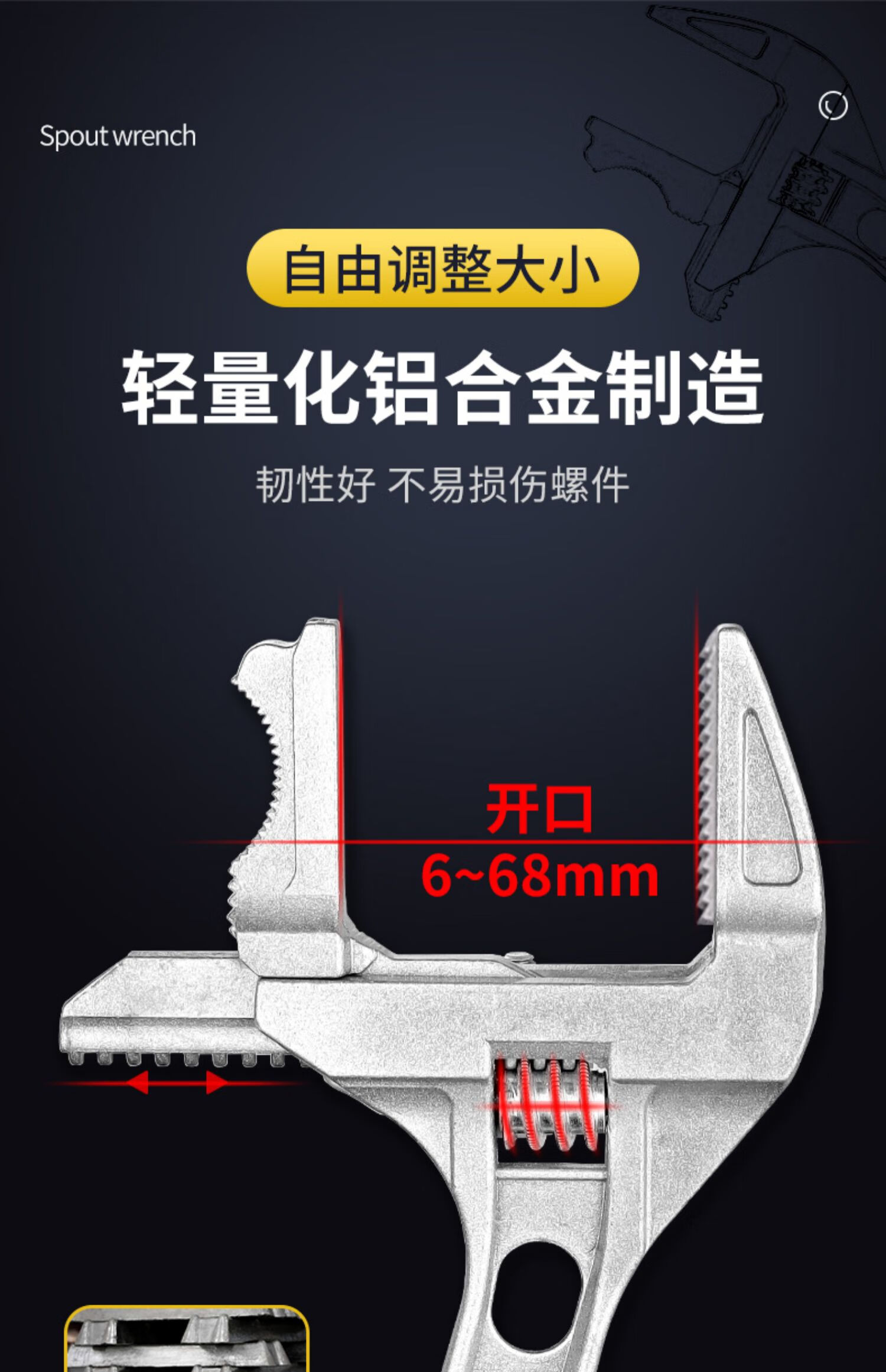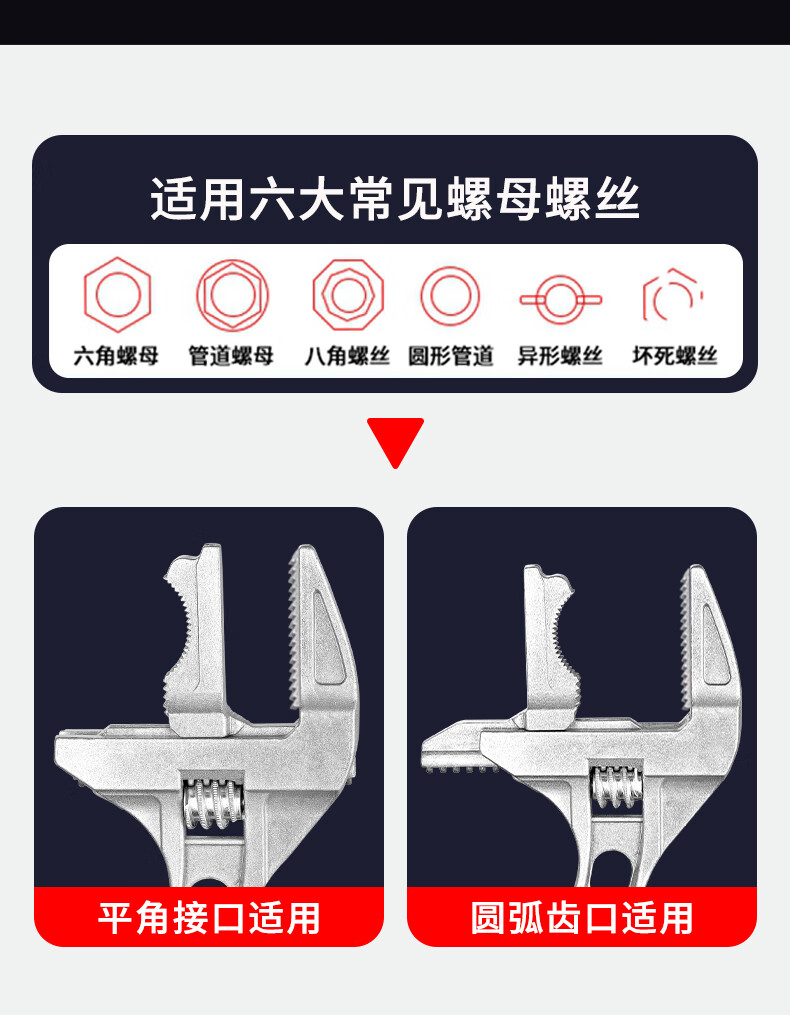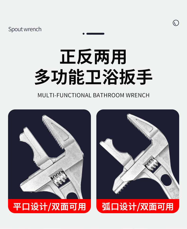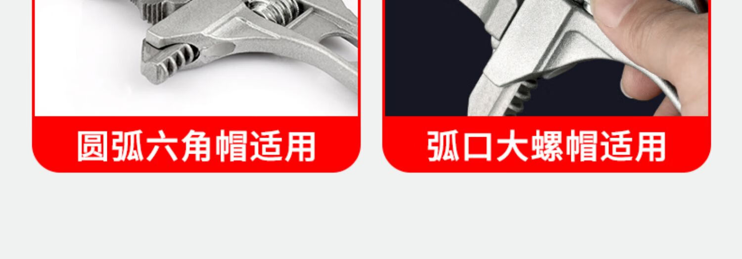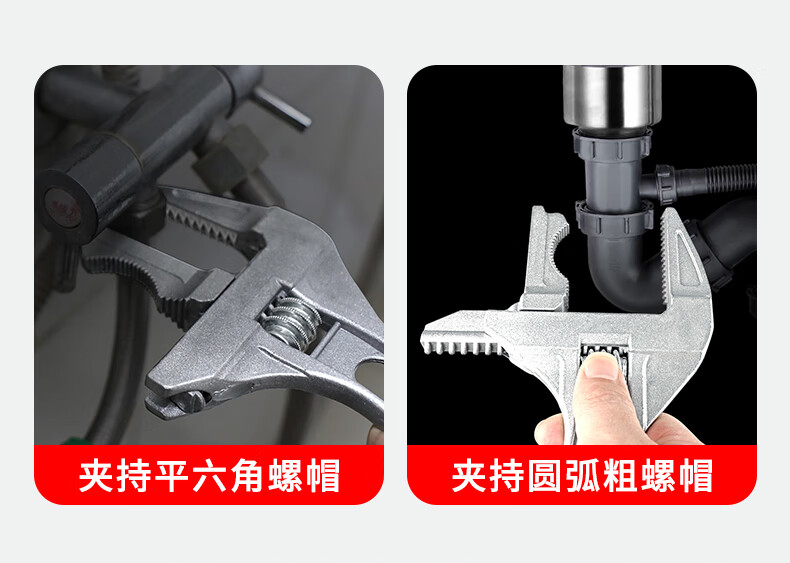 Bathroom wrench tool multifunctional short handle movable large opening repair wrench sewer pipe live mouth pipe pliers reversible / double-sided teeth are more anti-slip