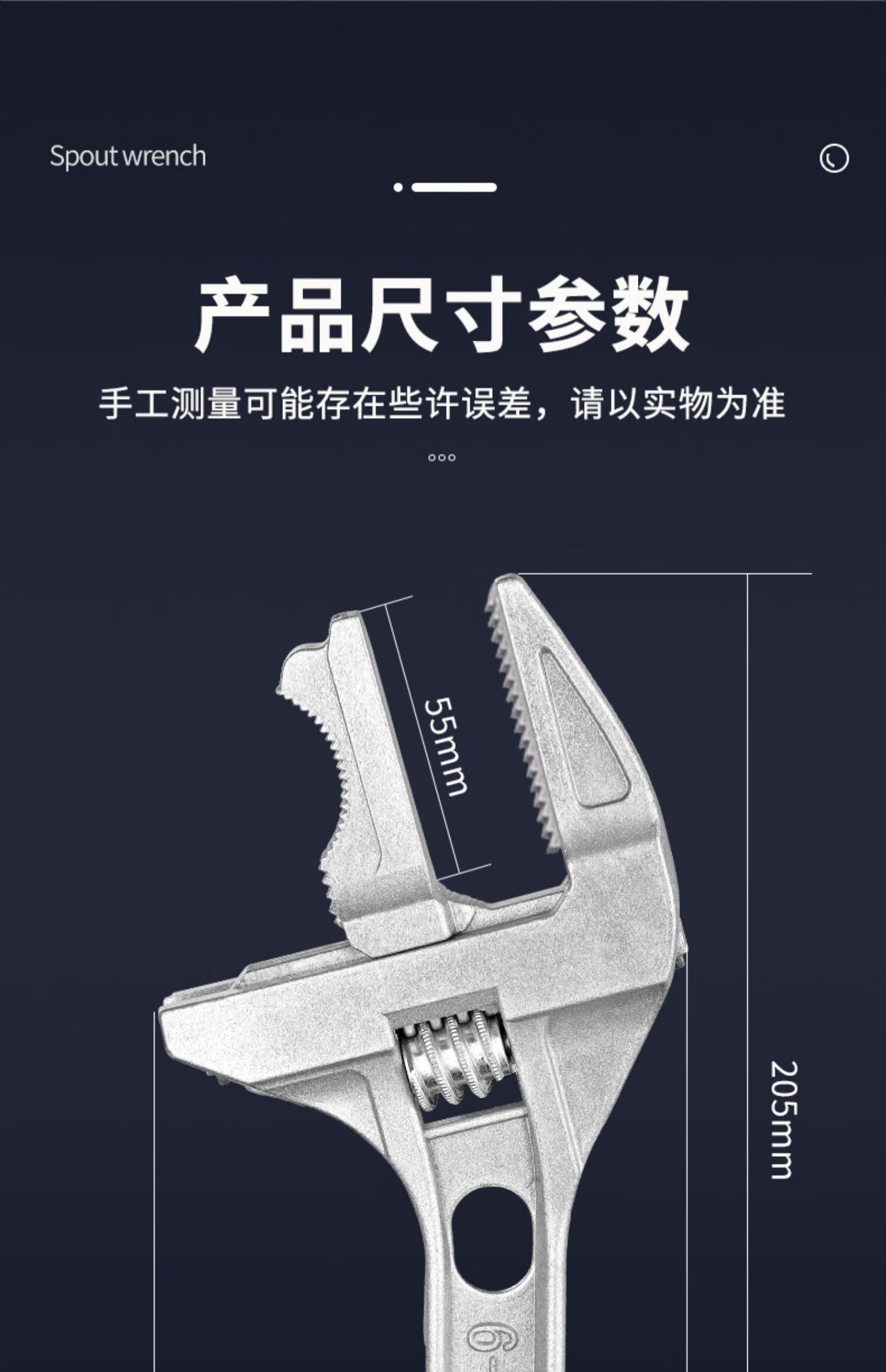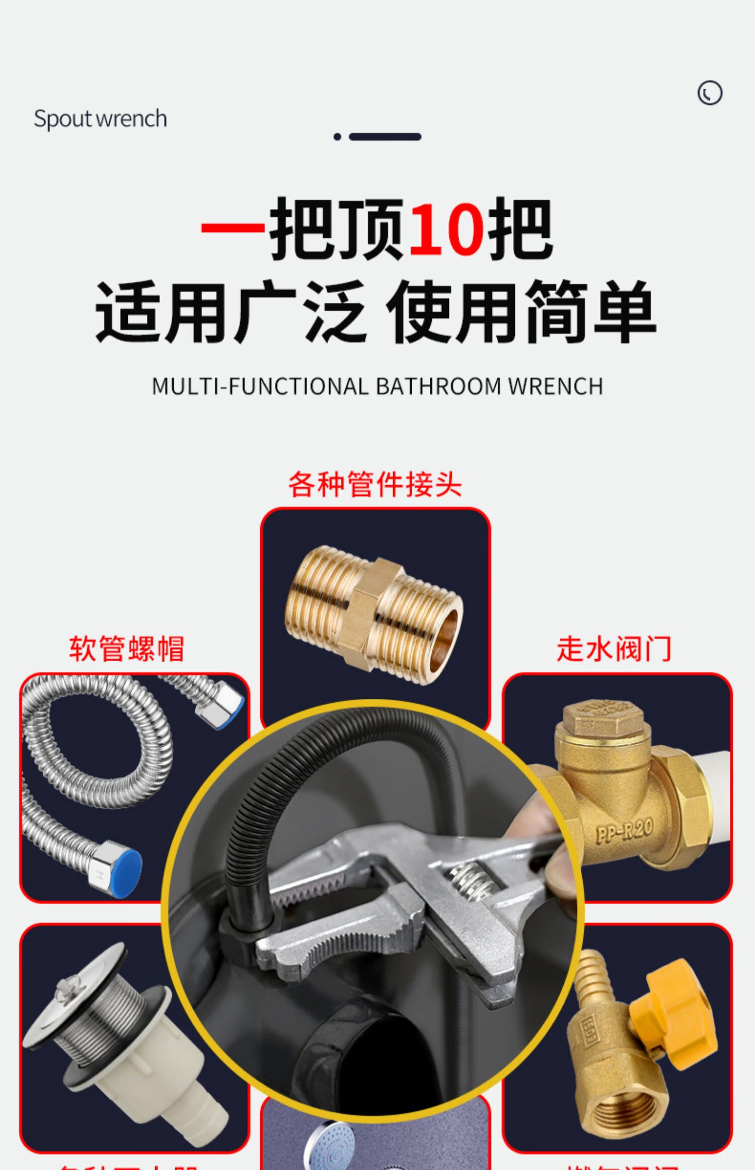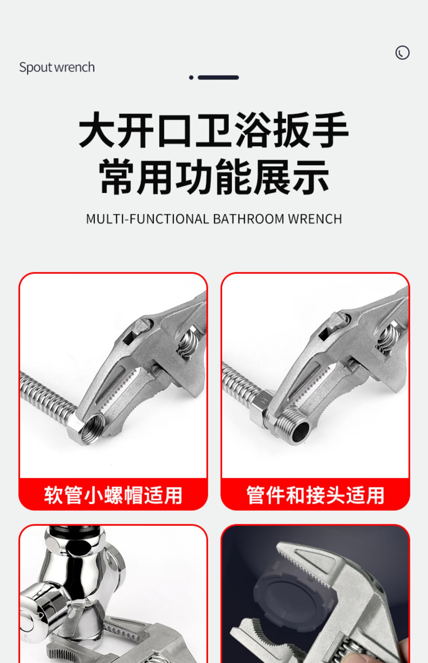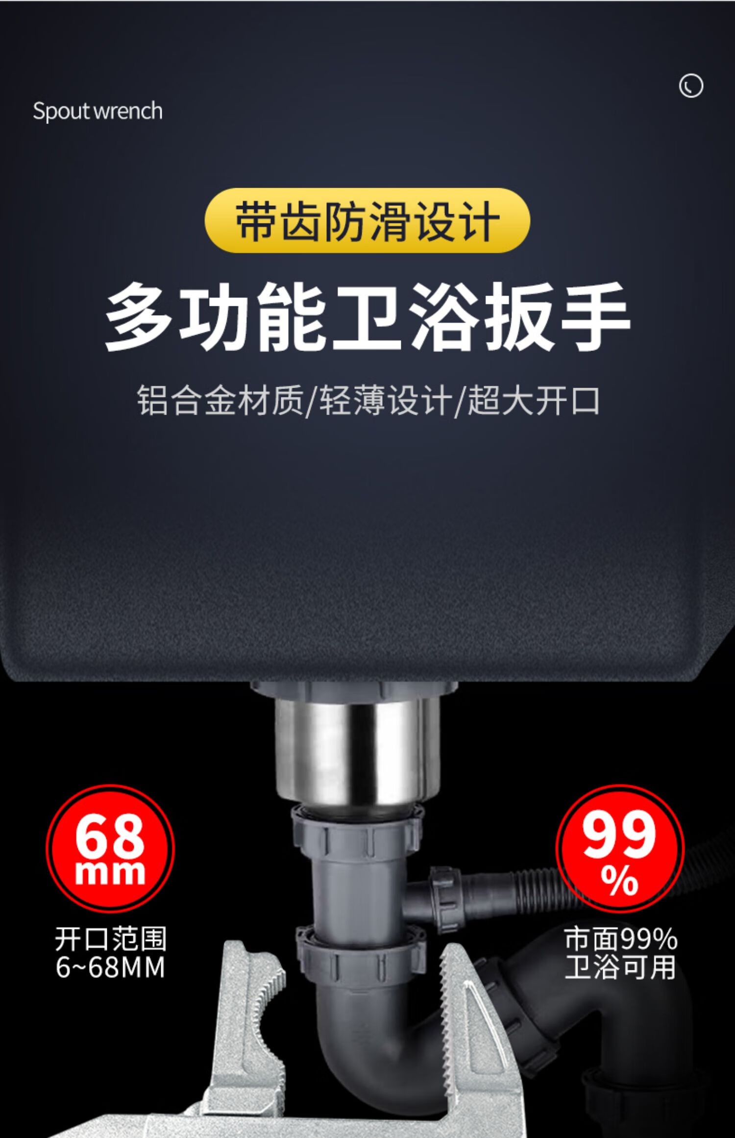 Bathroom wrench tool multifunctional short handle movable large opening repair wrench sewer pipe live mouth pipe pliers reversible / double-sided teeth are more anti-slip