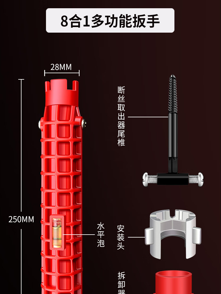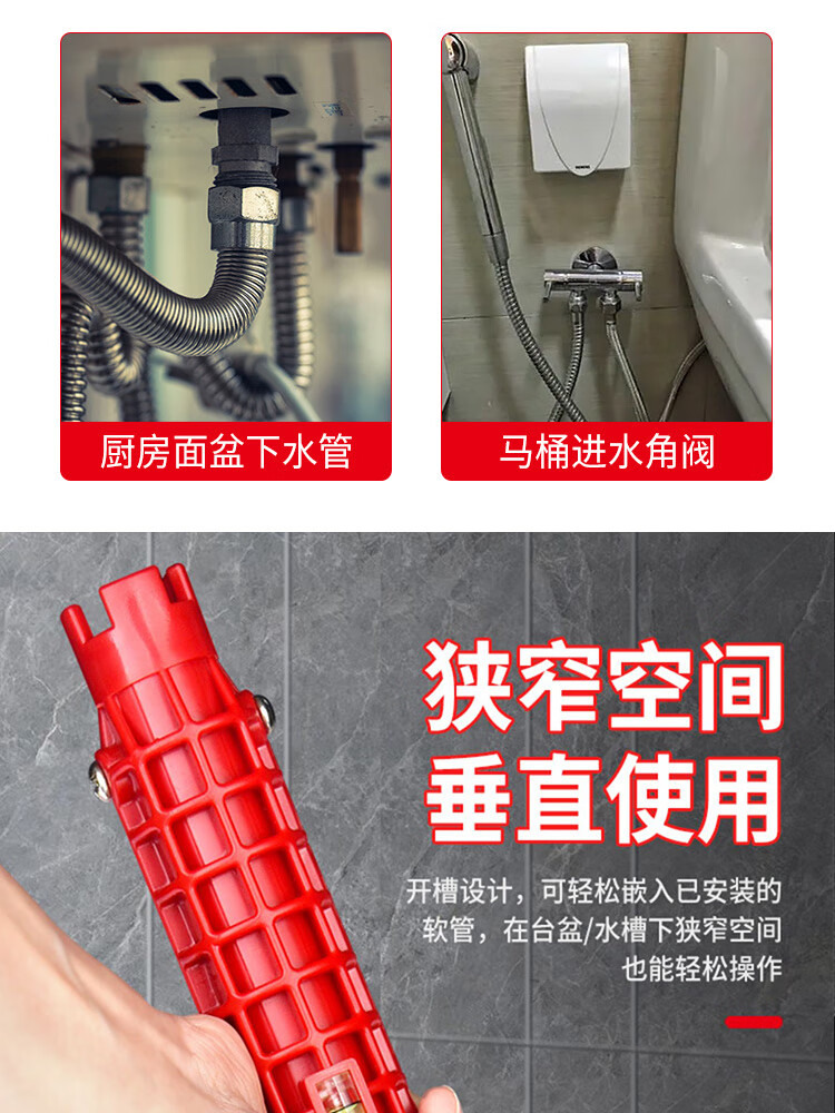 Multifunctional bathroom wrench, faucet repair tool, basin drain hose installation, removal and loosener, eight-in-one sink wrench