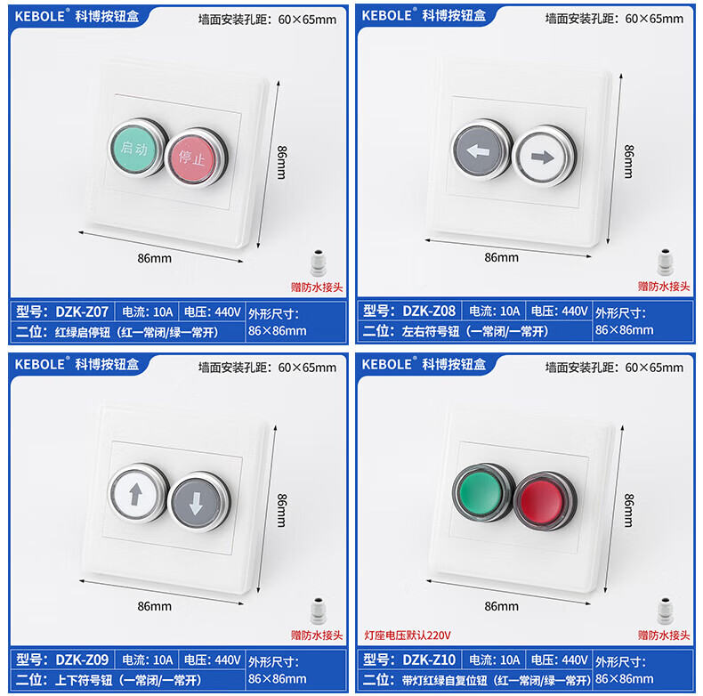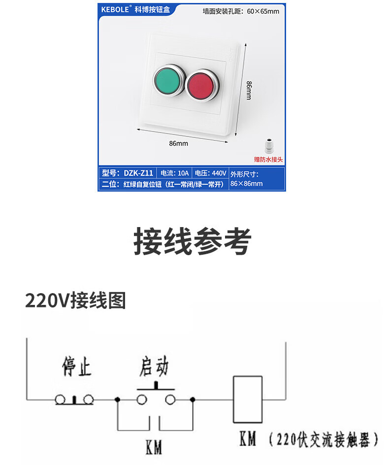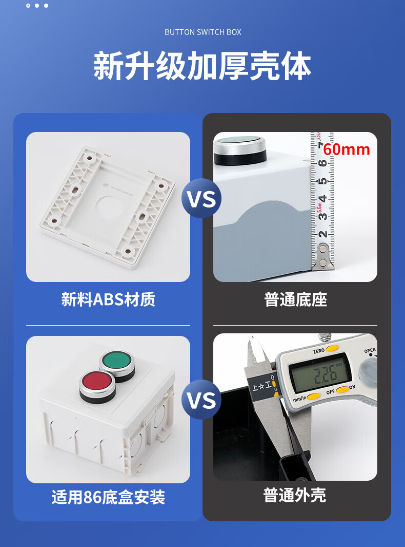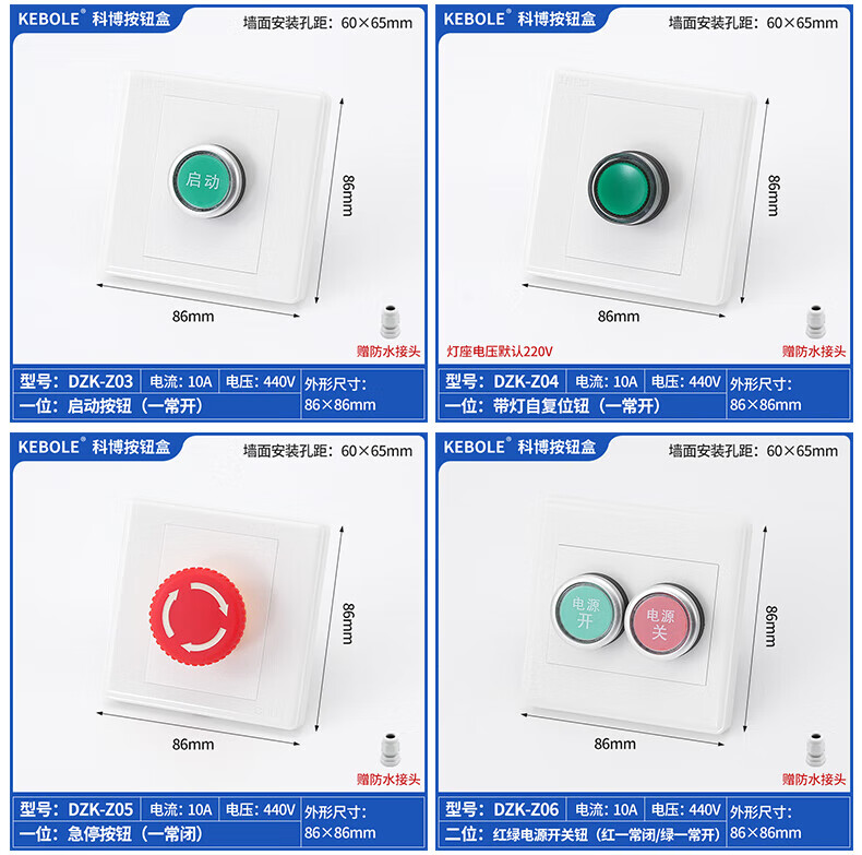 Type 86 push button switch control thickened panel box elevator fan start and stop plastic outdoor wall concealed waterproof model 1 hole emergency stop button Type 86