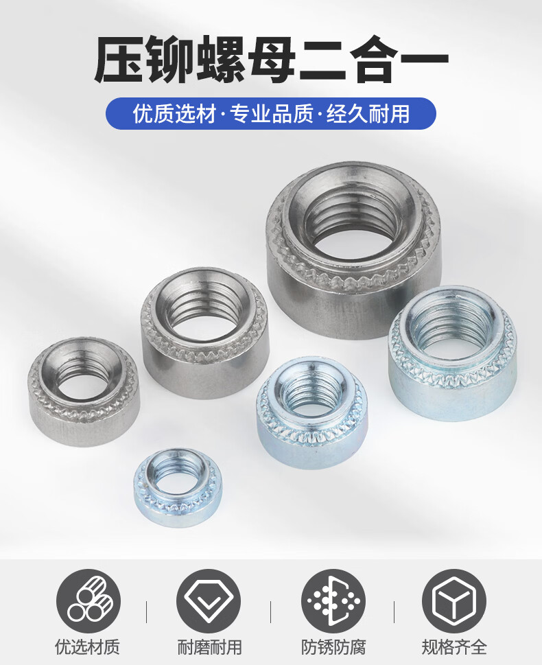 JINGGONG pressure rivet nut galvanized pressure plate nut pressure piece s-m2m3m4m5-0m6-1m8-2m10m12 S-M6-1.8 (100 pieces) Plate thickness 1.9mm